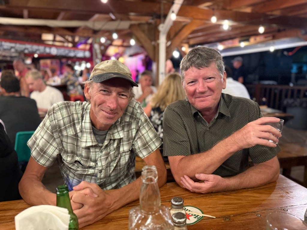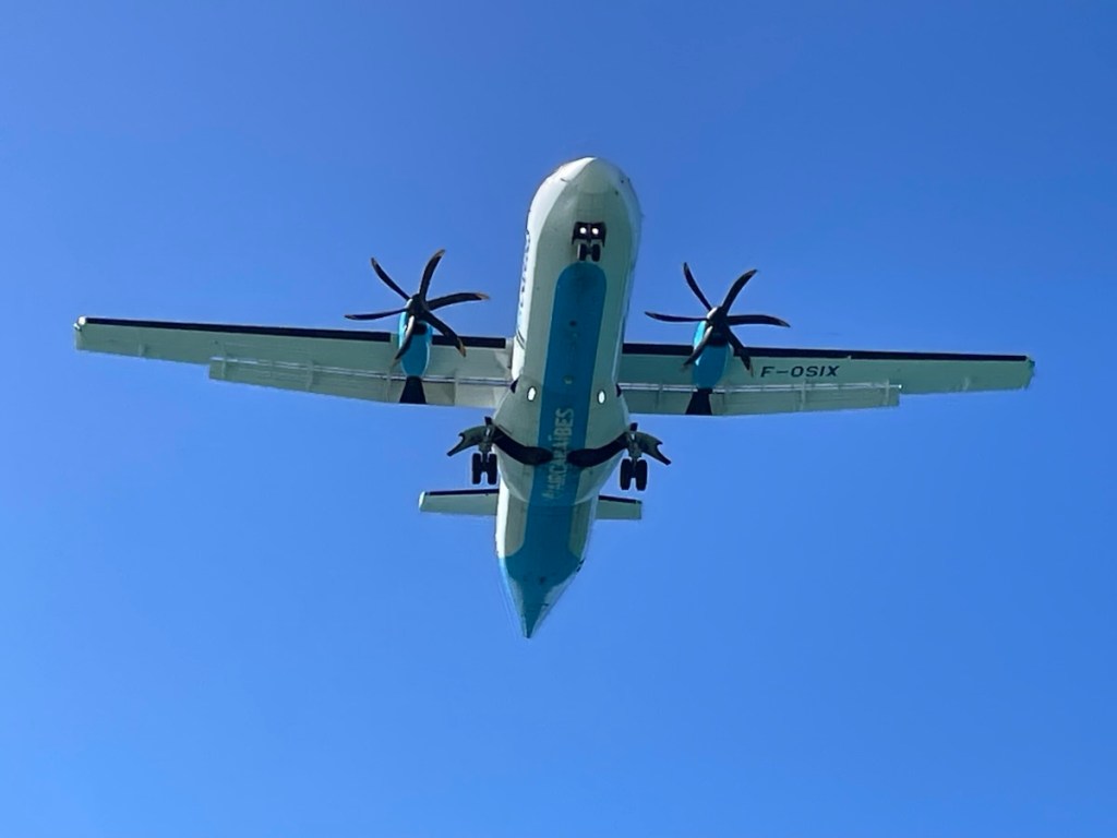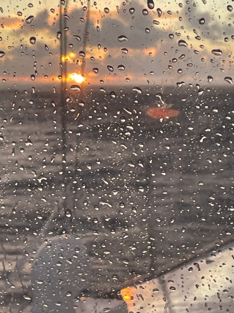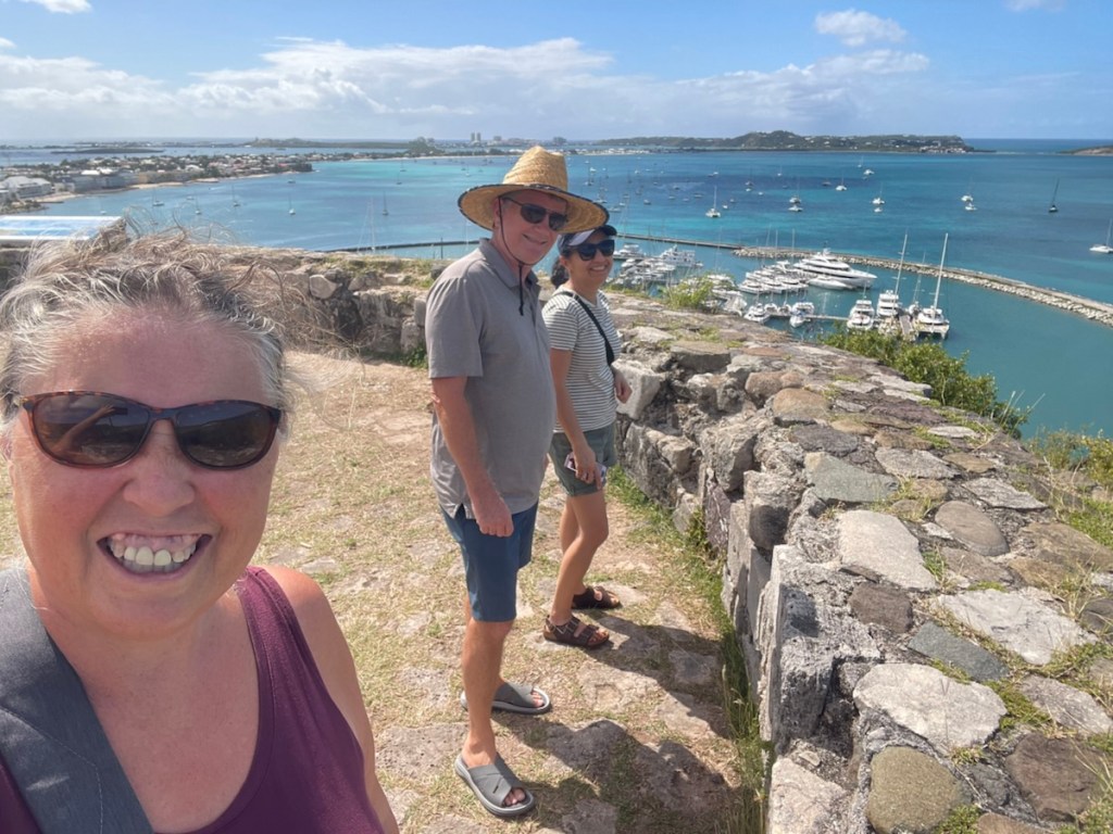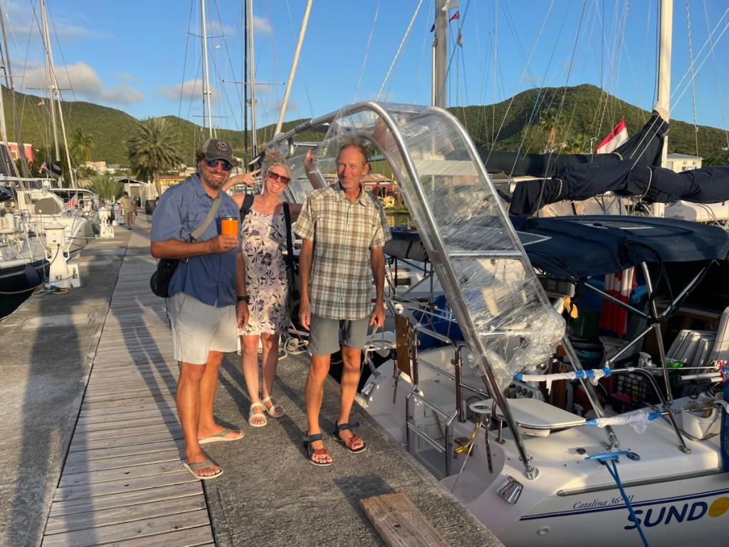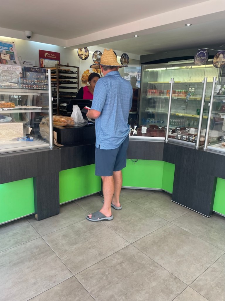 Tuesday Feb. 3 was a rainy, overcast day. John and family had a 4:30pm flight so they took their time leaving their Airbnb and had one last lunch at Grand Case. We were going to meet them at the airport to say goodbye but the weather was not our friend. Their plane flew over our boat around 4:35pm and we waved to them as they passed overhead. Later that night we had a happy hour / dinner with Sundog – John, Sharron and Sharron’s friend Katherine and Desert Loon – Greta and Brian onboard CK. We’ve never sat 7 people around our table but it was nice and cozy. We had a great night – good food and excellent conversation.