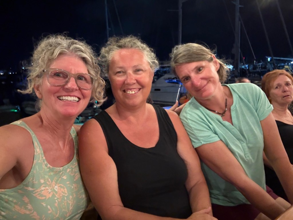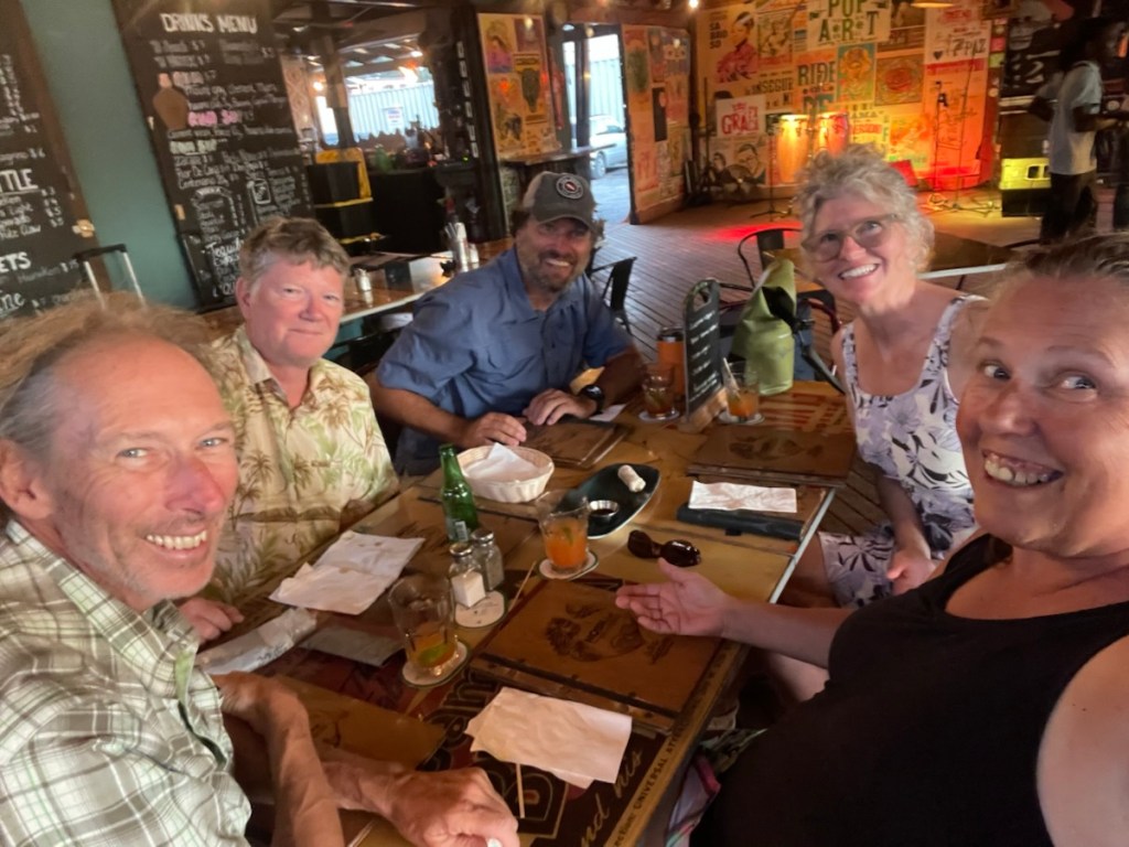 We spent the rest of the afternoon with the family aboard CK. It was a lovely way to spend the late afternoon – chatting and relaxing in the cockpit. It was super calm in the lagoon with very little breeze so it got quite hot. We decided to head to Lagoonies for dinner. We all piled into the dinghy and headed over for 6pm. It was a great meal and I think we all enjoyed ourselves.