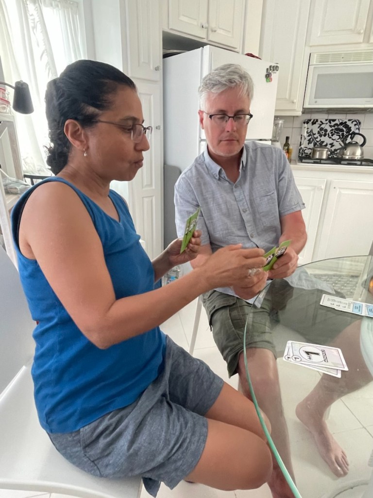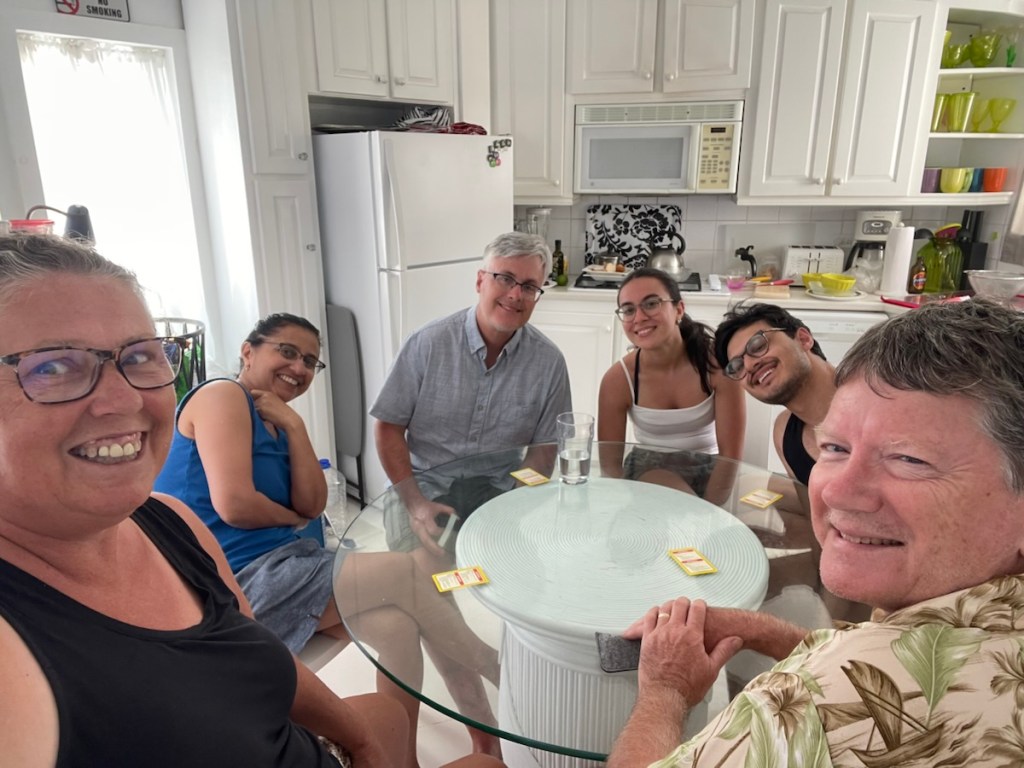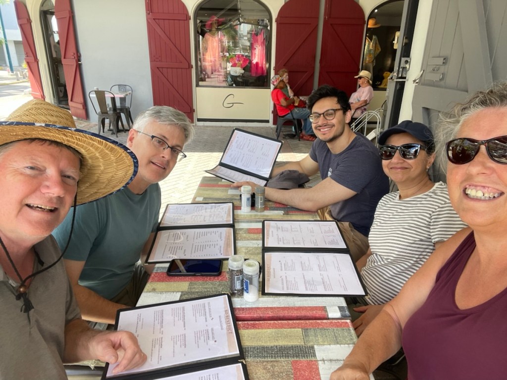 That was a very fast week – John, Sadhana, Aidan and Sophie flew home on Tuesday, Feb. 3rd. They did manage to squeeze in some fun items during Sophie’s 4 days on the island, visiting several beaches and exploring the island by car. We met up with them for lunch and also spent a lovely afternoon at their Airbnb on Sunday, Feb. 1 – eating snacks and playing 2 rounds of Monopoly card game!