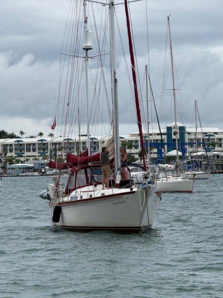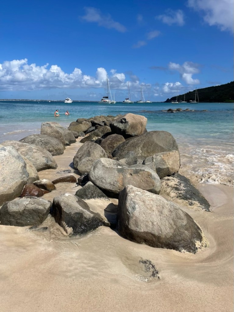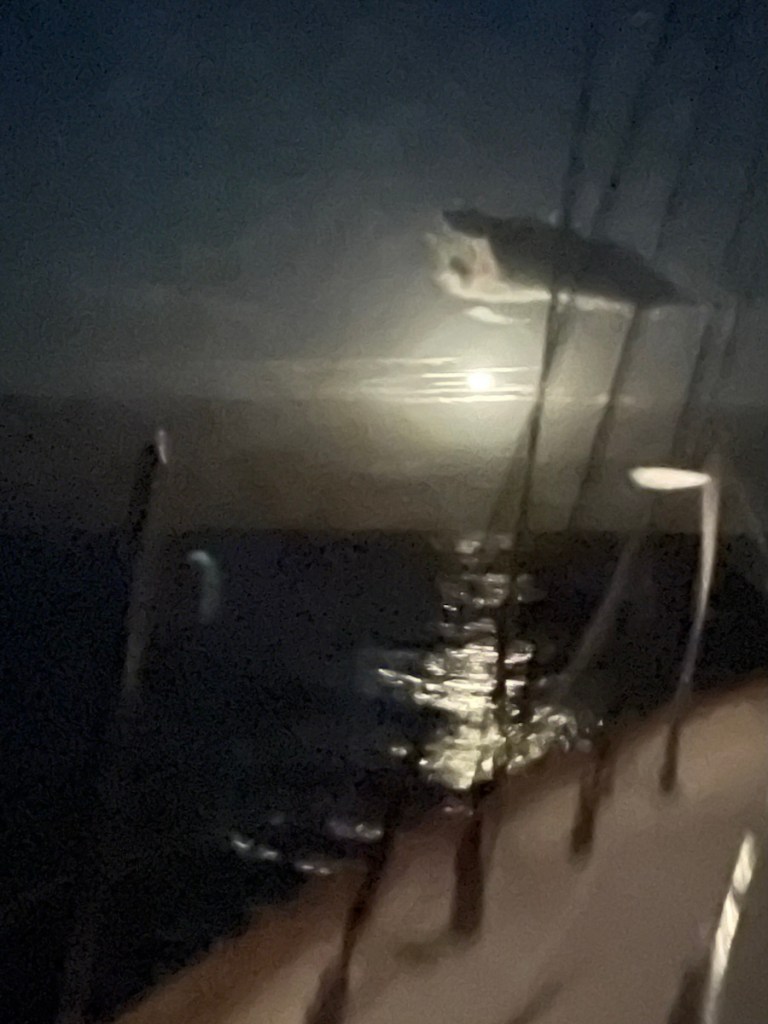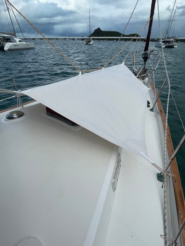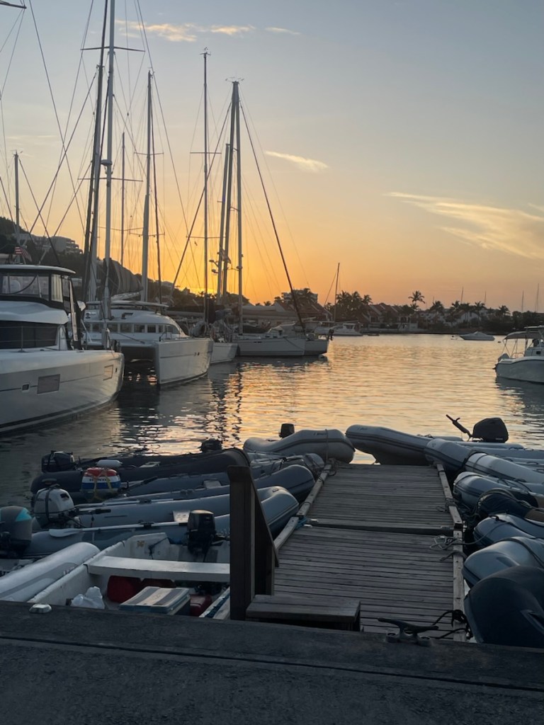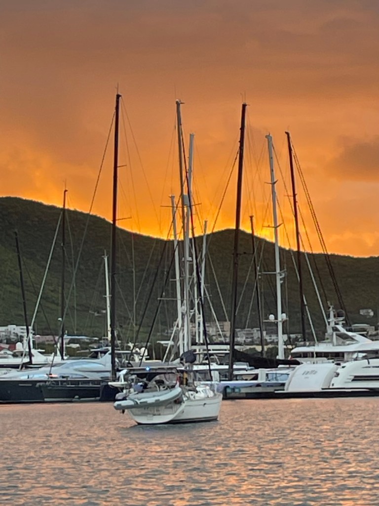 Our friends on Sundog and Desert Loon decided to stay in Simpson Bay to ride out the overnight waves. There was a lot of concern about what these conditions would bring – big swell can easily dislodge your anchor and send you dragging into shore or other boats. I’m sure there were some tense folks onboard but in the end, it wasn’t much of an issue. The waves did arrive but there was no wind so most boats just moved with the waves and it wasn’t much. It was actually less rolly than in the afternoon when we were anchored out there.