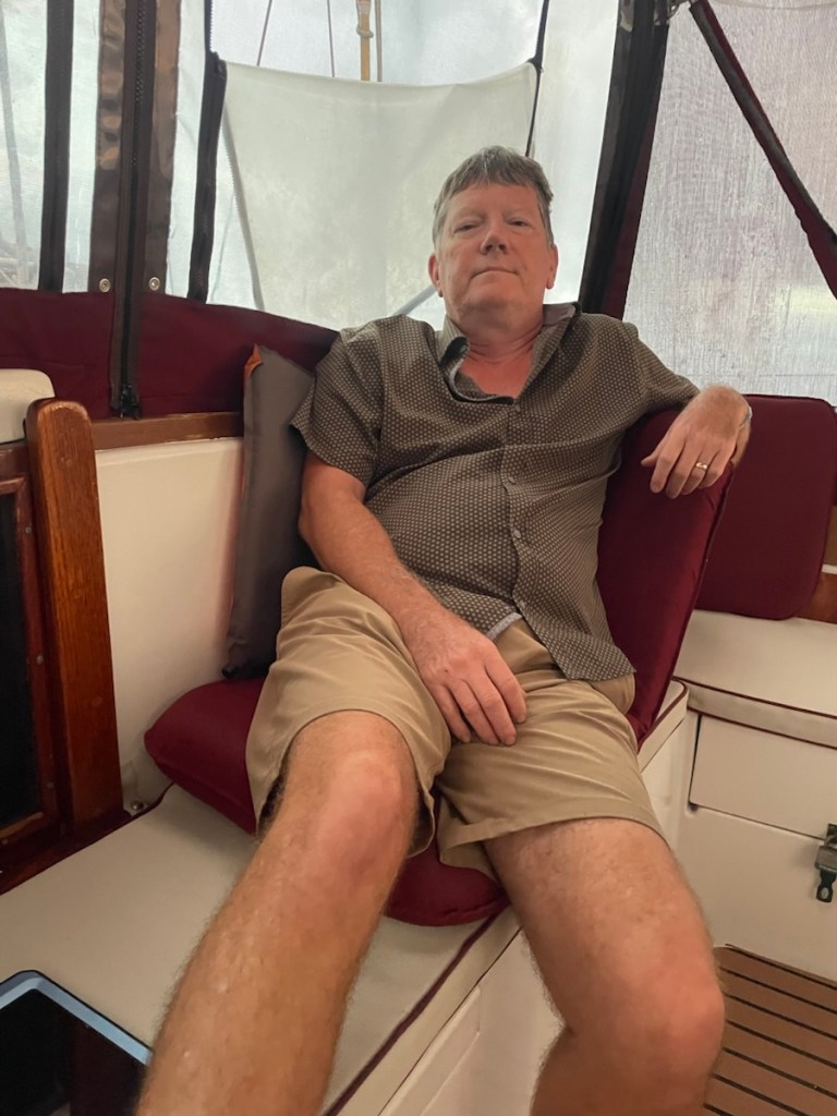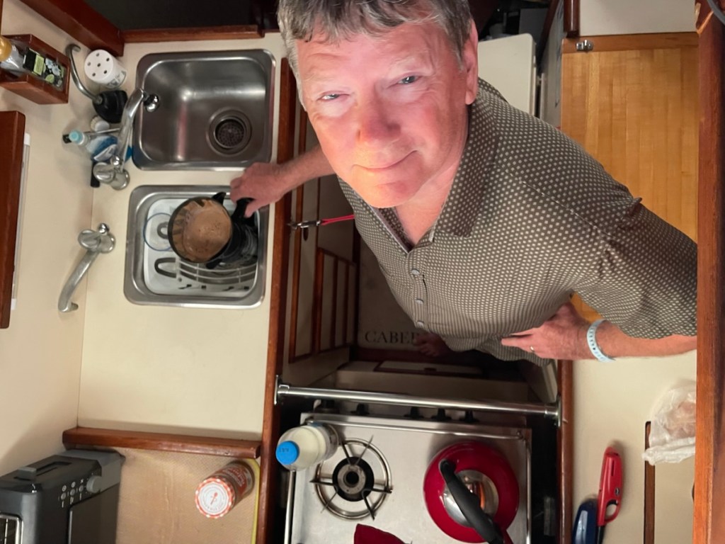 Mark and I spent Friday and Saturday relaxing on the boat. We didn’t even lower the dinghy – just read our books, watched stuff on our devises and truly did very little. We did go for a swim on Saturday which was super nice. The wind had finally dropped enough so that the waves had died down too. This wind sure has lasted a long time – longer than was predicted!