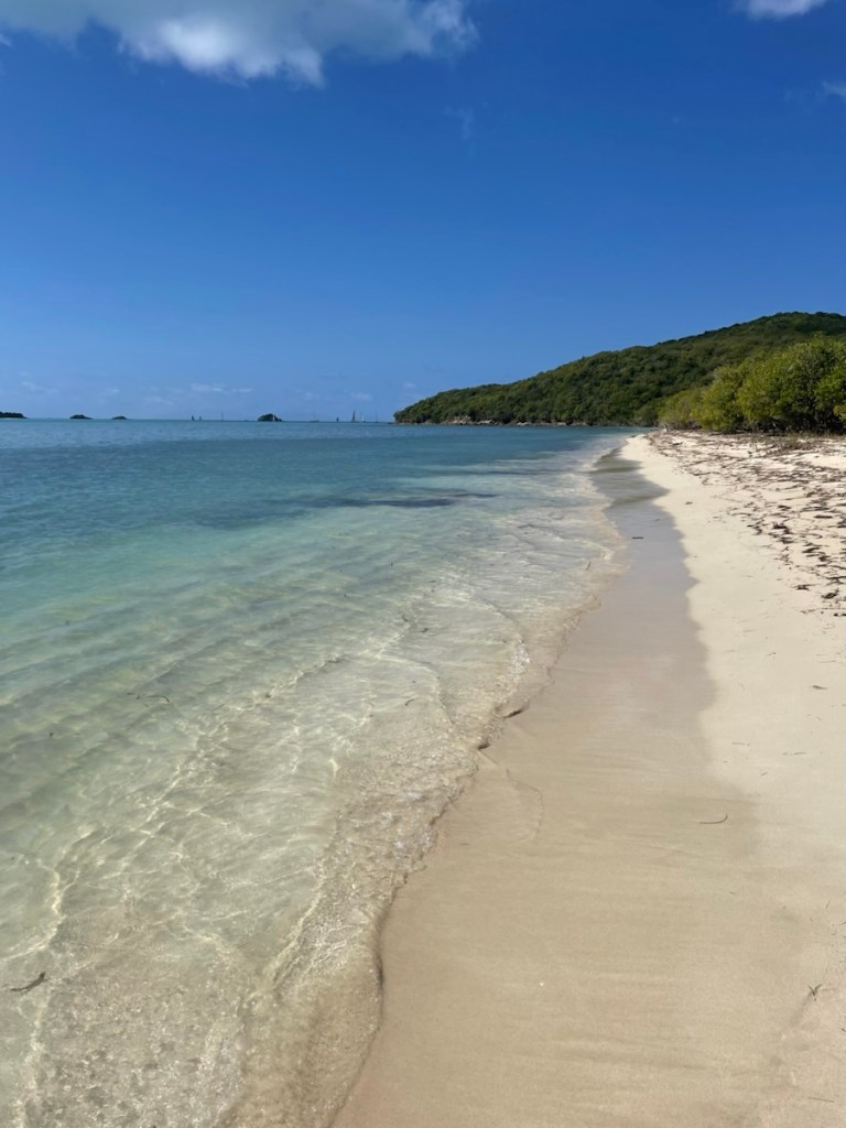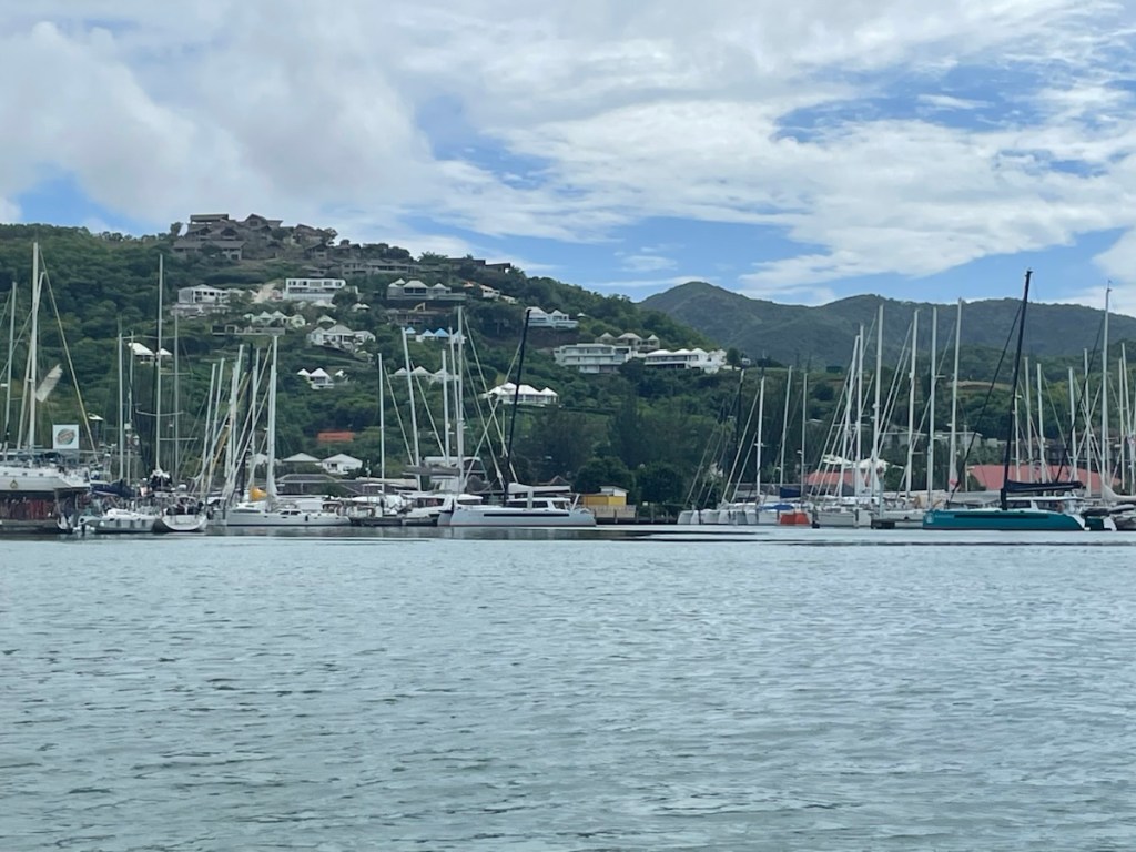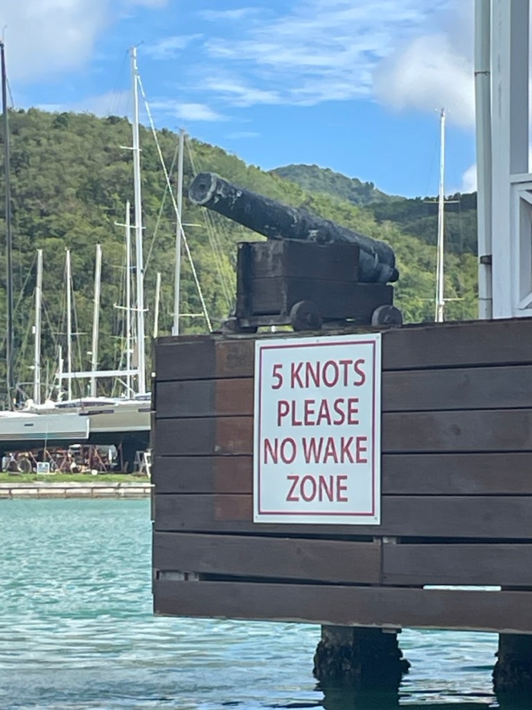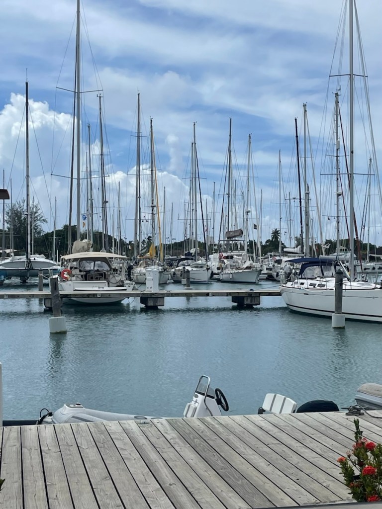 We’re getting close to the end of our first week in Antigua and we’ve discovered that we really like Five Islands Bay (I think I called it harbour in my last post – same place)! The Bay is very calm, quiet and not crowded at all. After a few days resting here, we headed back to Jolly Harbour on Thursday and anchored in the main bay. The outer part of the harbour is very crowded so we were anchored a good ways out. We went ashore and checked out the marina, the little shops and the grocery store. I can tell you that Antigua is very expensive (Bahamas expensive). All prices are in ec (East Caribbean dollars) and the exchange is $ 1 EC = .50 CAD. I was looking for rye bread which they had but the price was $20EC 😳. Needless to say, I didn’t buy the bread! It’s a good thing we really don’t need to buy a lot of groceries!!