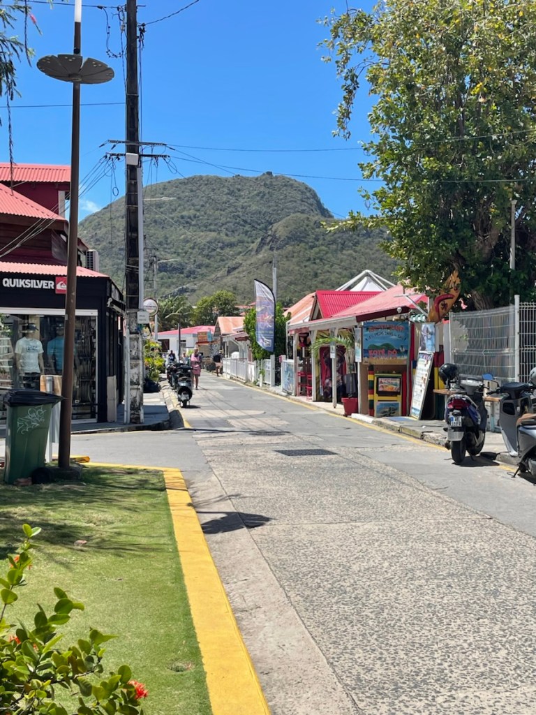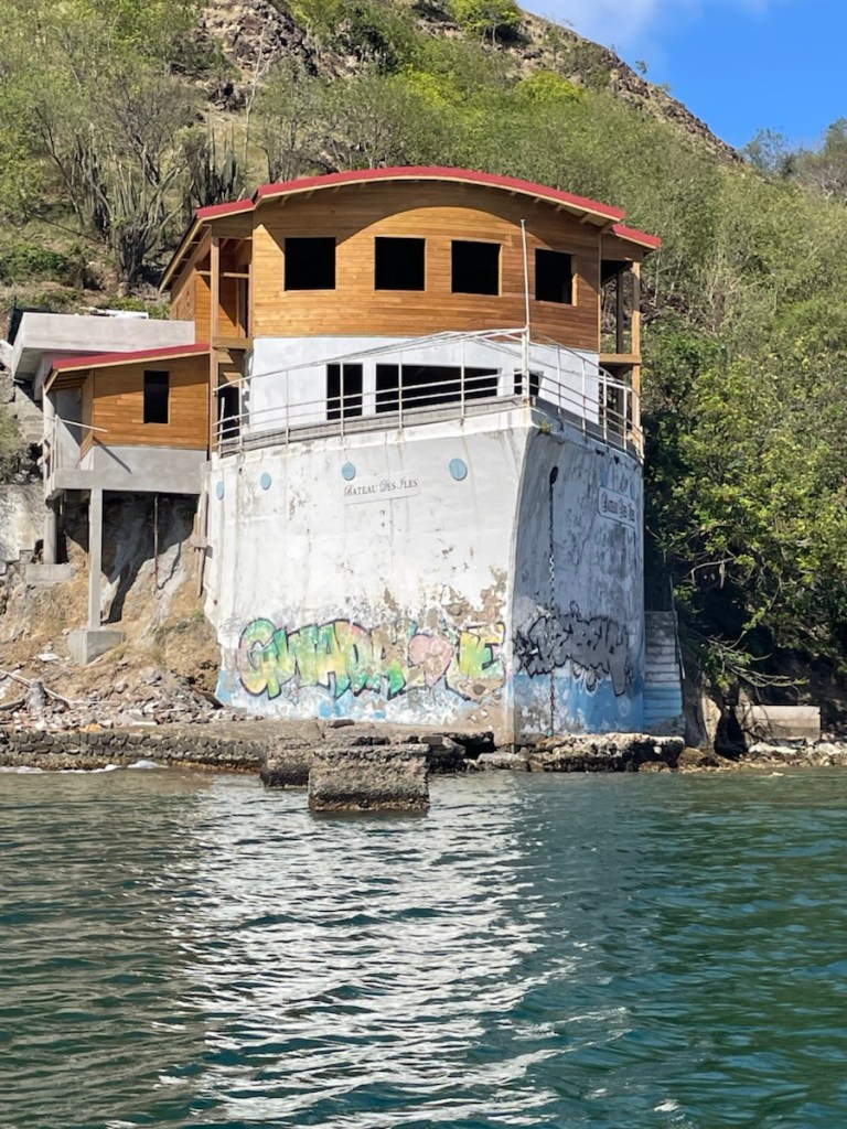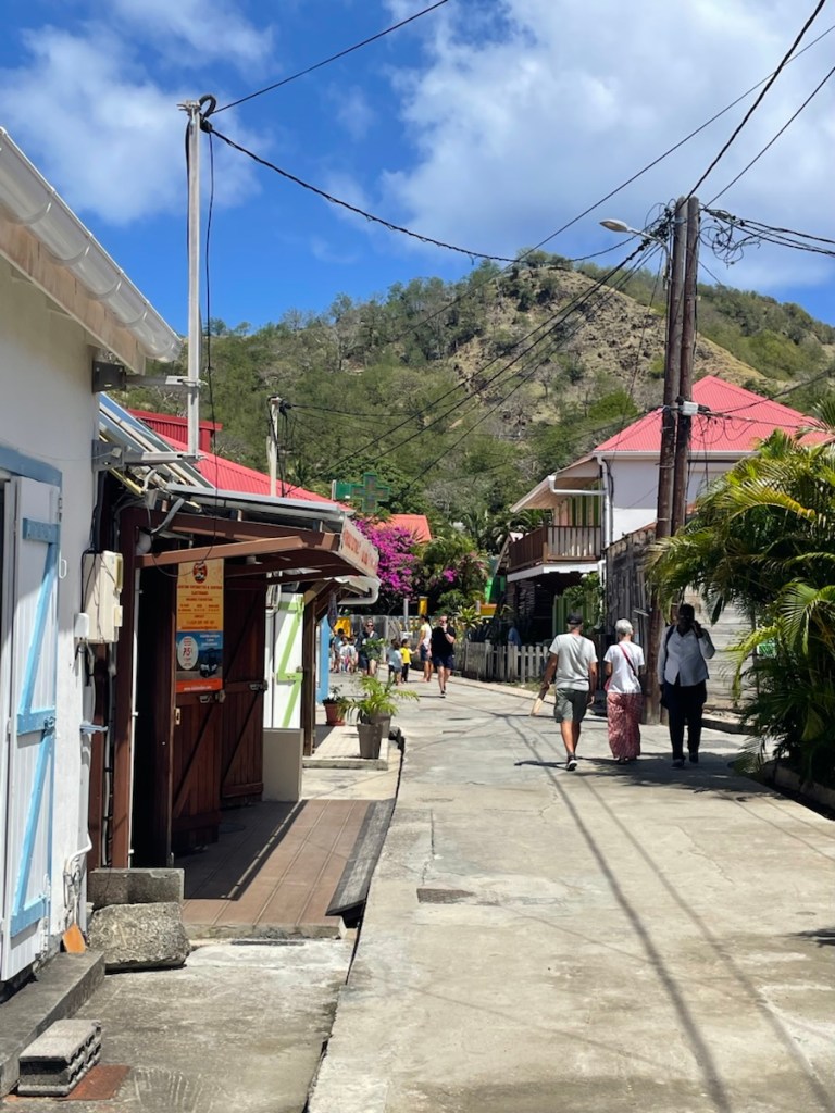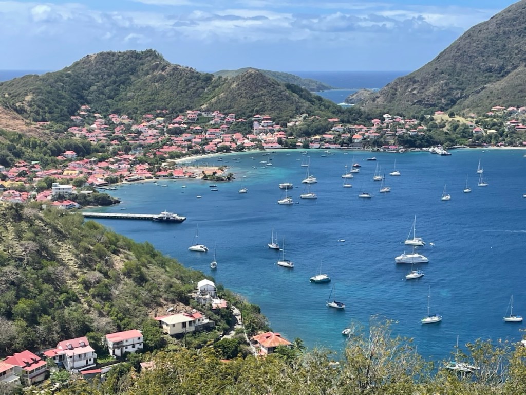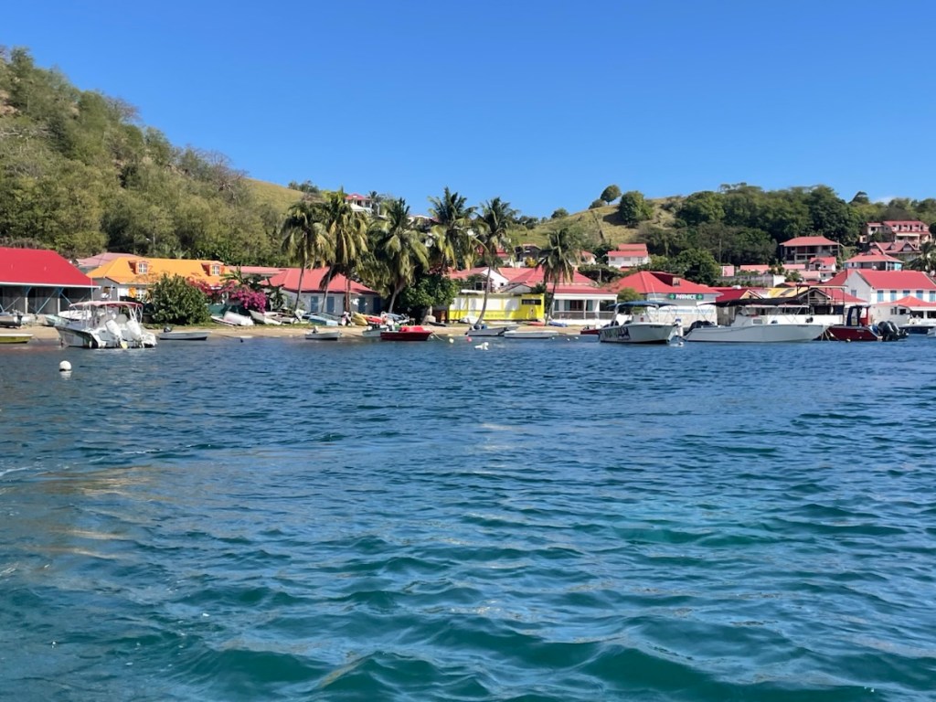 The major mooring field for Terre-de-Haut is located in front of the town called Terre-de-Haut and it’s well known that you have to get there early if you want a mooring ball. We figured none would be available (it was now noon) so we went to an anchorage slightly west of the town. It wasn’t great – rolly, bouncy and deep! We decided to take our chances and see if any mooring balls were available in the main area! Lucky us we found one (there were actually 3 available) and quickly got secured!