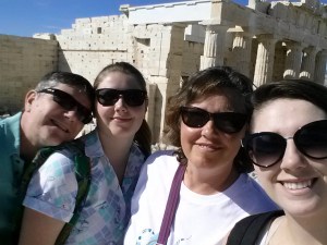 Lion’s Gate marks the entrance into this ancient Mycenaean site.Taking a break at the top of the Mycenaen ruins. Some of th ruins at Olympia.Heading into the Olympic arena..in the rain!The museum of Olympia was very good. These Olympian wannabes pose infront of the temple of Zeus. The Parthenon is undergoing major restoration.The Parthenon, in all it’s scaffolded glory.Taking a selfie infront of the Parthenon.The temple of Athena Nike.An interesting view of the Propylaia.These lovely ladies adorn one side of the Erechtheion.