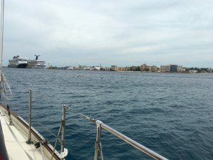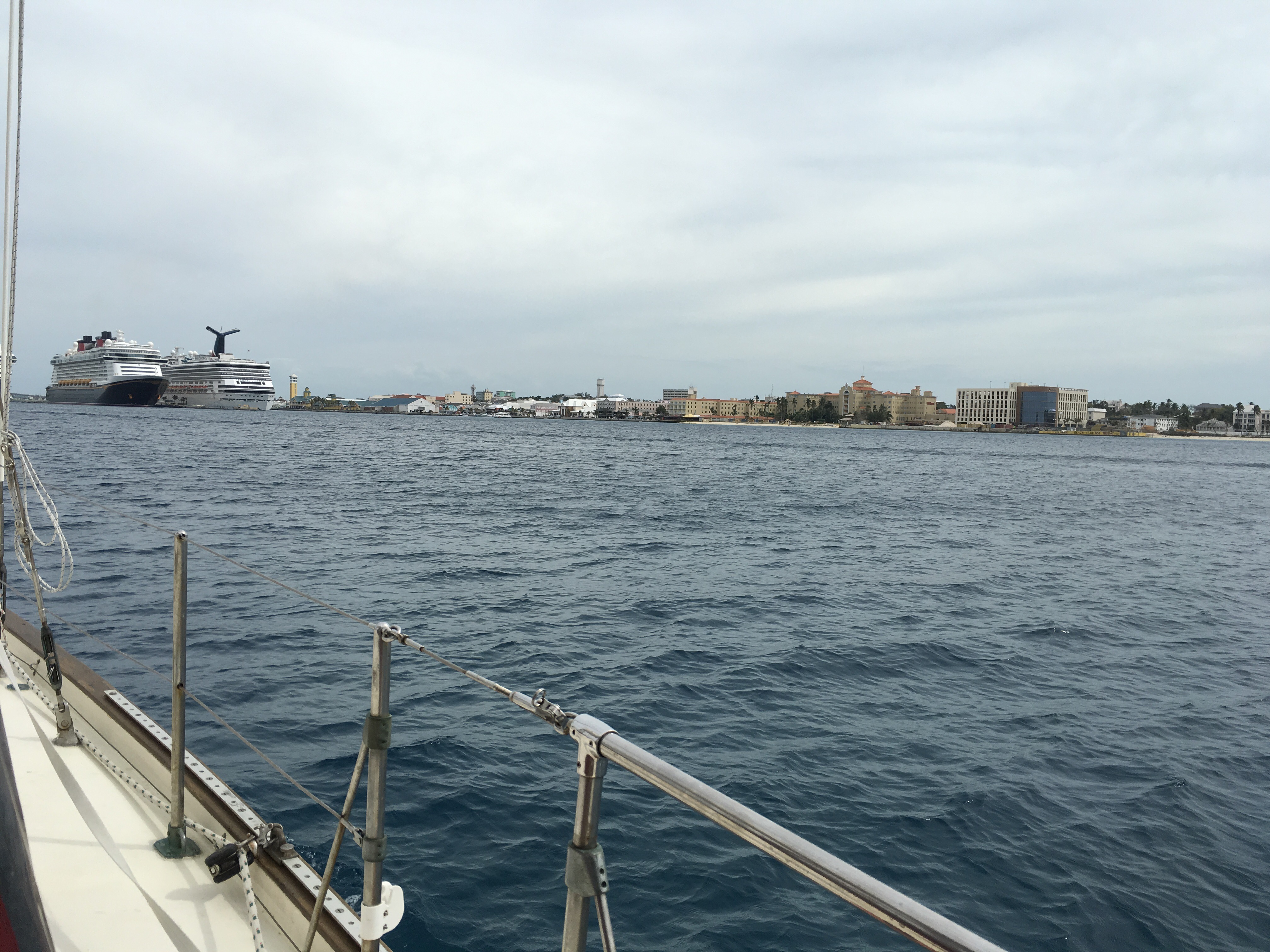 Crossing from Little Whale to Nassau was good. We had lots of wind and made good time. It was a bit rough at the end as we negotiated Nassau Harbour but we made it to the Marina. Nassau has been interesting – the people are super friendly and accommodating but the city is very run down. Even in the high tourist area (where the cruise ships tie up), there are lots of run down, empty and dirty buildings. Our plan was to not stay in Nassau but we needed a new stereo (car radio basically because ours got wet and fried itself on our trip over from Miami. We found a leak though😉) and there was a storm prediction that came true on Wednesday (lots of rain).