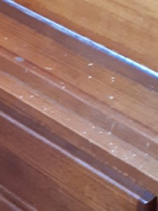My main job is to clean up the boat. We have a fair bit of mold everywhere because the boat has been closed up for so long. But the main mess is bee poop and dead bees!!!! Yes, the interior of our boat is littered with dead bees and poop (which looks like yellow spots and drips). It’s pretty awful, but easy to clean!
