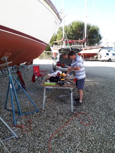 Next up – replace all the rigging on the boat (now that’s a big job when you have 2 masts). Mark has been working hard to remove all of the chain plates (metal fittings that connect the wire stays to the deck of the boat) because new ones need to be created using the old ones as templates. We will be picking up all the cables and fitting for our new rigging on Thursday.