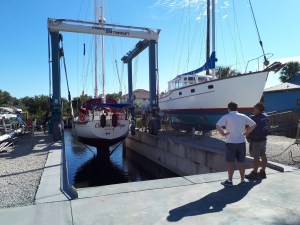 It’s November 6th – Election Day in the USA and we’re back in Florida working on Crimson Kathryn. It’s been over 15 months since the boat was hauled out and placed on the hard and we have a lot of work to do in the next 2 weeks. Launch date is scheduled for Thursday, Nov. 15!!