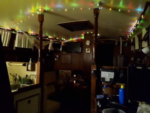 Our gated community entrance – pretty fancy.A little bit of Christmas inside the boat. We have more for outside – pictures to follow.We have many osprey in the Marina (and they poop all over the boats but chase the smaller birds away, who poop more!).Mark is working on the fridge/freezers! It’s an awkward job.After going to way too many places, we finally found the parts for our propane system!