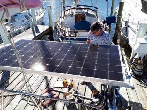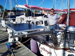 Time is going by quickly – it’s hard to believe we’ve been down south for 6 weeks! Our boat jobs are moving along. The solar panel is mounted and working well. It’s producing electricity even on cloudy days and keeping our batteries nicely charged. Today we turned on the freezer to give the solar panel a big challenge!