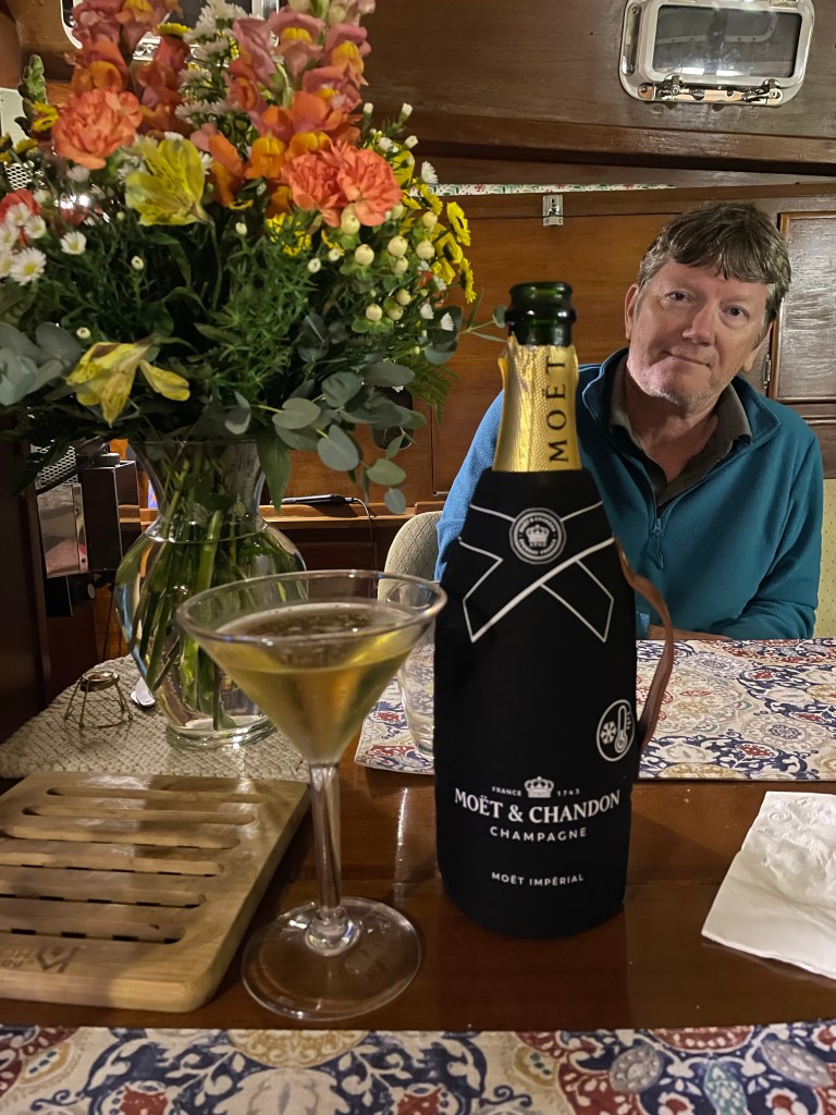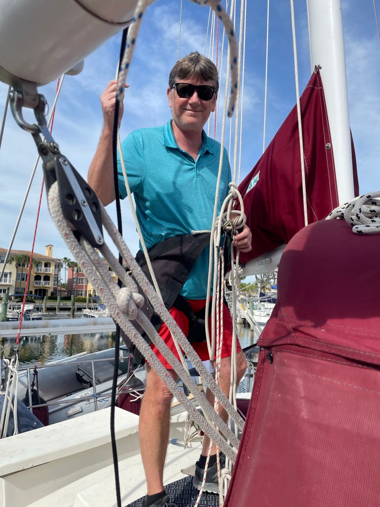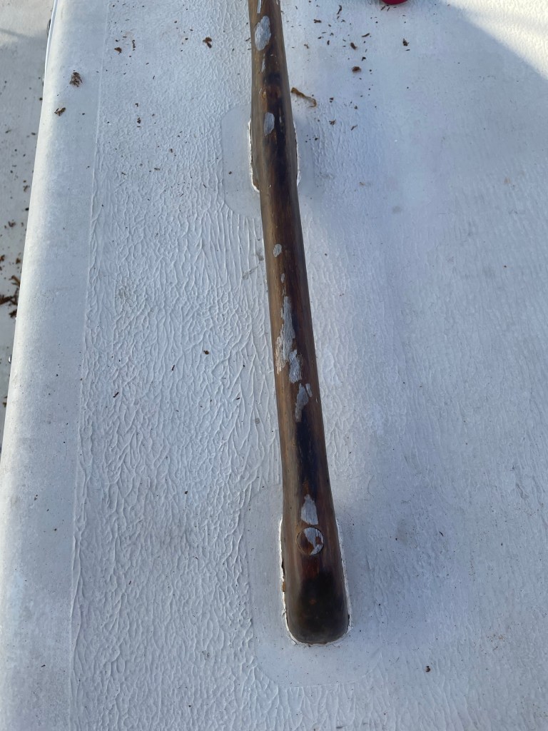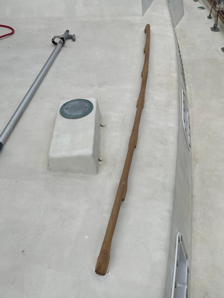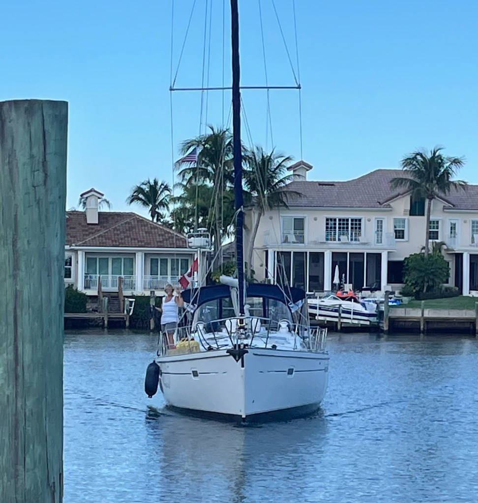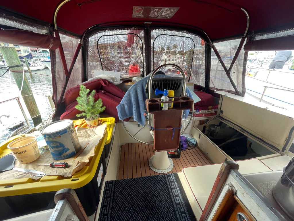 Mark also made some headway on cleaning the hull. Crimson Kathryn had a moustache (and she wasn’t too happy about it 😉) – a lovely souvenir of the ICW! We have had this brown mark on the bow since April 2020 – when we put the boat on the hard! It takes a lot of scrubbing and polishing to get the hull looking clean!