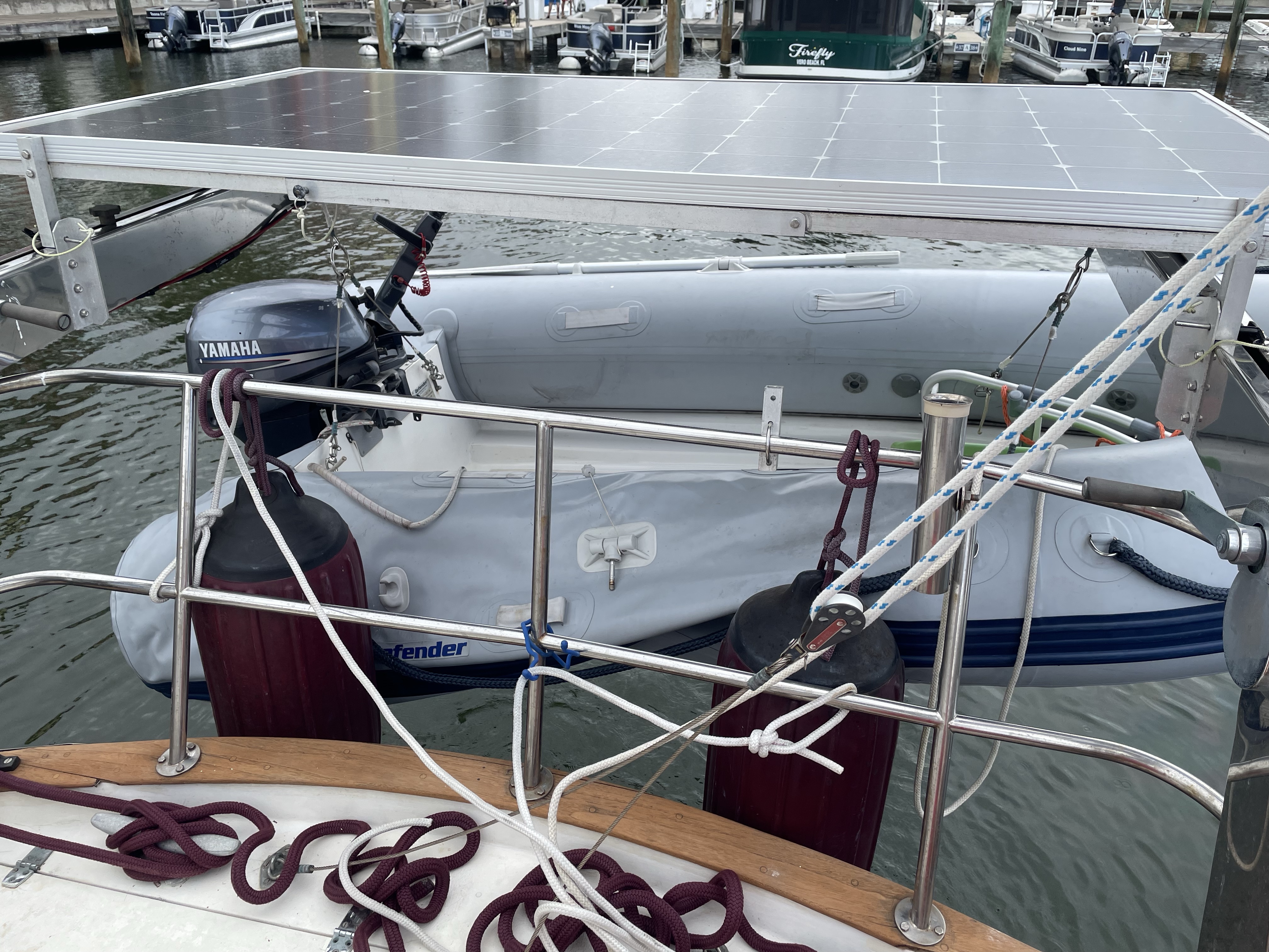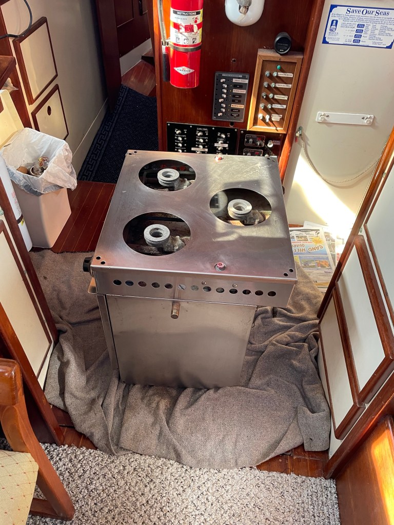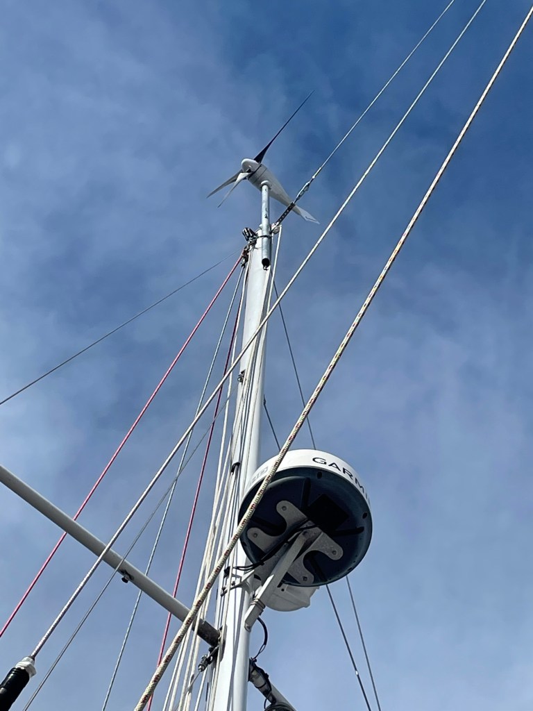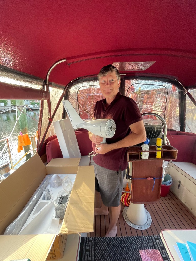 Now that we have a few more days here, Mark is looking at all those jobs that just kept moving down the list. Starting off the day, Mark worked on our new (to us) anchor. We bought this very large Manson anchor (80 lbs – meant for a 60ft boat) back at Reynolds and discovered quite quickly that it was very difficult to bring back aboard. Mark has been working on different ways to make it easier to haul the anchor back up from the water. Today he drilled a new hole in the anchor shaft to help with the retrieval process. Several tests later (and lots of noise), the anchor was coming onboard more easily! Success.