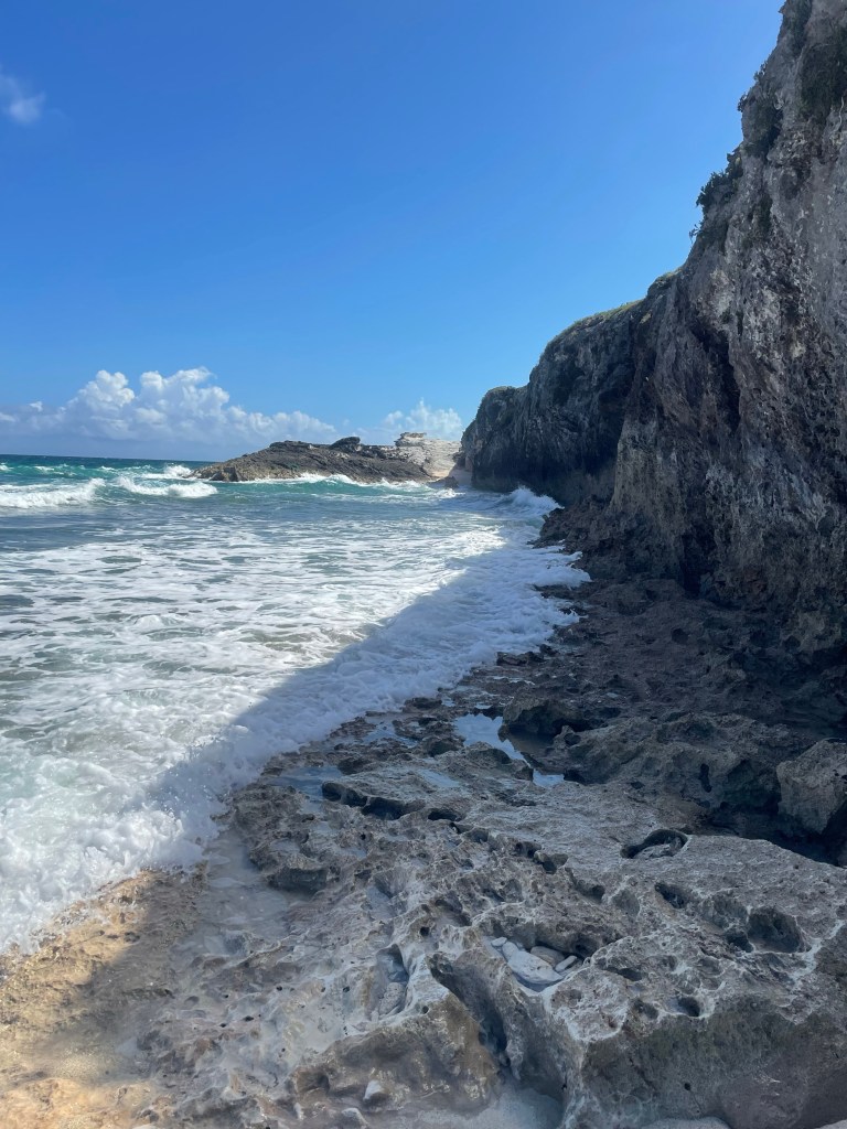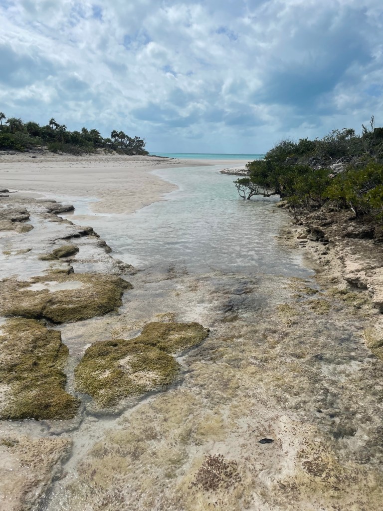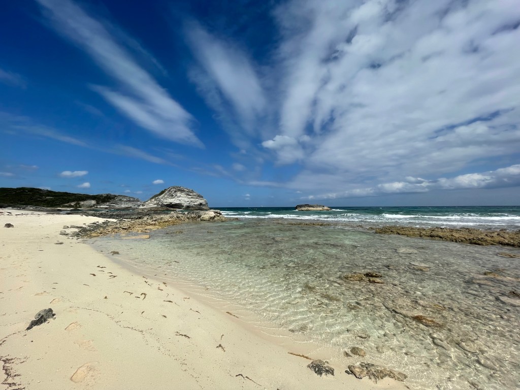 We went for one final walk on Lee Stocking and enjoyed a short walk that led to the Exuma Sound side. The waves were fairly small today as the wind has calmed down. We met a couple walking along the little beach who followed us through the Bock Cay cut 5 days ago. They are anchored just in front of us but this was the first time we saw them off their boat. It’s always interesting to chat with fellow cruisers – you can hear some interesting stories and you can get some good tips about places to see and areas to explore. Lots of fun.