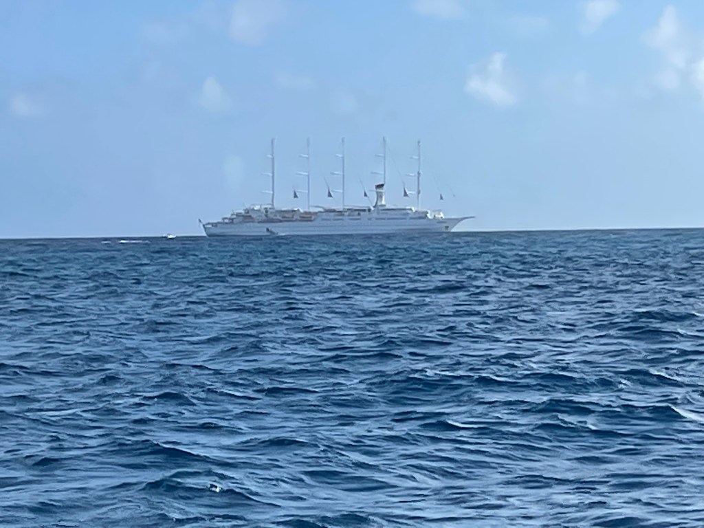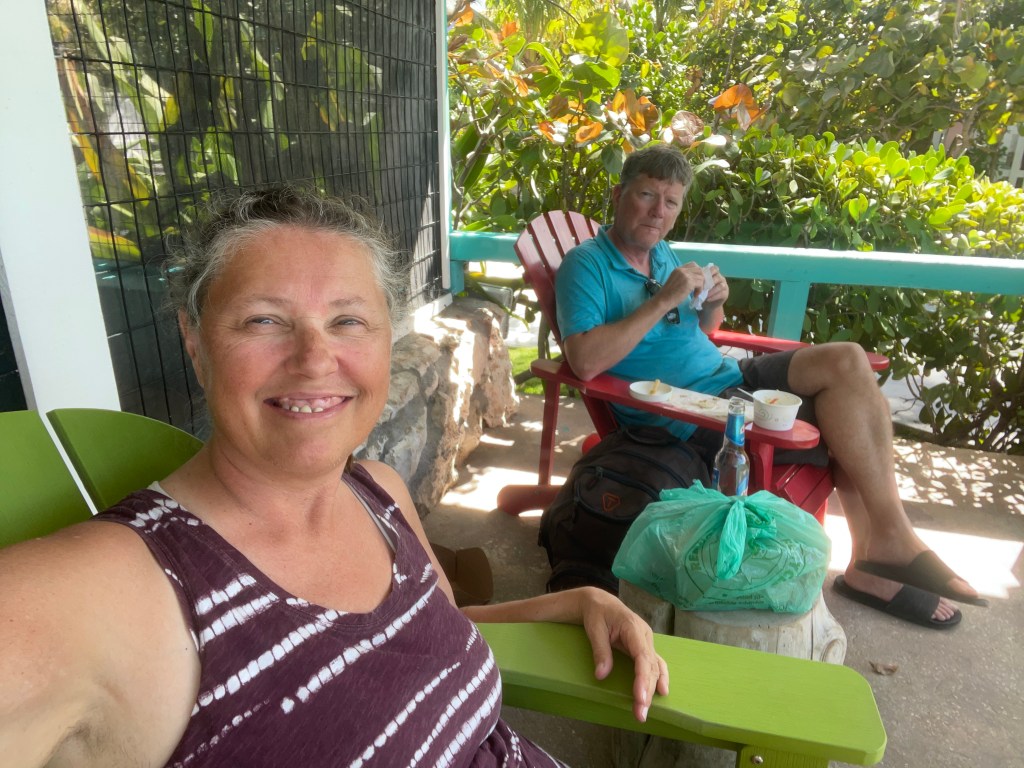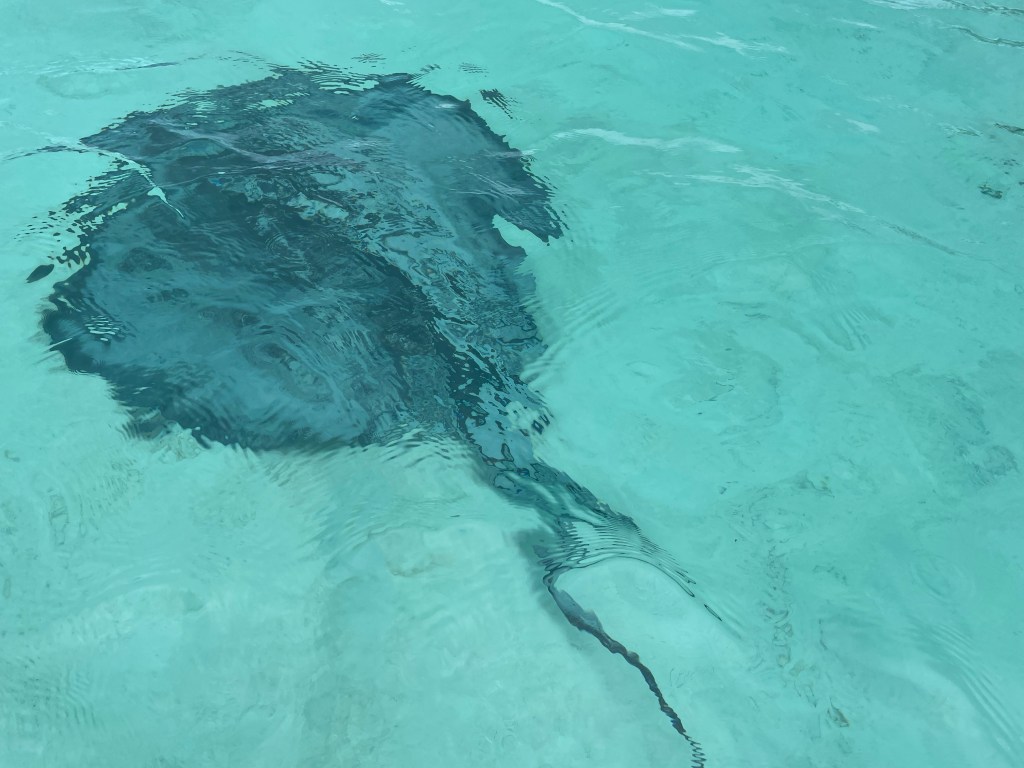 One of the highlights of our stay here was our encounter yesterday (Saturday) with some very large stingrays. We went for a dinghy ride to explore the area just south of our anchorage and because the water was a bit rough, we decided to come back close to shore. That was the best decision!! Steve and Jane saw the stingrays first and within about 20 minutes we were surrounded by about 10 of these graceful creatures. We had fun moving along with them and trying to get some good photos. Steve had his GoPro video camera and got some amazing underwater footage of the rays.