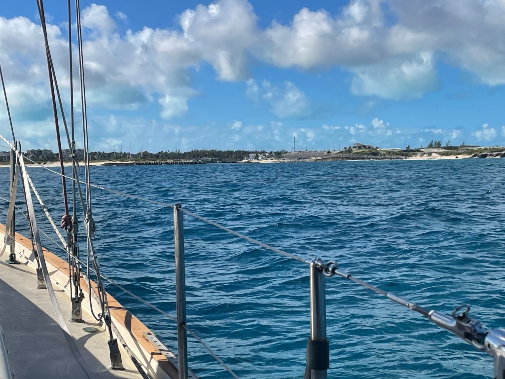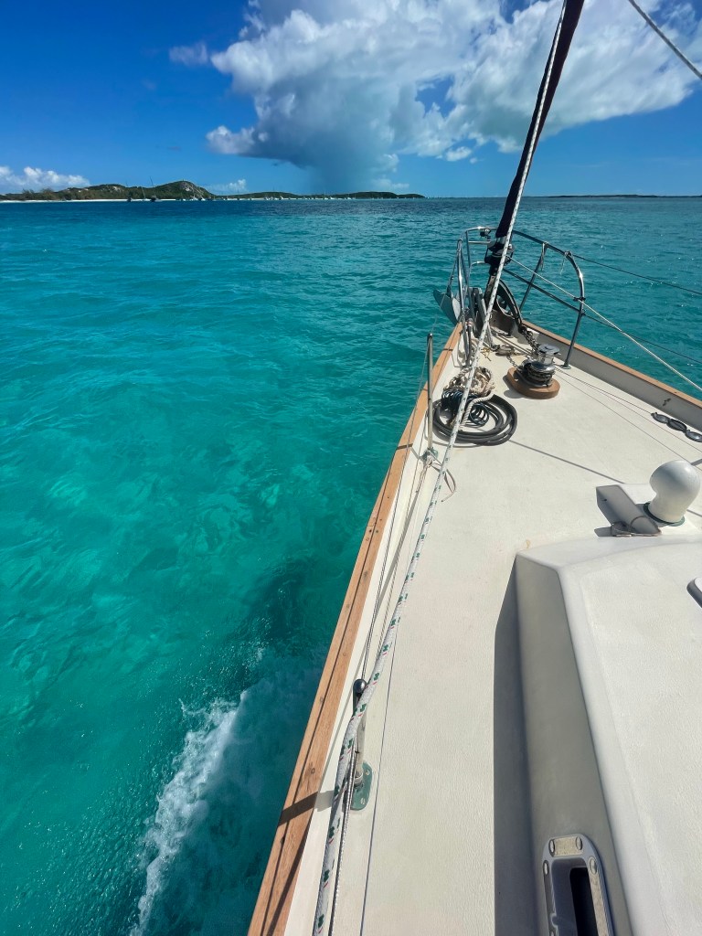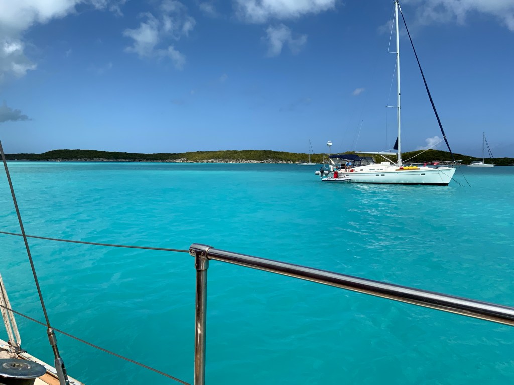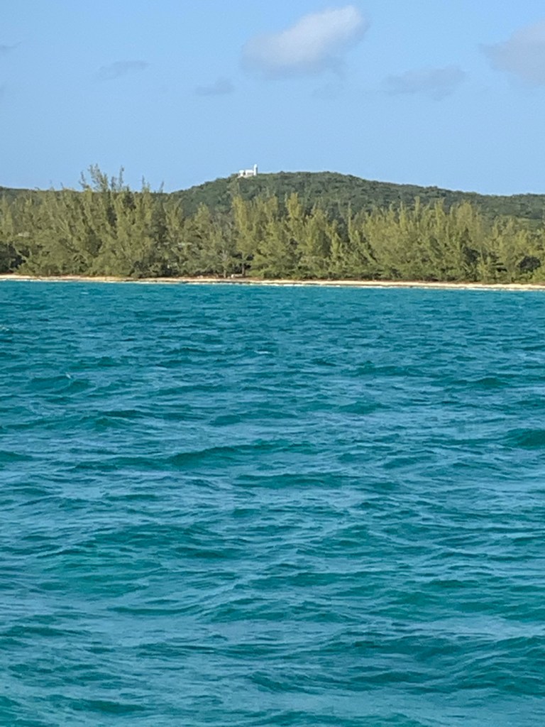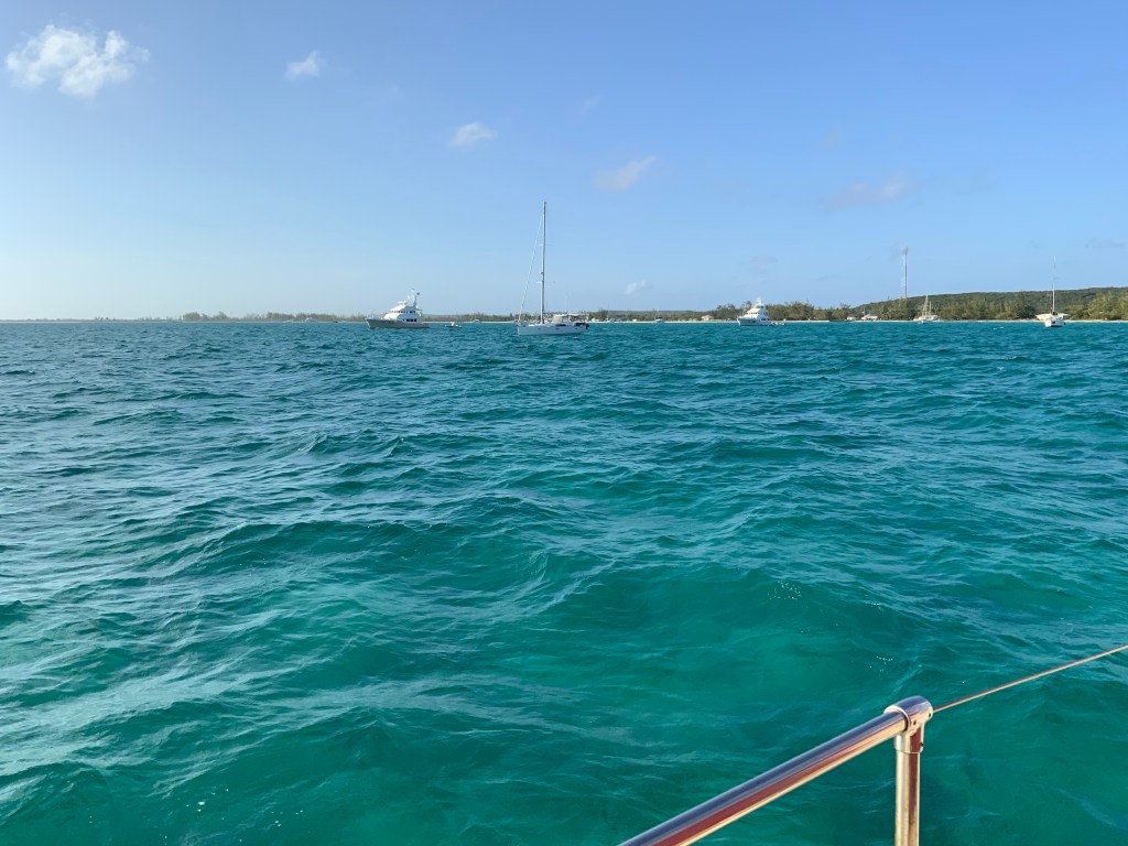 It was a very nice trip across the sound to Rudder Cut Cay (in the Exumas). The jib did a good job of moving us forward while adding a bit of stability against the waves. The sun was out and it was a nice day to travel back to the Exumas.