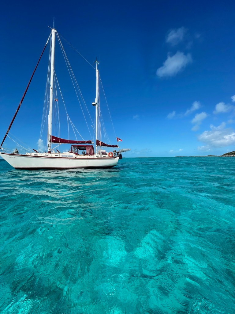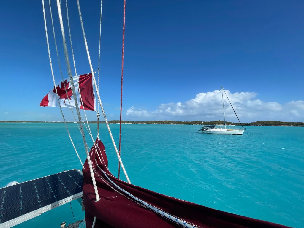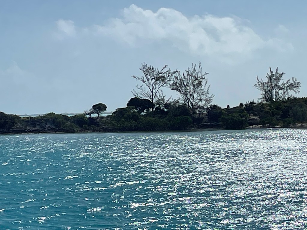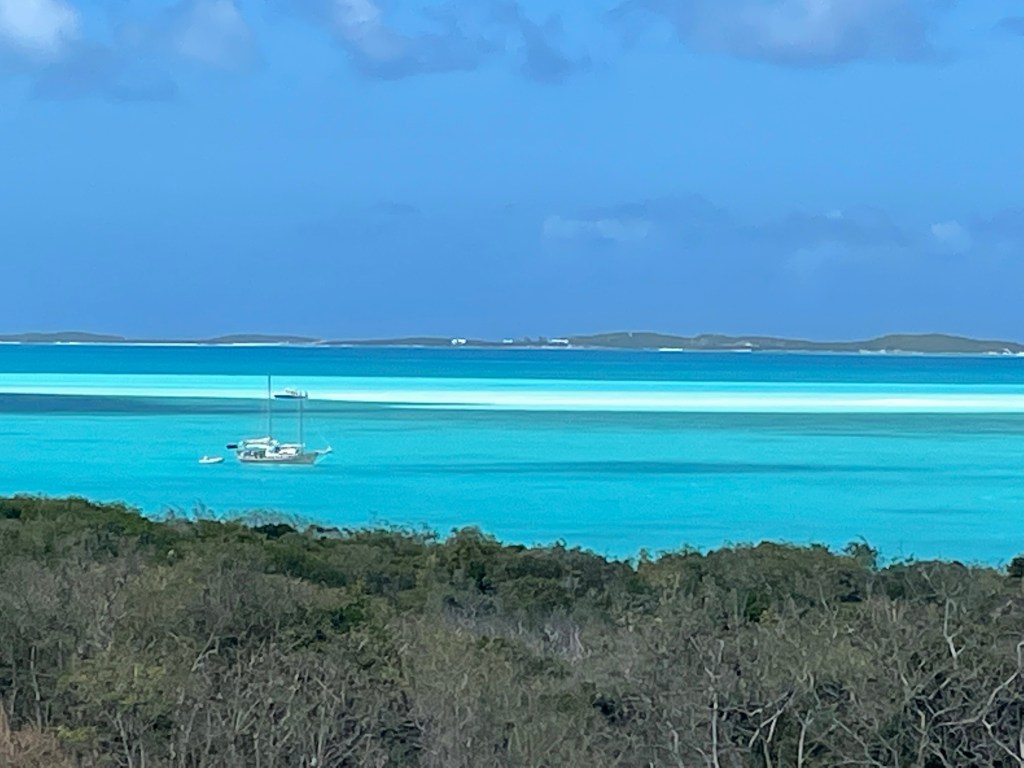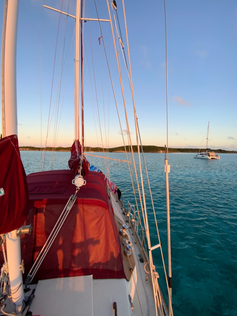 It was a very nice trip across the sound to Rudder Cut Cay (in the Exumas). The jib did a good job of moving us forward while adding a bit of stability against the waves. The sun was out and it was a nice day to travel back to the Exumas.