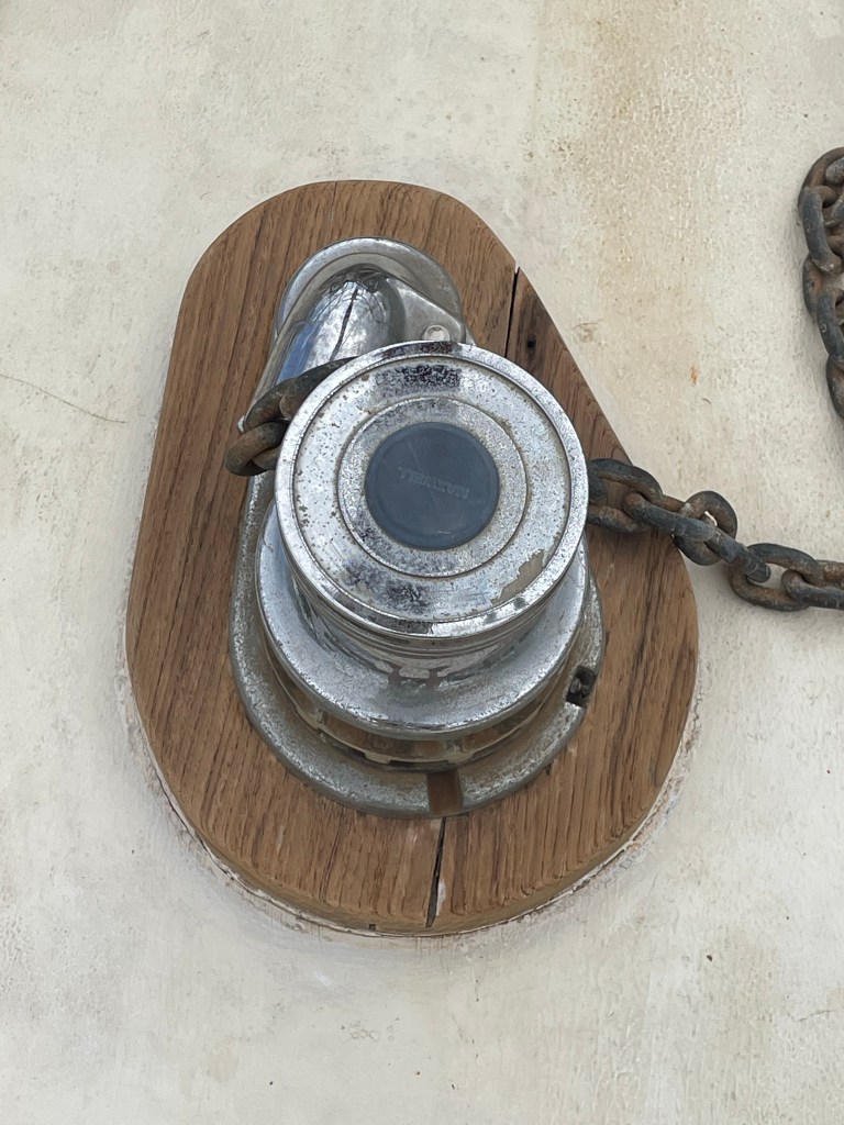 The expected wind change (from south west to north east) happened overnight which meant our anchor had to reset itself as the boat turned (something this fortress has failed at in the past). So at about 4 am our anchor alarm went off (we can set an alarm to tell us if the boat has moved from its original spot – very handy alarm). With the wind direction change the anchor dislodged and couldn’t reset – we were dragging about 1ft/second out into the bay. At least we were moving away from all the other boats and into deeper water! So we started the engine, motored up to the anchor and started to bring the rope line back on deck. This was quite the challenge – it was dark, windy and the anchor line was not on our windlass (the device that winds in our chain and anchor). Mark had to pull the rope by hand until he got to the chain portion. At that point Mark could use the windlass to get the anchor up. We had to drop the anchor twice before we got it to hold again!! By this time it was 5 am and we were both exhausted!! The good news is that the fortress anchor held all day yesterday and is still good today!!