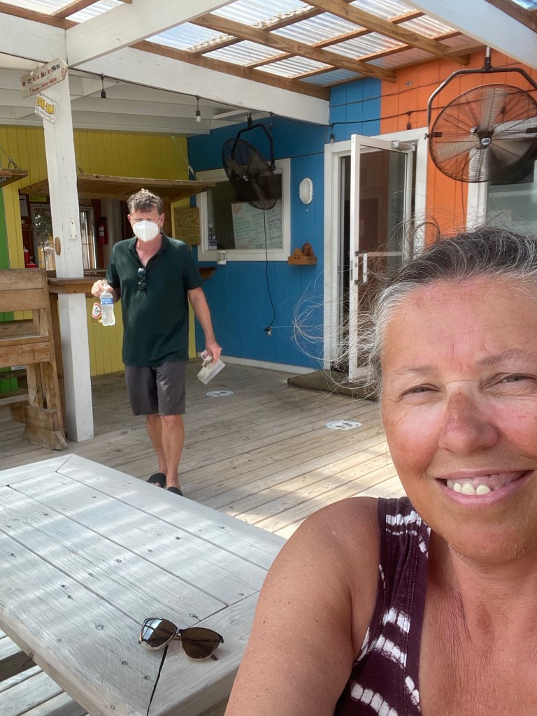 On Tuesday we started our day by doing laundry at a laundromat close to Red Shanks (outside of George Town). We discovered this place 3 years ago and are super happy that it’s still open. It’s a great laundromat and it’s easy to dinghy to. After laundry we headed to George Town for lunch at Island Boy Cafe (one of Caroline’s favourite spots!). We also took a look around and we’re glad to say that George Town has survived the pandemic (even without all the cruisers there to spend money).