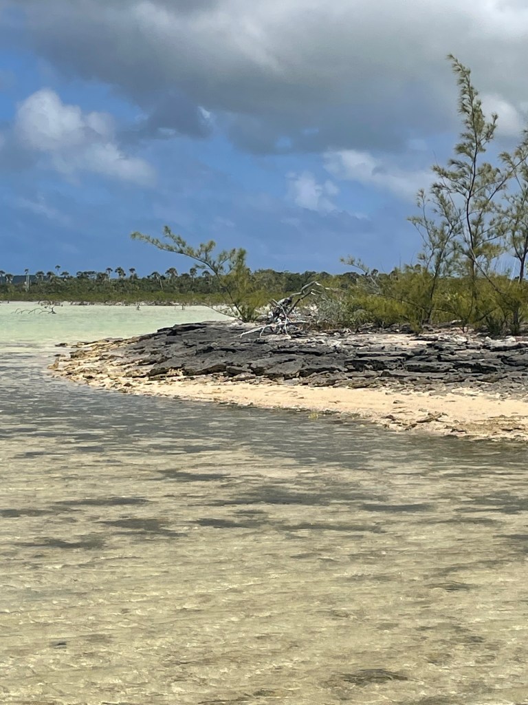Exploration number 1 was on O’Brien Cay. We took the dinghy to the north end of the island and walked across the island to the sound side. There were no beaches on that side but some very interesting rocks! From a second beach (just beside the first one we stopped at) we discovered an interior pond that you really couldn’t see from the water. It was super cool and we walked all the way around it. We were here at low tide so it was very easy to get in and out.