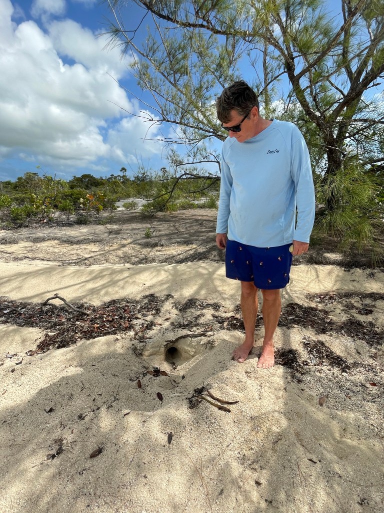 We are currently anchored in the south east corner of the Bight – a large bay at the south end of Cat Island. As we travelled across the sound, we could see many other boats heading this way and we are now anchored with most of them. It’s a very large area so it doesn’t feel crowded at all. Today we explored a little creek near us called Joe Sound Creek and it had a very nice beach on the east side of the creek. We had a good walk along the beach and saw lots of shells. We also found several large holes – no idea what is using these holes but if it’s a crab, I don’t want to meet one on the beach!!