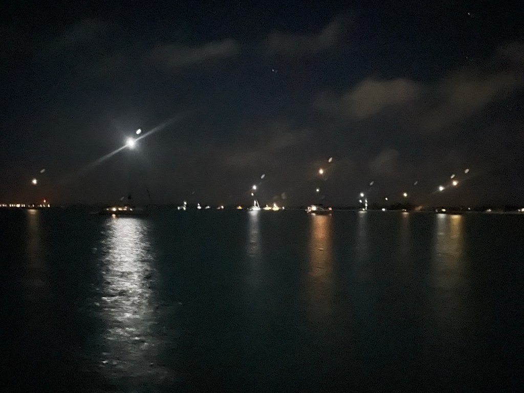 Last sunset at Lee Stocking Island.Coming to the entrance of the marina at Emerald Bay.Entering Elizabeth Harbour and coming up on Monument Beach anchorage off of Stocking Island.We found everyone – there in Elizabeth Harbour!First sunset at Red Shanks (a small sailboat is coming into the anchorage from an unusual direction!).Doing laundry on a Tuesday morning.Even the cat likes the liquor store next to the laundromat.The dinghy dock in Lake Victoria, George Town.Lunchtime at Island Boy Cafe, George Town.Wednesday night’s sunset!!