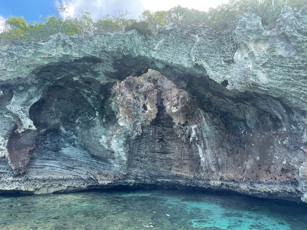 This post is all about the caves!! We’ve had a few days of restful exploration back in the Exumas, starting with Rudder Cut Cay. This area is known for a few things – Musha Cay which is owned by David Copperfield and the piano & mermaid. When David Copperfield first resided in the Bahamas, people would come to his island to check things out! So to give people something else to look at, Copperfield commissioned Jason deCaires Taylor to created a sculpture of a piano and mermaid. This sculpture is about 2nm south of Musha Cay and it was just south of our anchorage at Rudder Cut Cay.