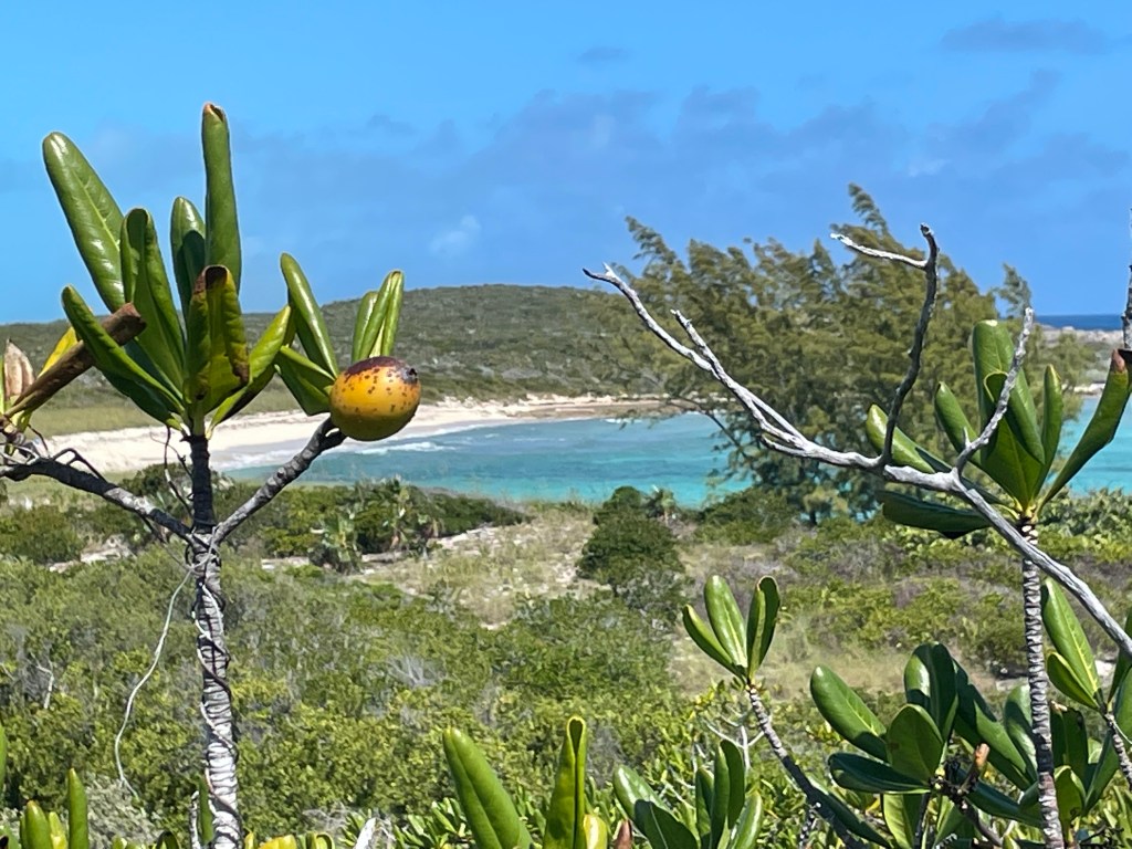 Anchored at Thomas Cay in Pipe Creek.Sandbar near Pipe Cay.Just hanging out on the sandbar!This is the cut between Thomas and Joe Cays.Mark’s checking out the cut!What a view!Steve’s taking a rest under the one tree on the beach!Another beach on the sound side of Thomas Cay.View from the top of the hill on Thomas Cay.Lots of questions about these goats – where do they get fresh water?The sound side of Thomas Cay is quite rocky.This is called a seven year apple shrub.Lots of wave action!We’re at the top of a big rock (hard to tell from this photo).This is the rock!So what did you find, Captain?More beach and waves.One of the more original trail markers we’ve seen!On a mooring ball at O’Briens Cay.