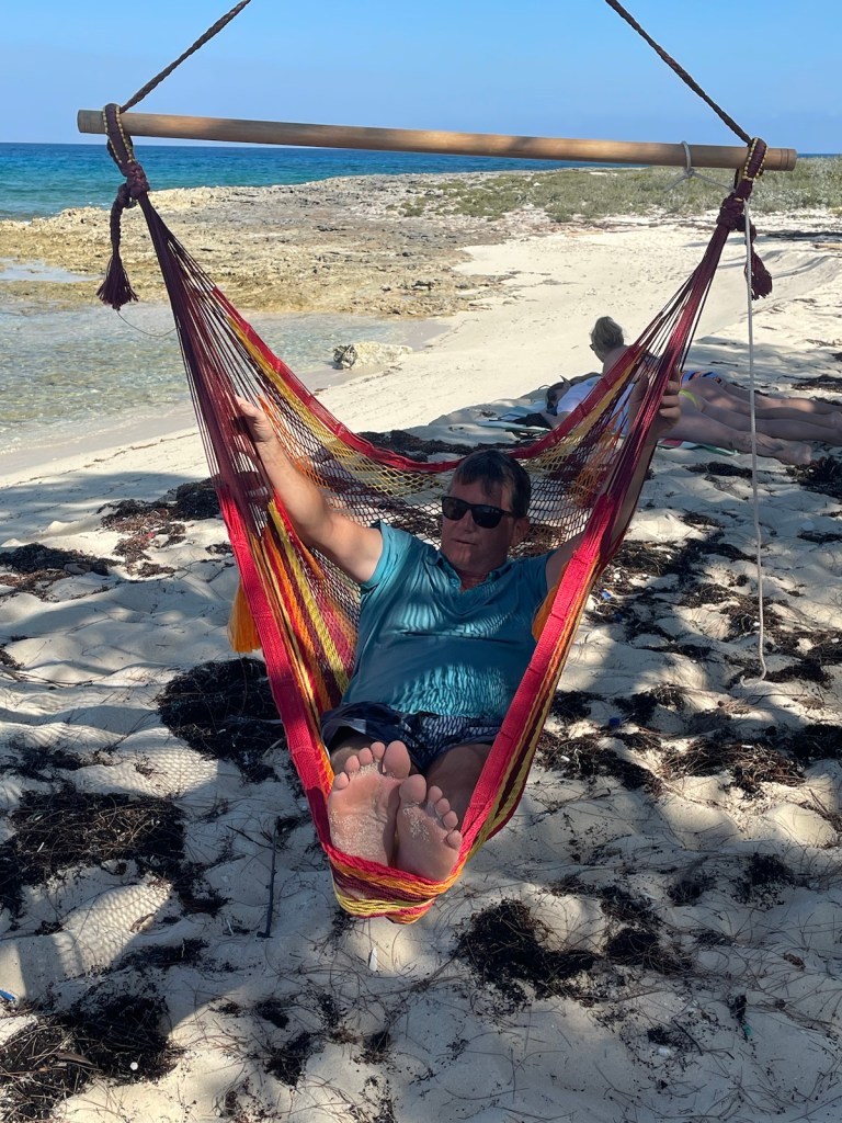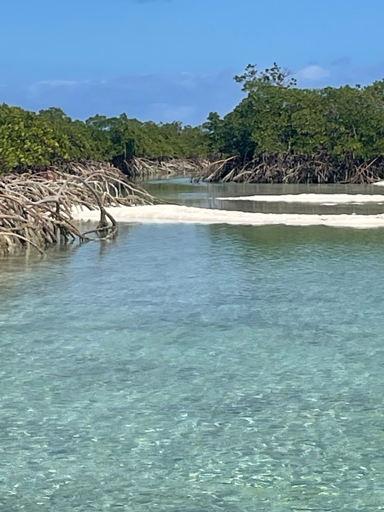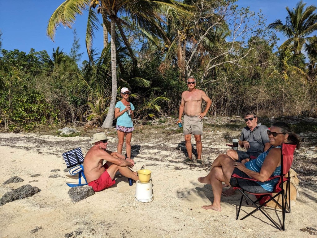 Wednesday morning all 3 boats headed farther north to Crab Cay. This spot offered us good protection for the north east/ east wind that we’re starting to experience now! We had a nice happy hour on the beach last night with all 3 couples – our last because Orkan took off this morning to head to West End. They plan to cross to Florida on Monday.