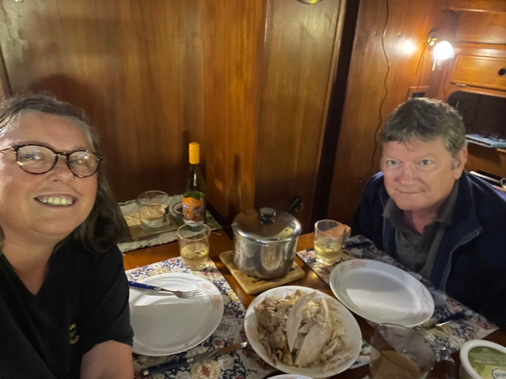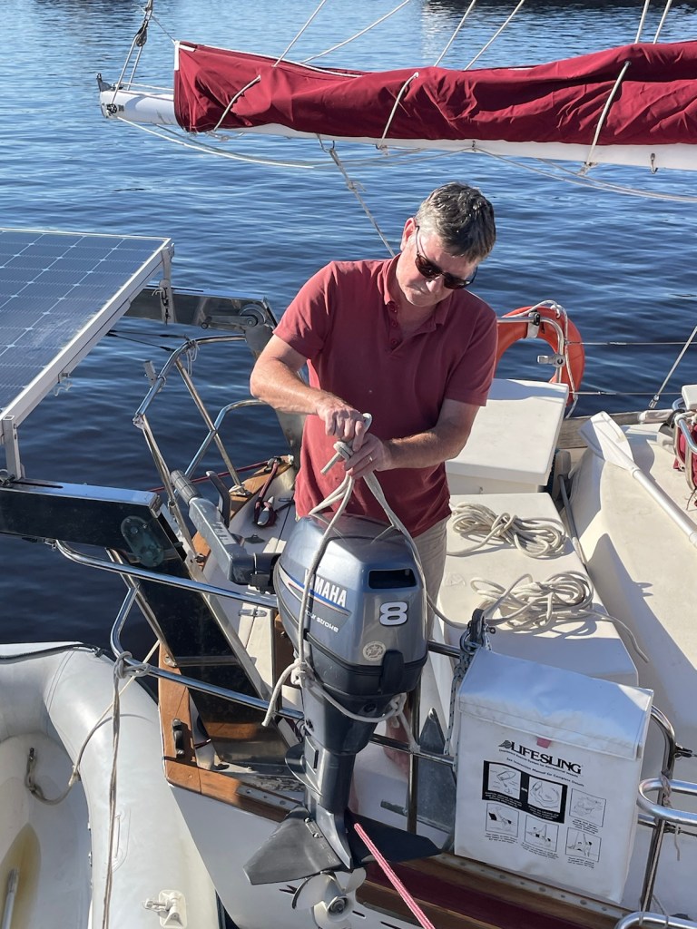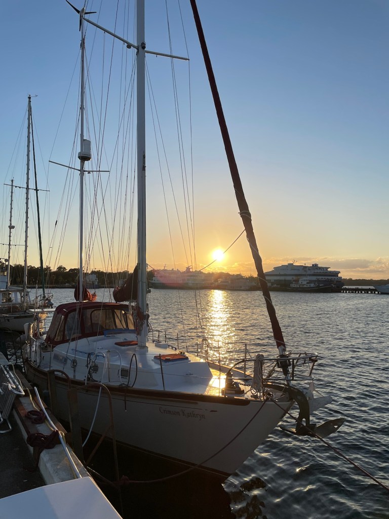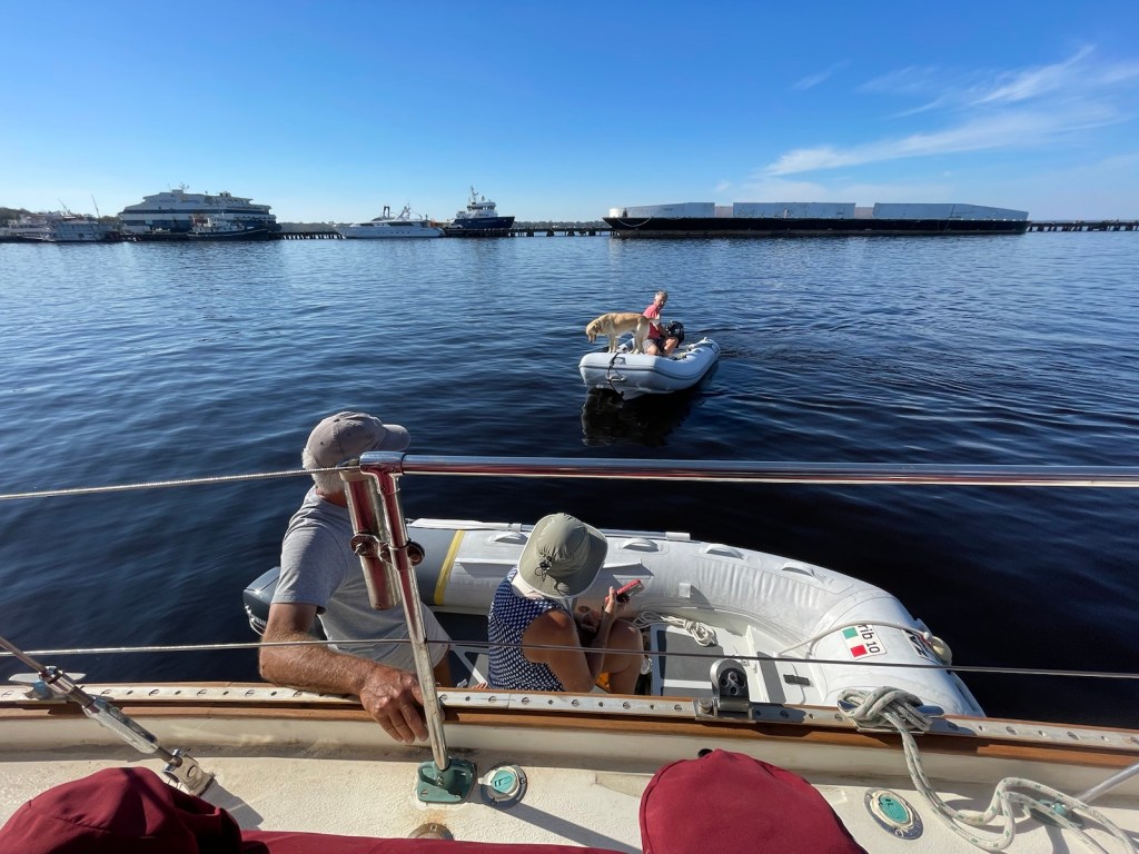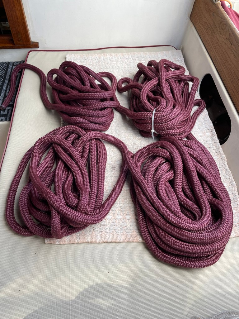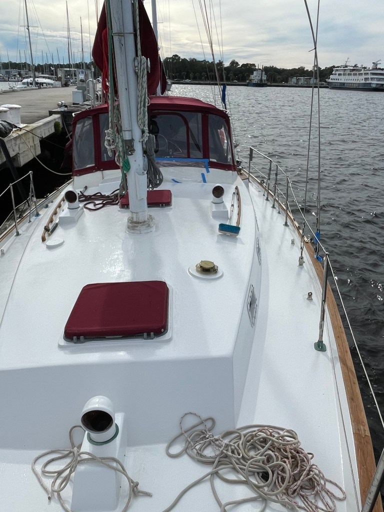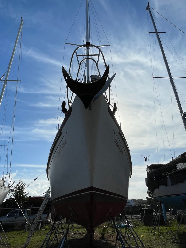 Mark finished the renovation of the chain locker on Monday (Nov. 27). There was a partition in the locker dividing it in half but our new 200ft of chain wouldn’t fit so Mark rearranged the partition. Late in the afternoon we loaded the new chain into the locker – it was a perfect redesign!! After the chain was loaded aboard, we had to bring our 80lb anchor back into position on the bow. We used the windlass to haul the anchor back into position and as it got close to the roller at the bow, the rope broke!! Luckily Mark was holding the second line and as he struggled to hold onto this line, I quickly grabbed the end of that rope. The anchor dropped back into the water and gave Mark a nasty rope burn (removing some skin too). We tied off the line and caught our breath. One of our dock neighbours came over and helped Mark lift the anchor close enough to the bow so I could attached a bigger rope to the anchor. With the new line we were able to get the anchor back on deck and then secured to the chain!!