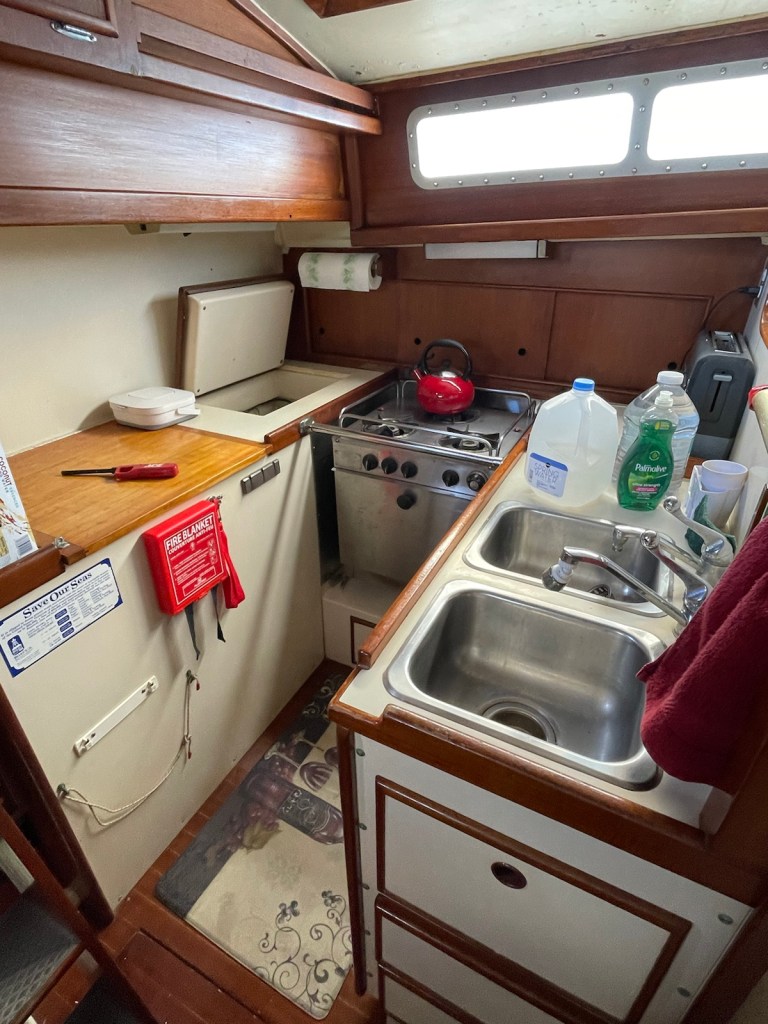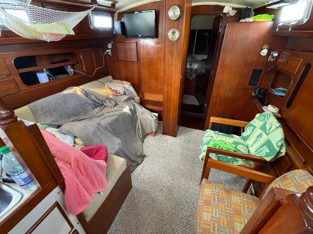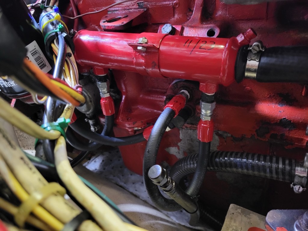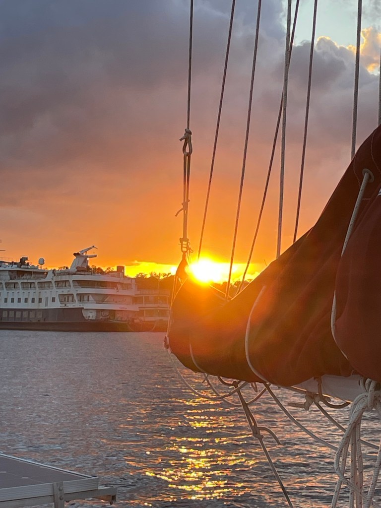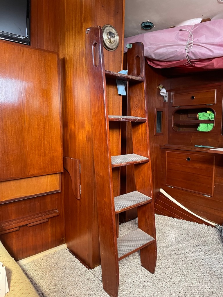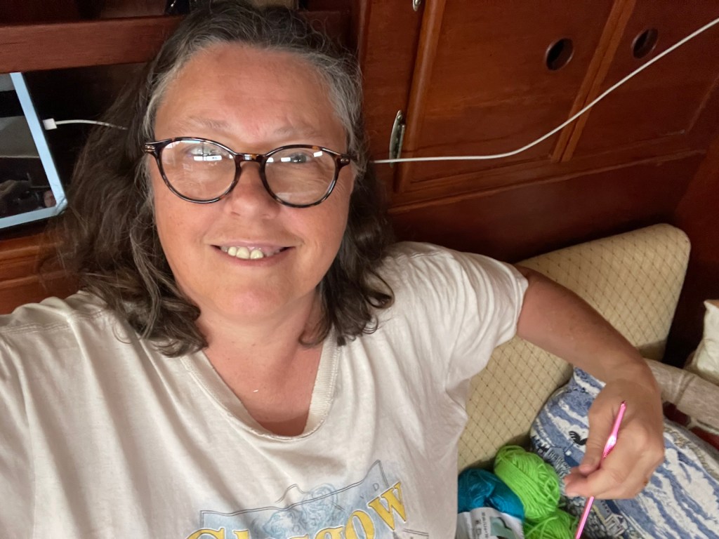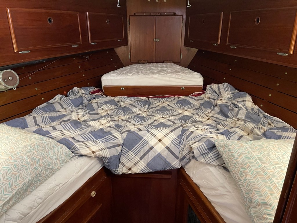 Mark finished the renovation of the chain locker on Monday (Nov. 27). There was a partition in the locker dividing it in half but our new 200ft of chain wouldn’t fit so Mark rearranged the partition. Late in the afternoon we loaded the new chain into the locker – it was a perfect redesign!! After the chain was loaded aboard, we had to bring our 80lb anchor back into position on the bow. We used the windlass to haul the anchor back into position and as it got close to the roller at the bow, the rope broke!! Luckily Mark was holding the second line and as he struggled to hold onto this line, I quickly grabbed the end of that rope. The anchor dropped back into the water and gave Mark a nasty rope burn (removing some skin too). We tied off the line and caught our breath. One of our dock neighbours came over and helped Mark lift the anchor close enough to the bow so I could attached a bigger rope to the anchor. With the new line we were able to get the anchor back on deck and then secured to the chain!!