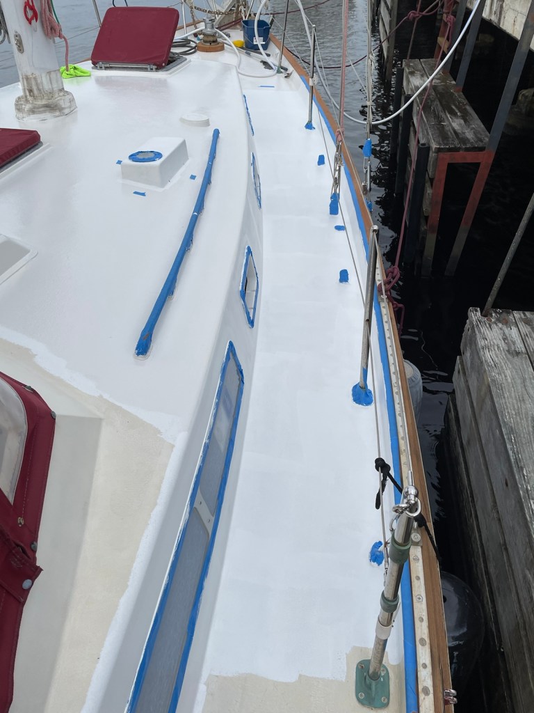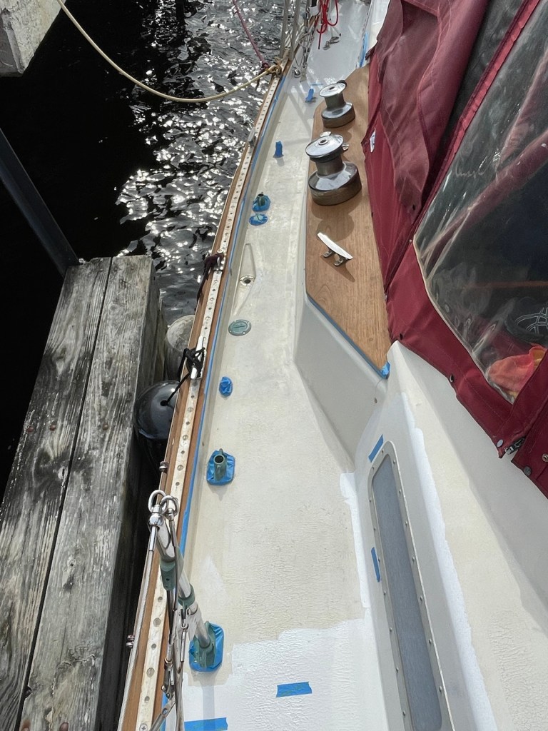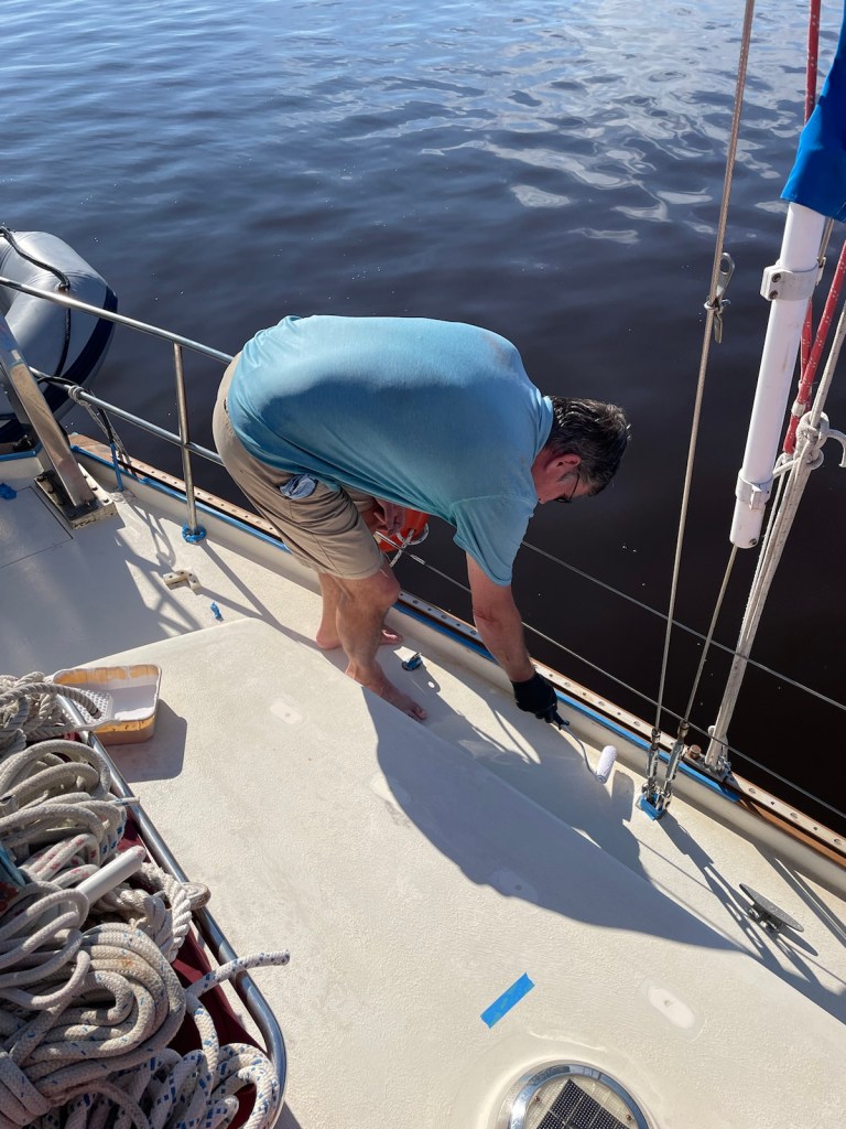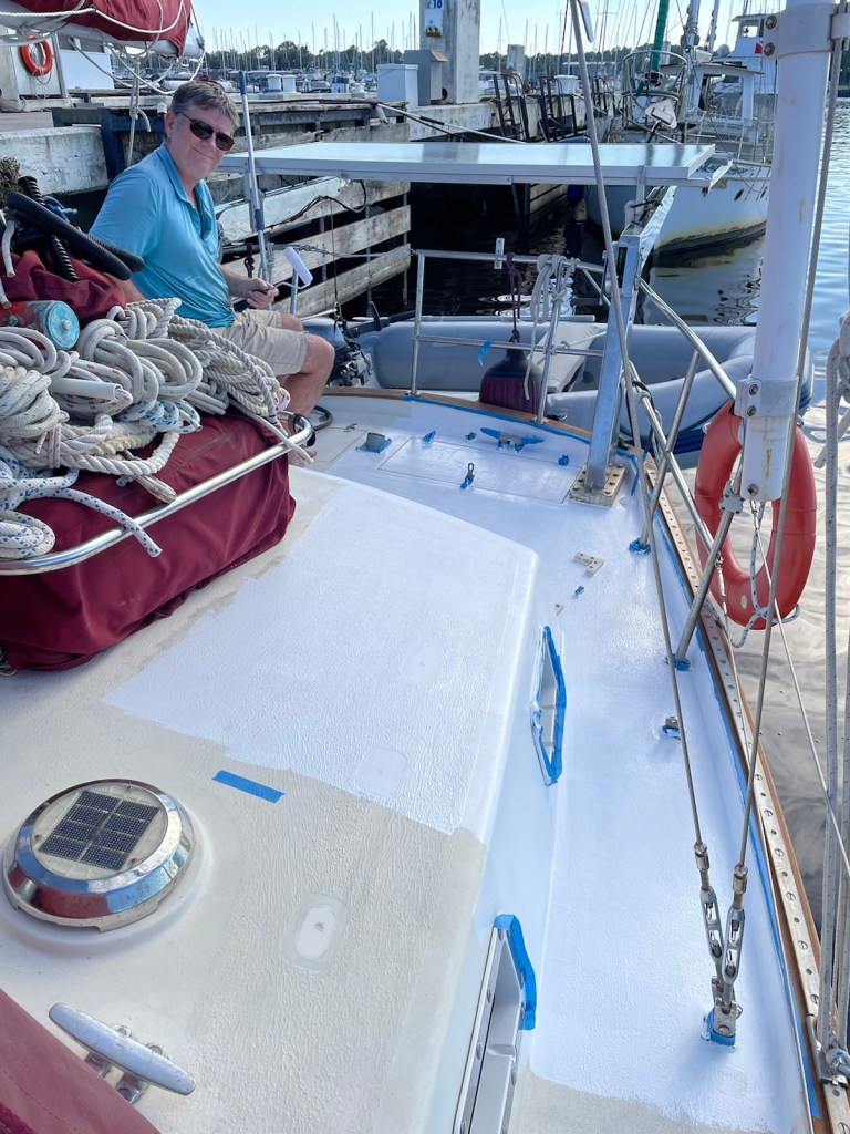 Today (Nov. 29) will be the second last day for painting (until we return after Christmas). It’s sunny and cool so we’ll wait till after lunch to put the first coat of colour down. We also need to go out and buy groceries for our week long journey down to Vero Beach. We’ll take our time going south!!