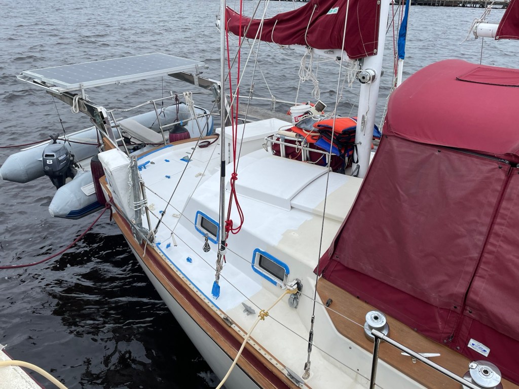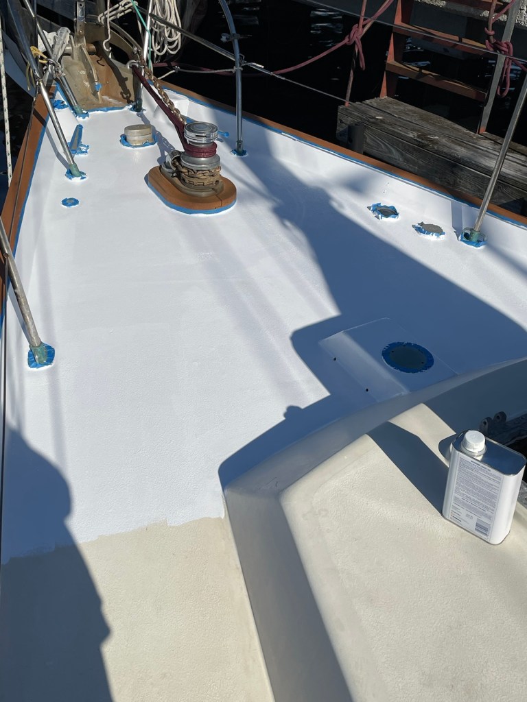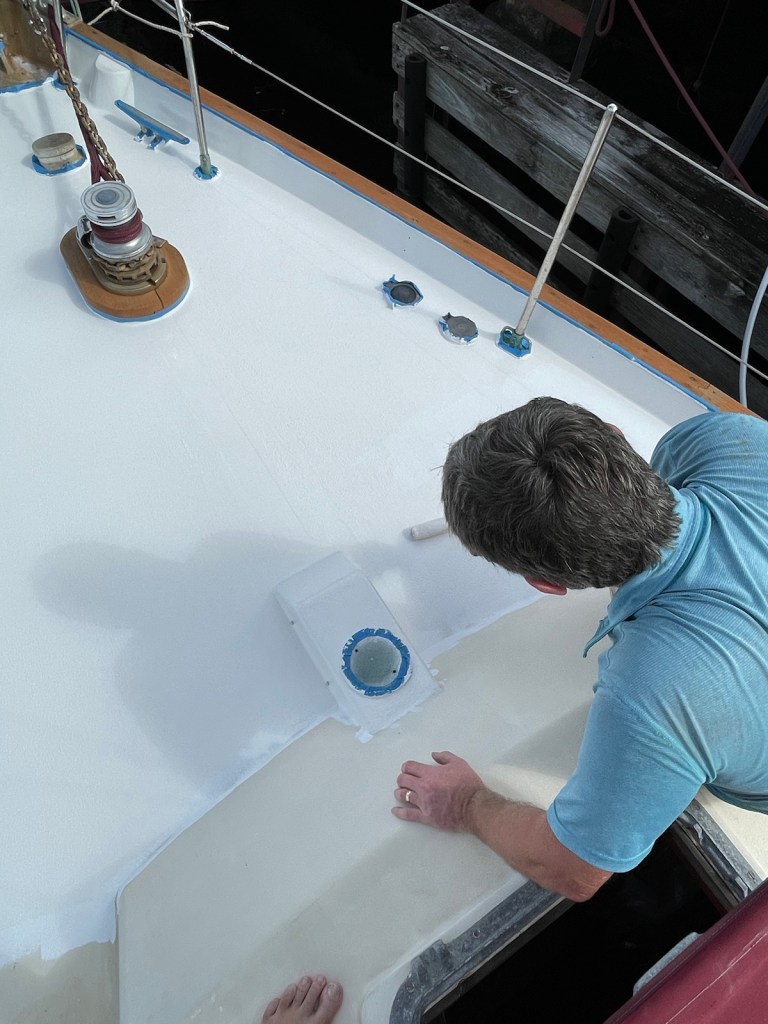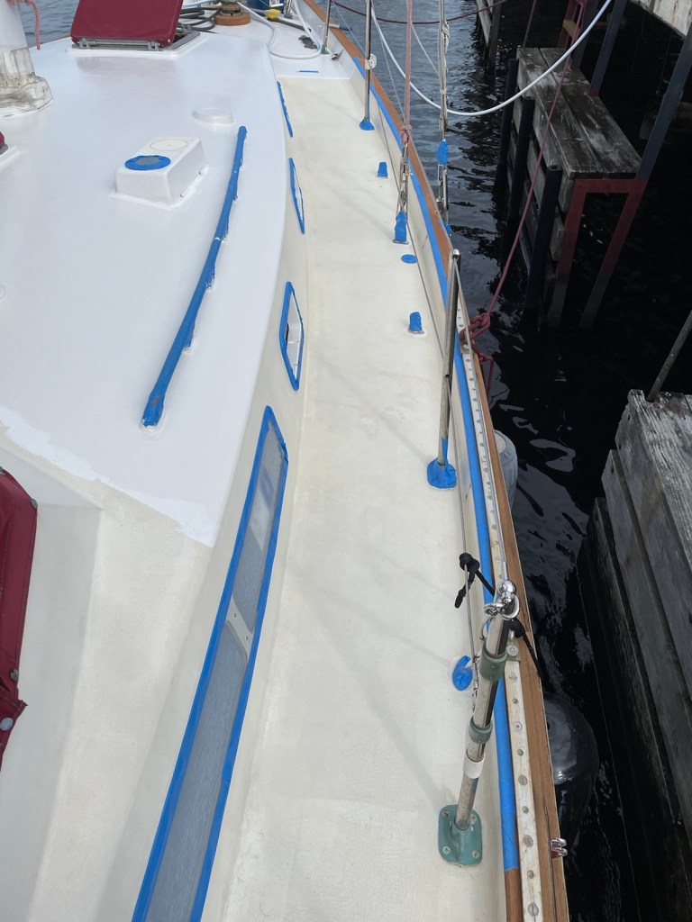 Today (Nov. 29) will be the second last day for painting (until we return after Christmas). It’s sunny and cool so we’ll wait till after lunch to put the first coat of colour down. We also need to go out and buy groceries for our week long journey down to Vero Beach. We’ll take our time going south!!