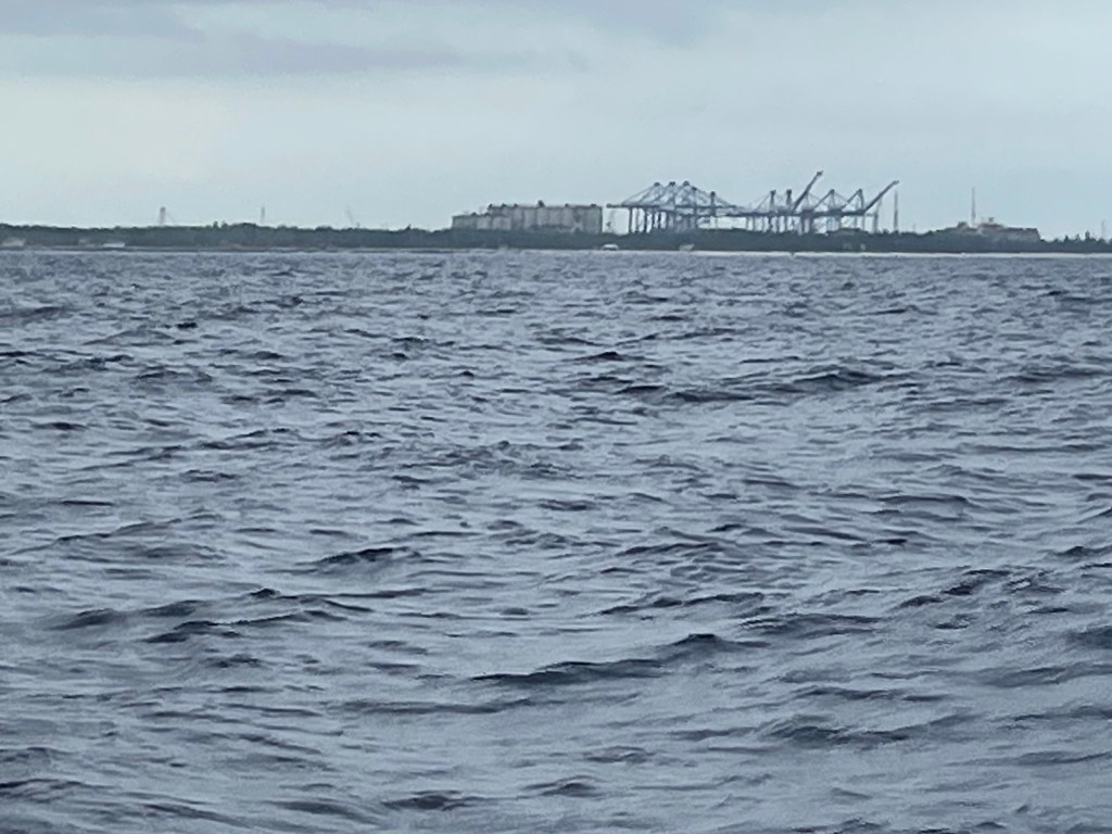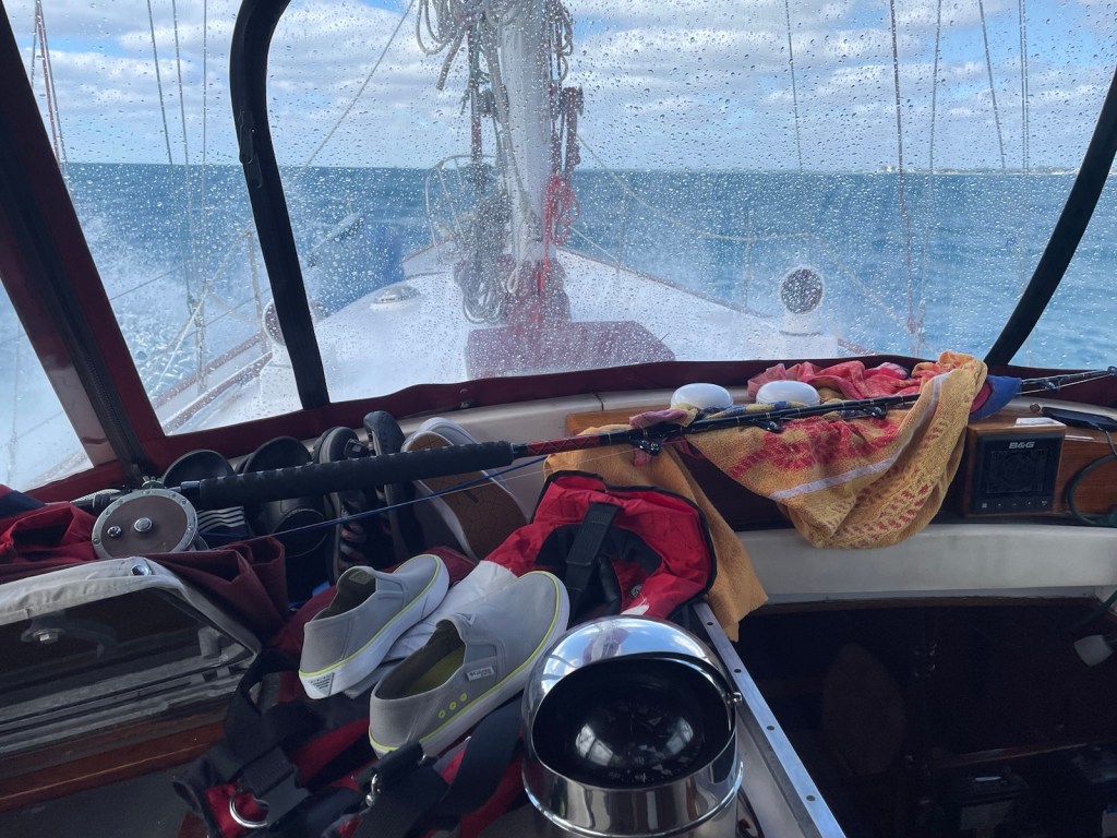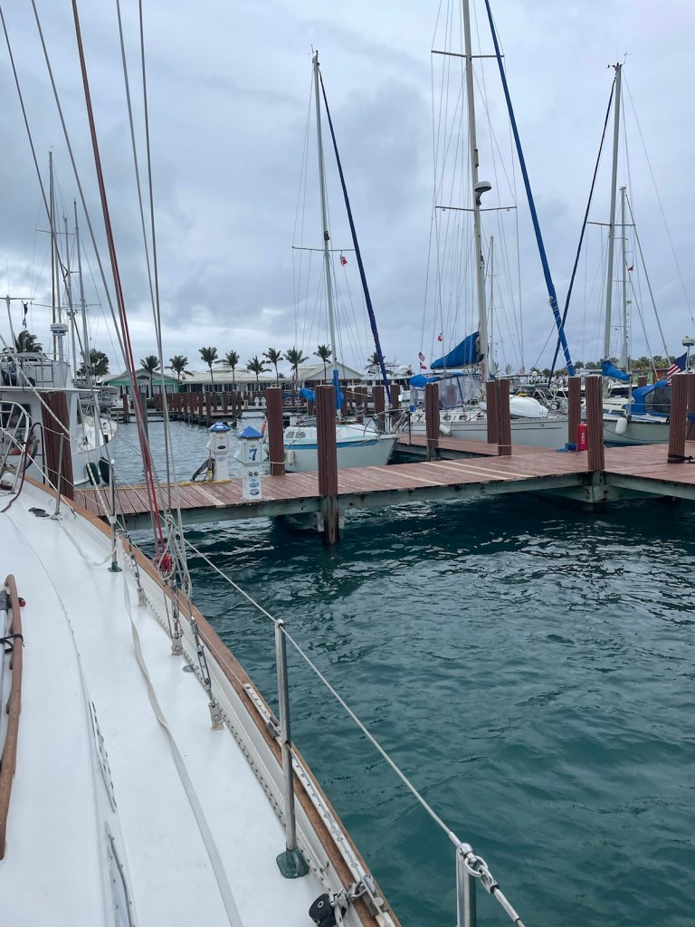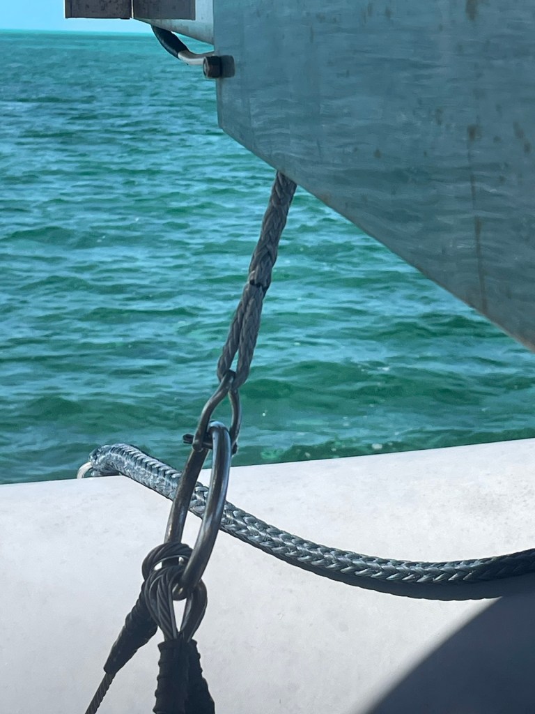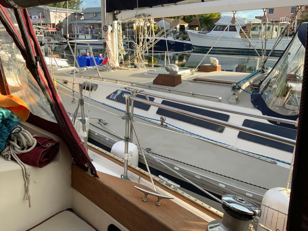 The trip around to the south west side of New Providence was about 20nm – not too bad. The first part of this trip we had the strong winds “on the beam” which means the wind was perpendicular to the boat. This is great for speed but leads to lots of heeling. It was another wet ride with waves flying over the bow and splashing our dodger. At these times I’m always thankful for our enclosure!!!