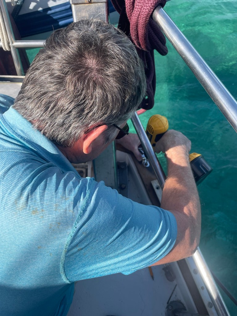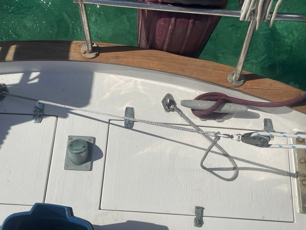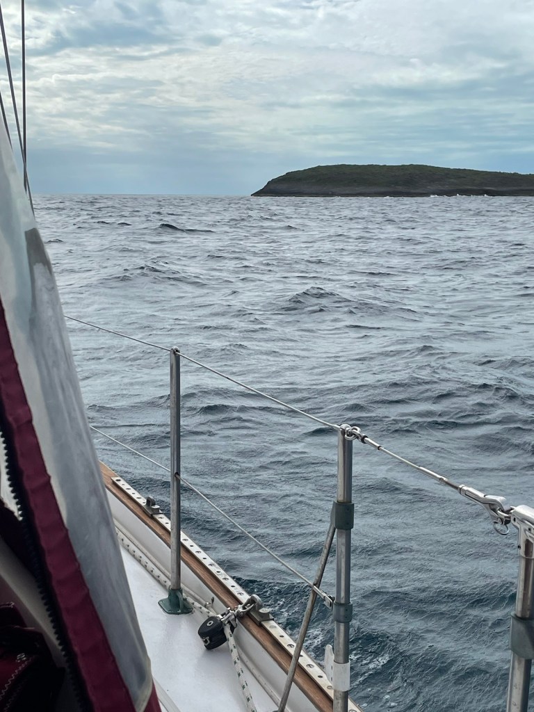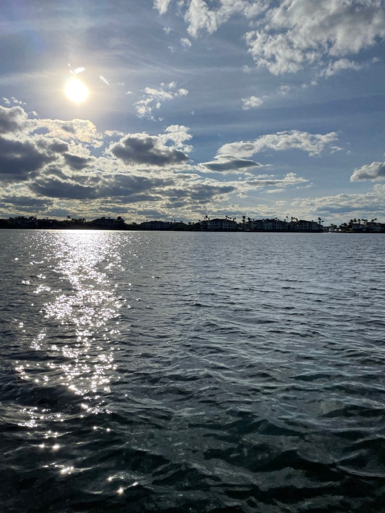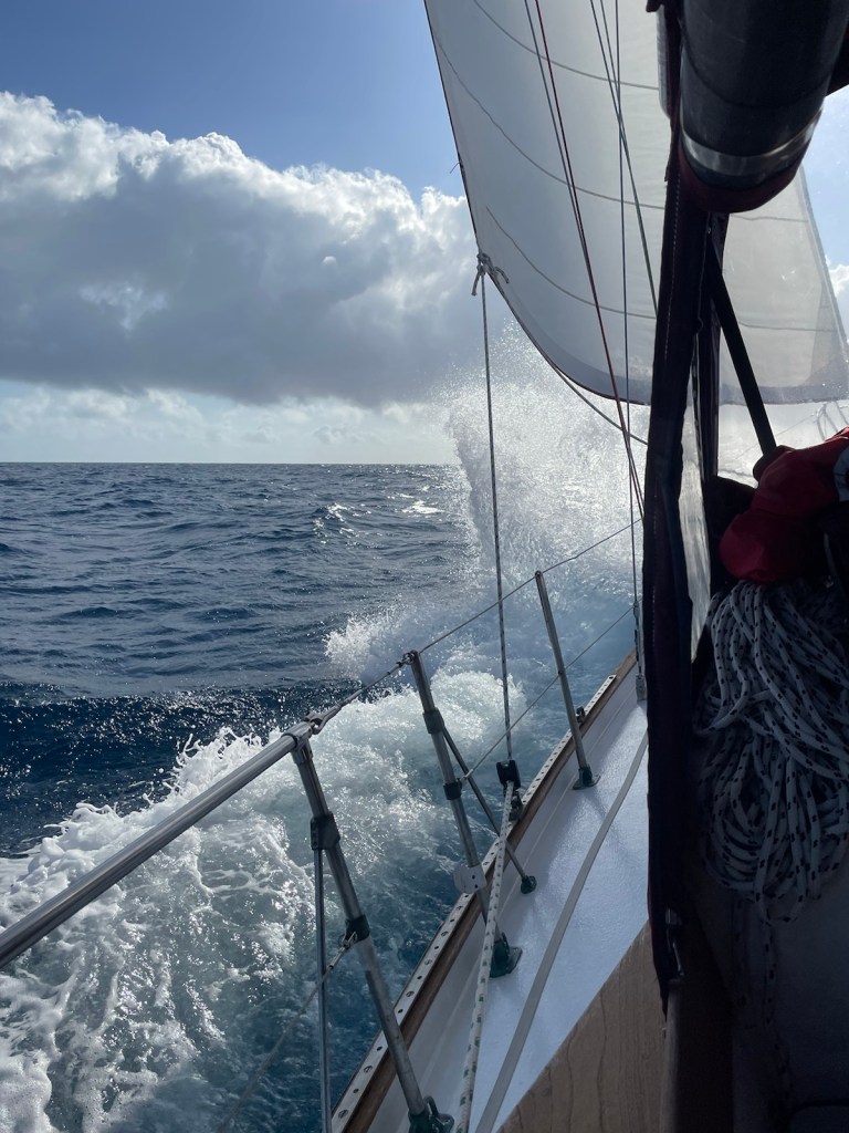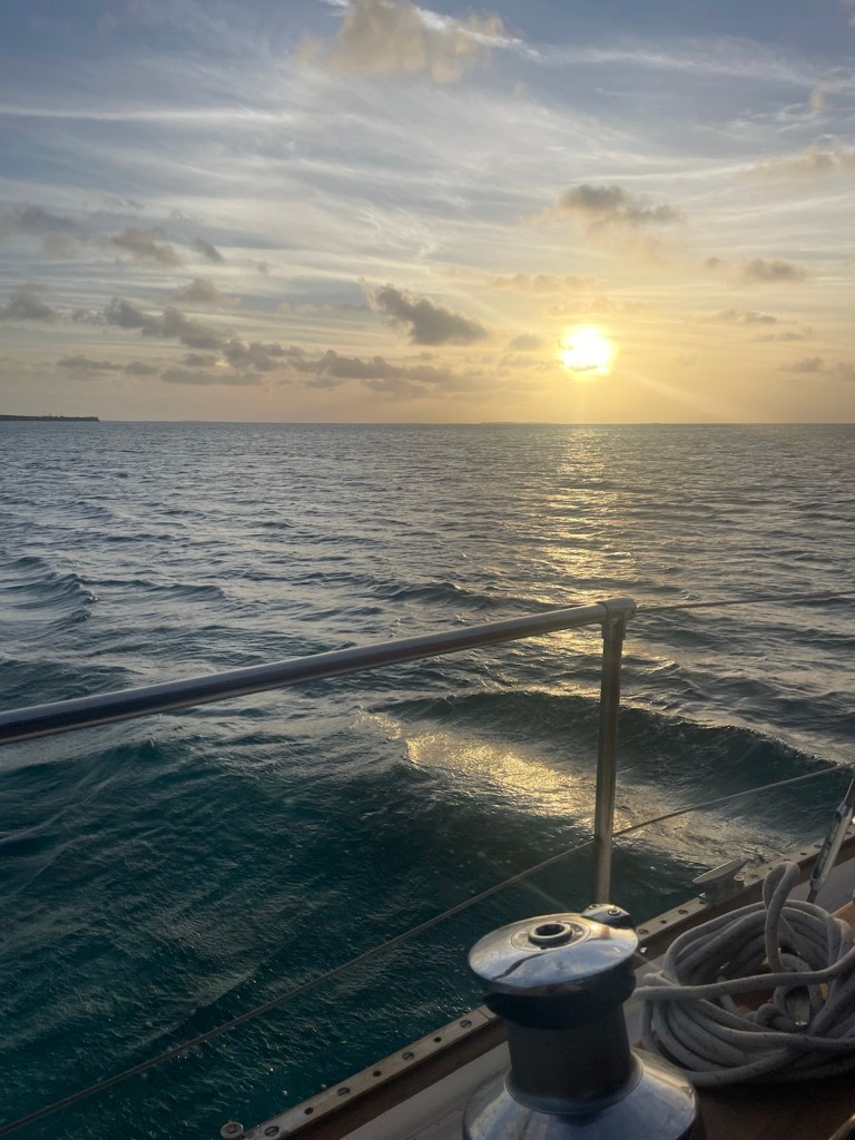 The trip around to the south west side of New Providence was about 20nm – not too bad. The first part of this trip we had the strong winds “on the beam” which means the wind was perpendicular to the boat. This is great for speed but leads to lots of heeling. It was another wet ride with waves flying over the bow and splashing our dodger. At these times I’m always thankful for our enclosure!!!
