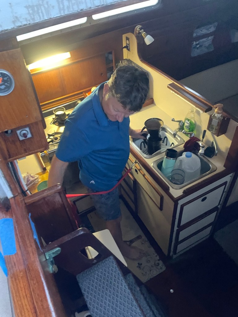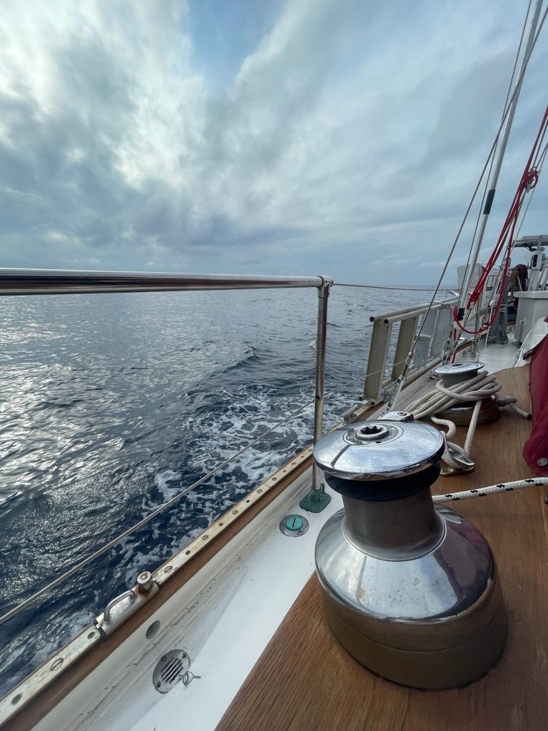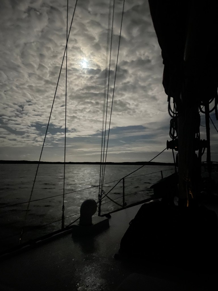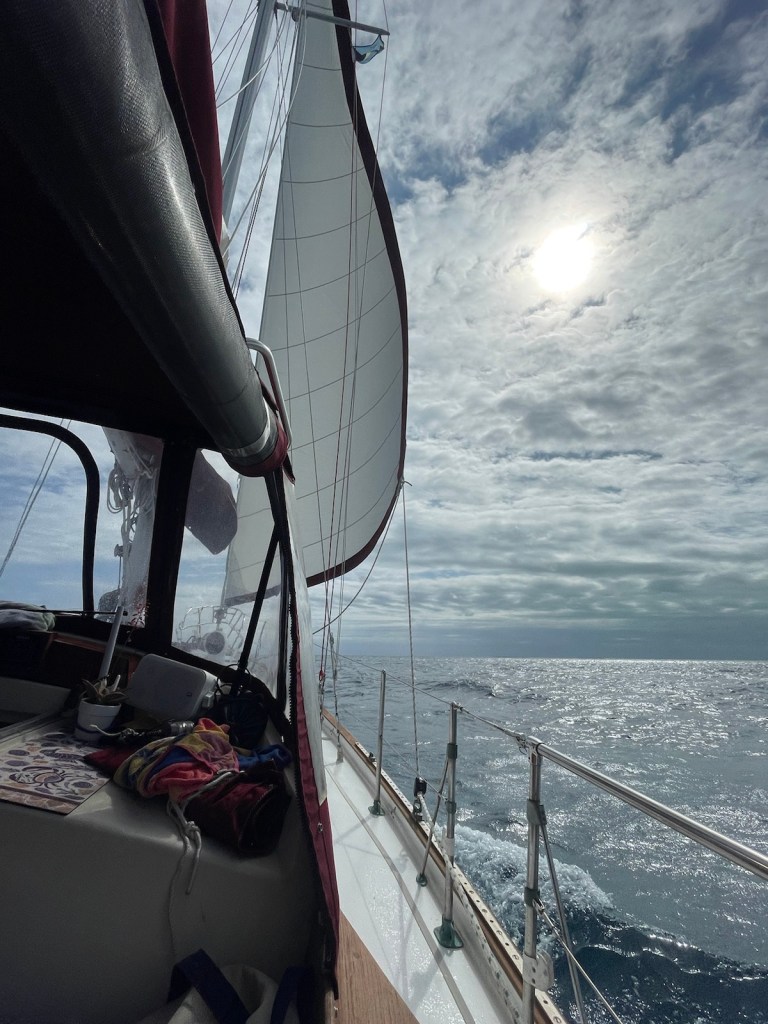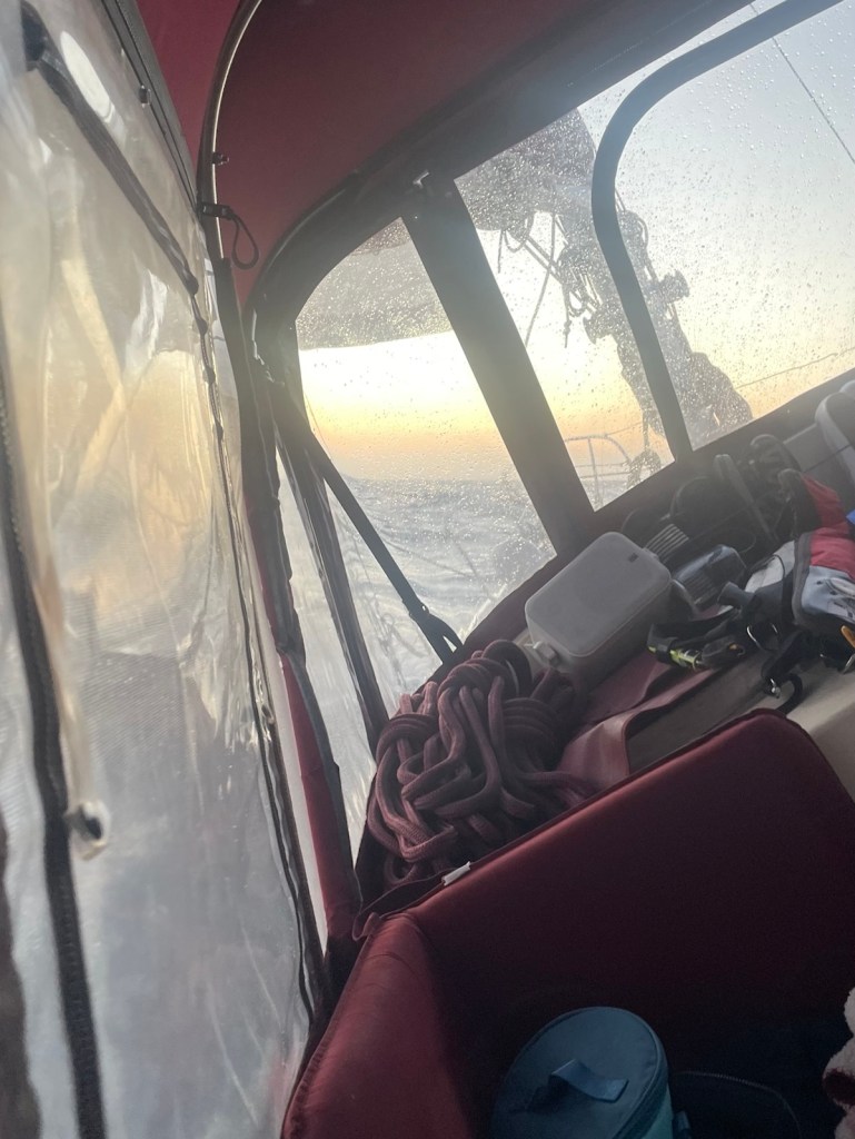 The trip around to the south west side of New Providence was about 20nm – not too bad. The first part of this trip we had the strong winds “on the beam” which means the wind was perpendicular to the boat. This is great for speed but leads to lots of heeling. It was another wet ride with waves flying over the bow and splashing our dodger. At these times I’m always thankful for our enclosure!!!