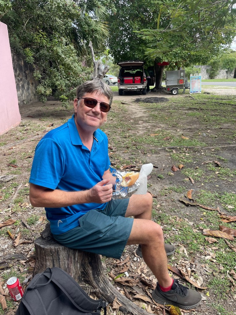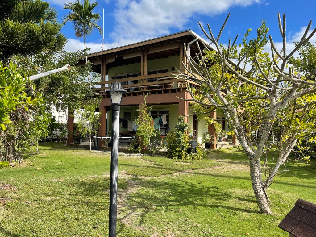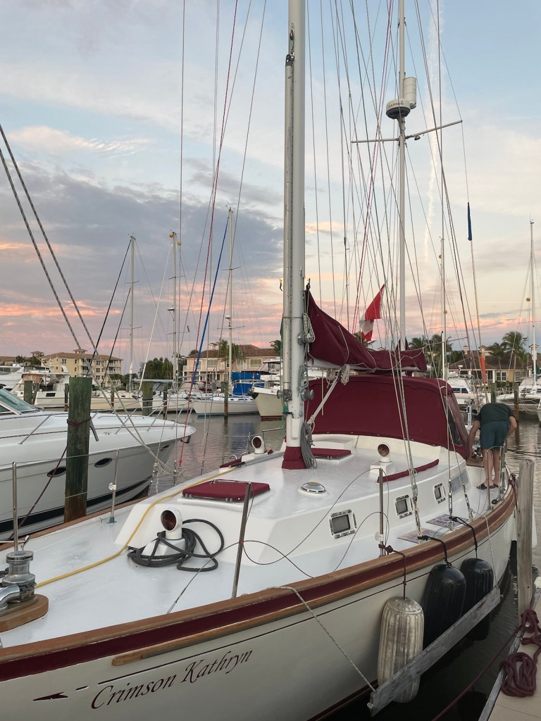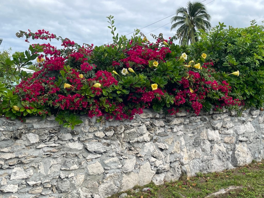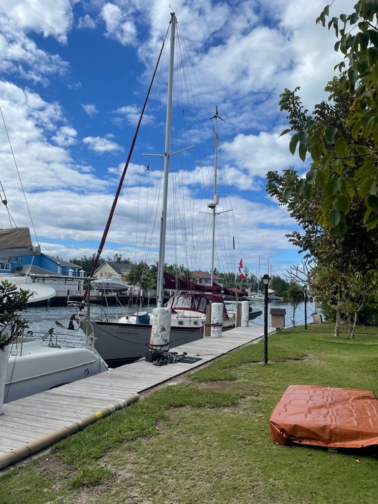 Crimson Kathryn’s home for the next week (ish) is on a dock at a private home. The couple who rent out dock space (and provide a wonderful service and atmosphere for cruisers) have lived in the Bahamas for 60 years (they’re originally from Britain). They have room for 3 boats on their docks and then they “raft” other boats to the docked boats. Right now there are 7 boats here (2 just arrived this afternoon)!! Our first night here (which was last night, Jan. 29), there was a happy hour where we met the other boaters. There is one empty boat, one man from England on a power boat, a French Canadian couple on a catamaran and 2 French Canadian men on a monohull. Today we were joined by 2 American boats – one power and one sailboat. The sailboat is tied up to us and it’s a young couple on a new to them sailboat.