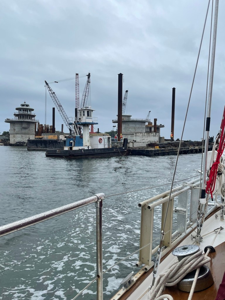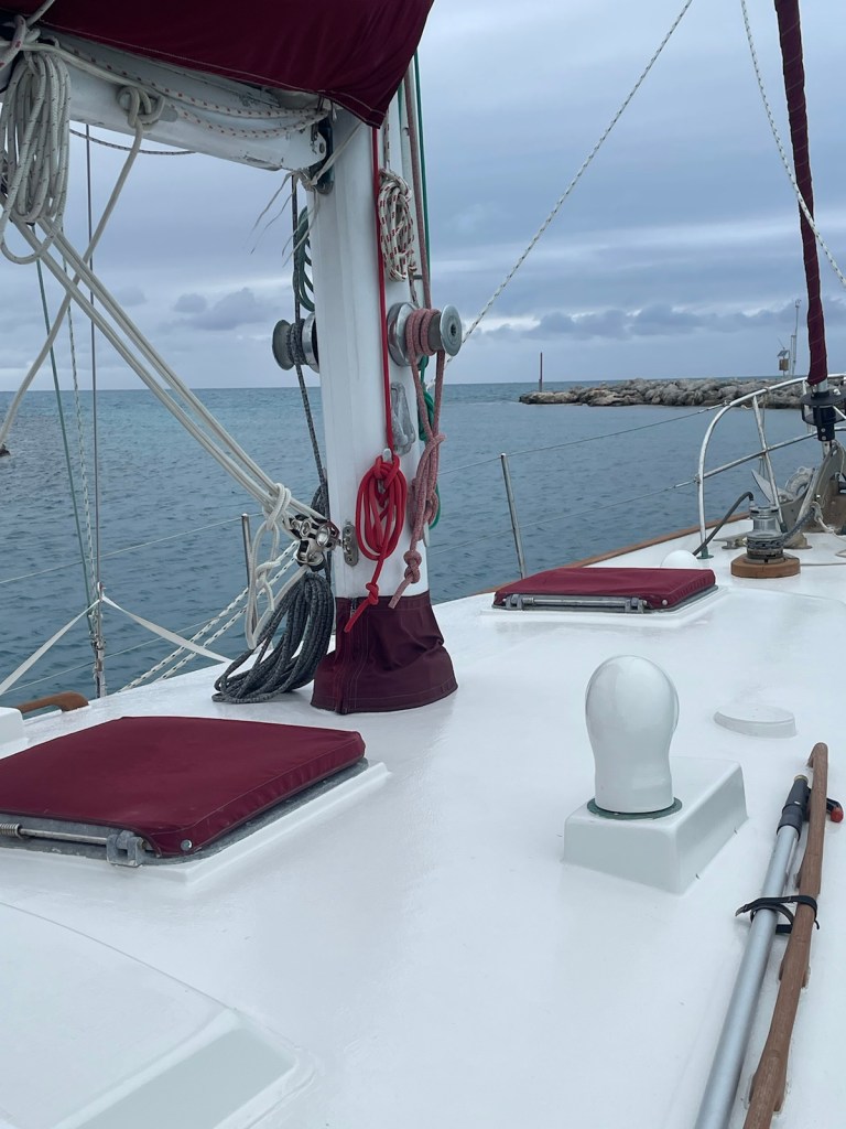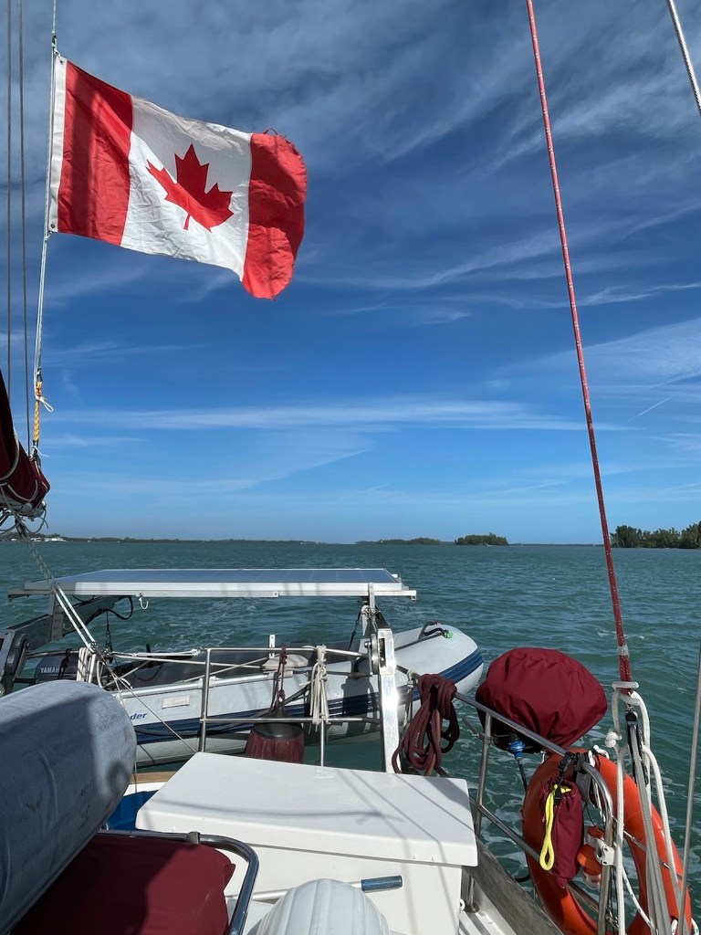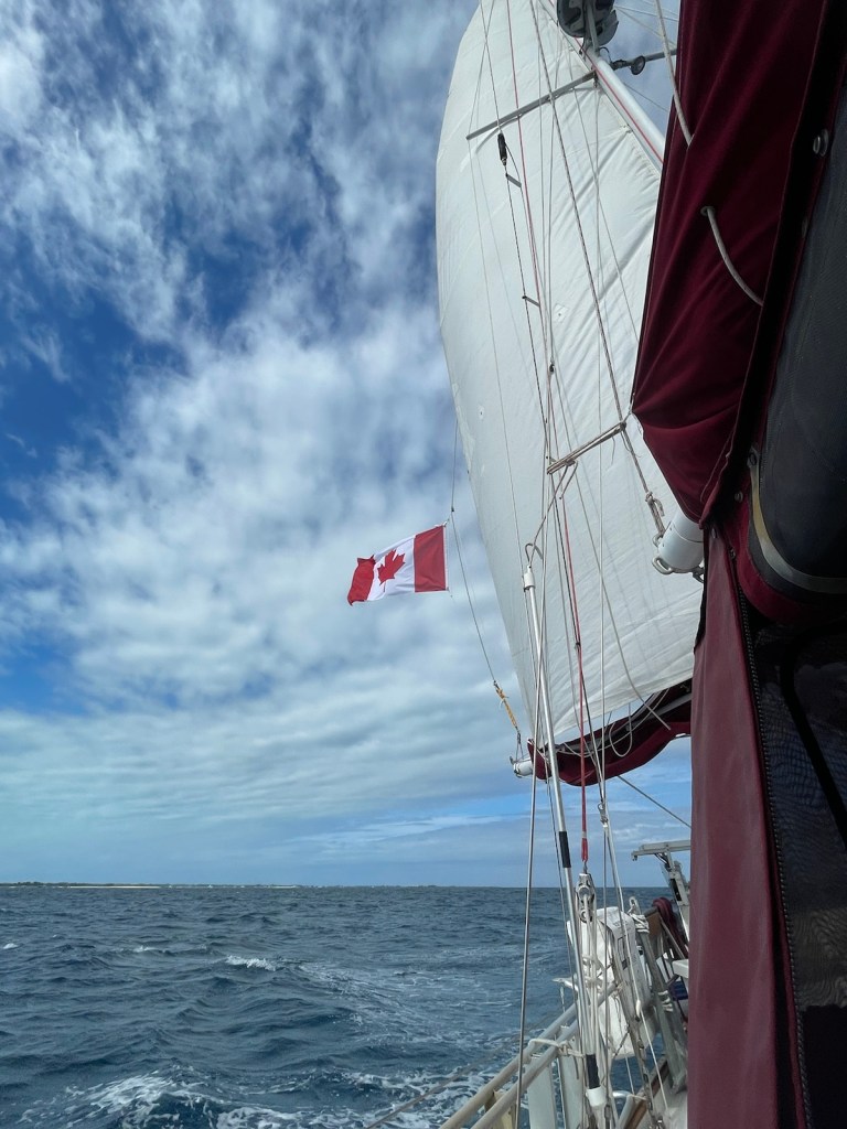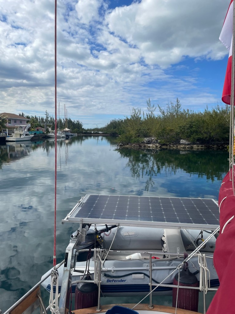 The last leg of our trip, along the south side of New Providence, was more into the wind. The motor went on and the sails came down and we spent the next 2 hours (or so) running into waves and being slowed down by the wind. It was great to finally see the canal into Coral Harbour (which is where the dock is located) and to head in off the rough water.