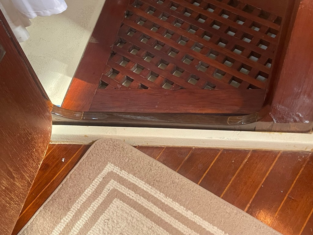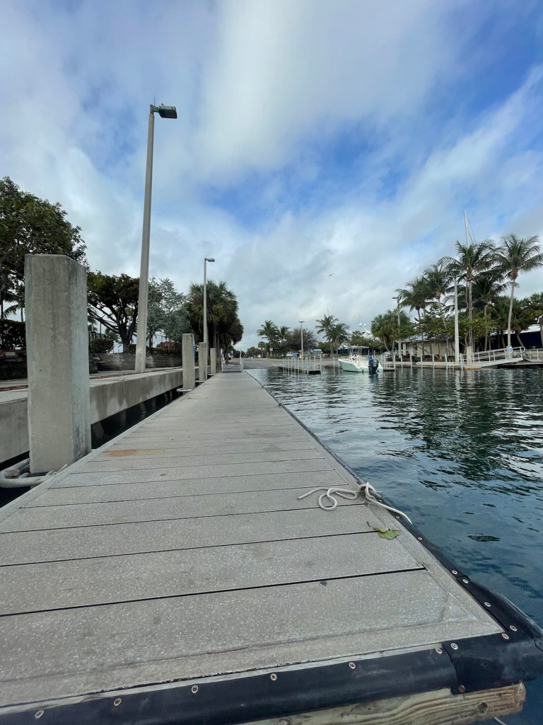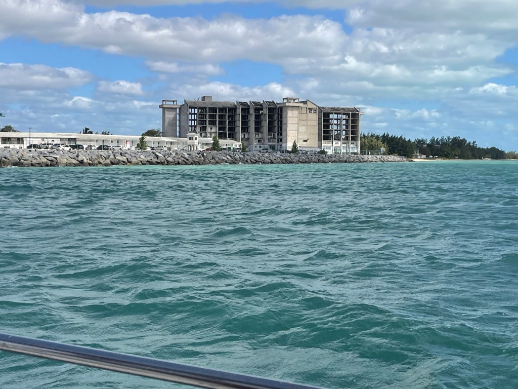 The mouth of this canal has 2 interesting features – a derelict apartment building and a Bahamian Defence Force base. Once inside the entrance, the canals become quite narrow with the occasional sunken boat to negotiate. We were taking it slow through the canals as I was putting out dock lines and fenders. We were barely around one corner when a Bahamian diving boat came up behind us. Mark moved over the best he could and the boat passed us. Turns out their dock (and shop) are right across from our dock! We see a lot of these dive boats as they go in and out all day!!
