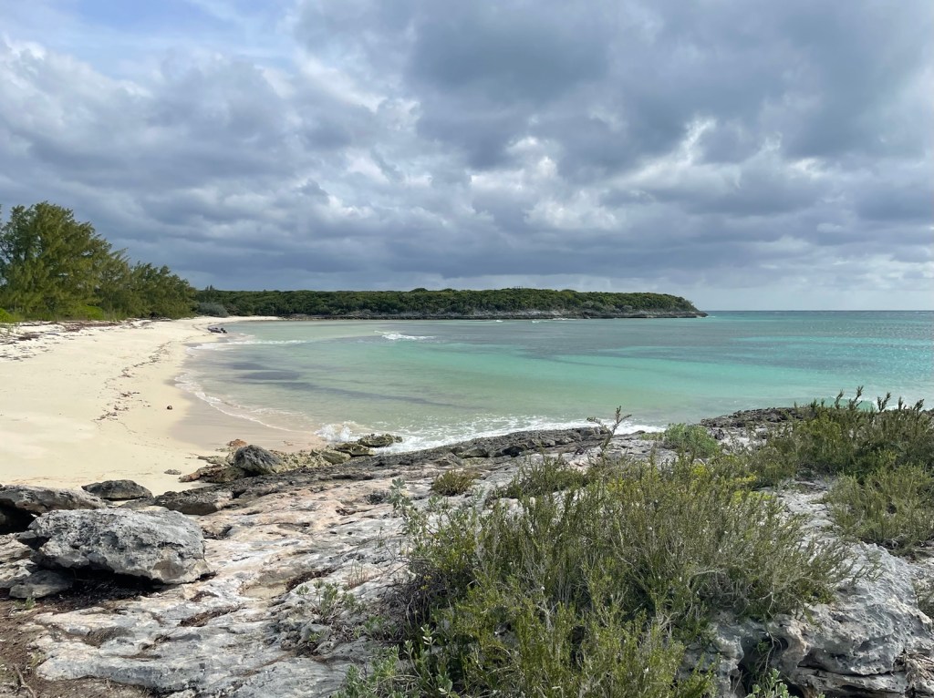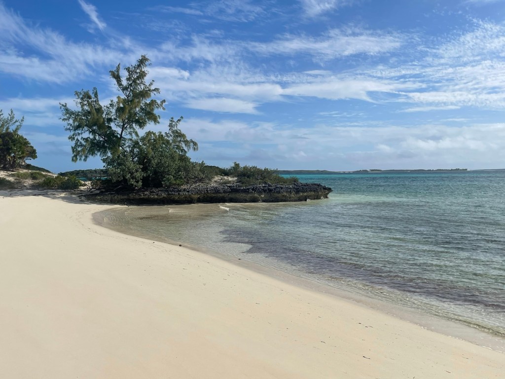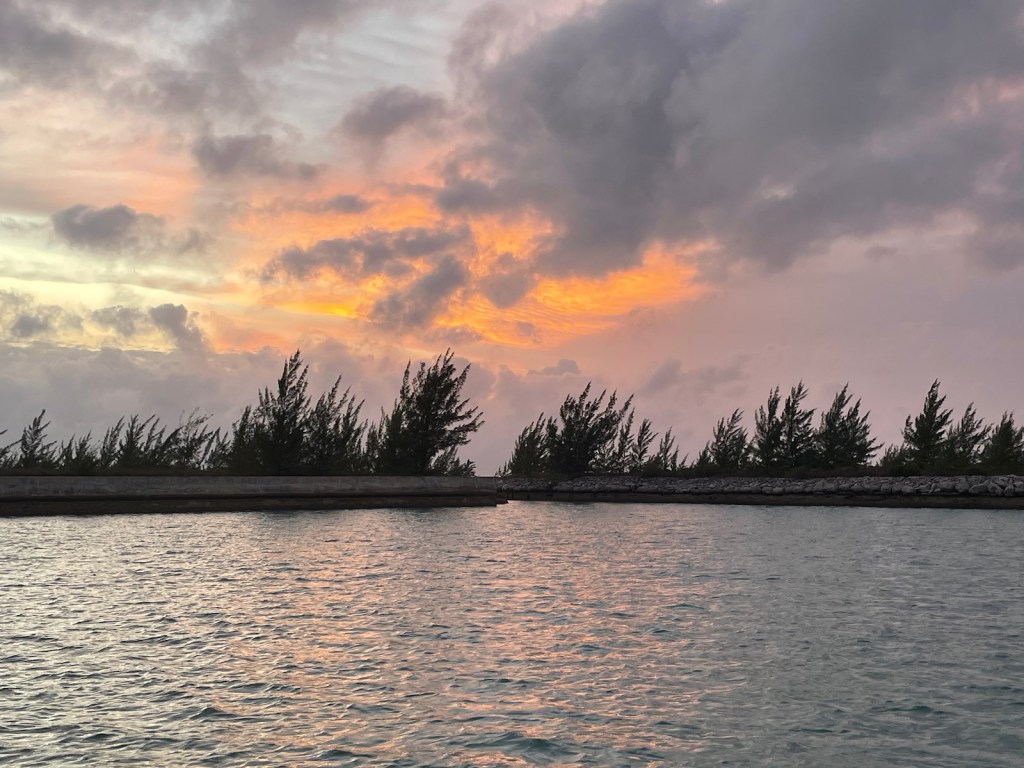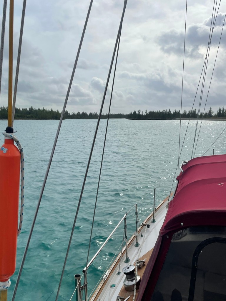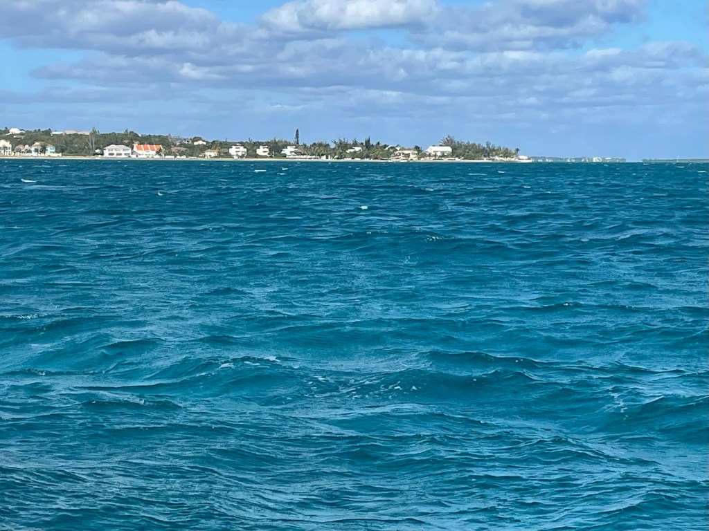 We reached the east side of Athol Island at 4pm and decided not to anchor at that cay. Instead, we went across the channel to the north east side of New Providence. We anchored here last year so were familiar with the anchor holding – it would be good! We were expecting the southwest wind to clock overnight to northwest and to strengthen to 20+ knots. We were hopeful this location would be okay in that wind direction. The predicted blow showed up around 3am and really got going by mid morning. The anchorage wasn’t too bad (a bit bouncy) and our holding was excellent. It was a good place for the night but we were happy to move on in the morning.