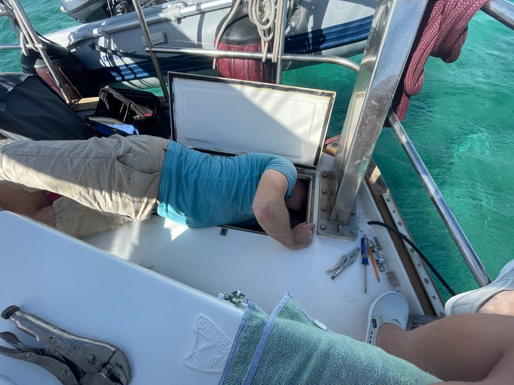 It never hurts to give the boat a little rest after some pretty windy and wavy passages. Our crossing on Jan. 28th from Bond Cay to the east side of New Providence was good but wet. The wind came around from south to be more southwest and we were able to sail most of the 36nm. The waves were fairly big but at a good angle so we weren’t pounding into them. All in all, it was a good crossing.