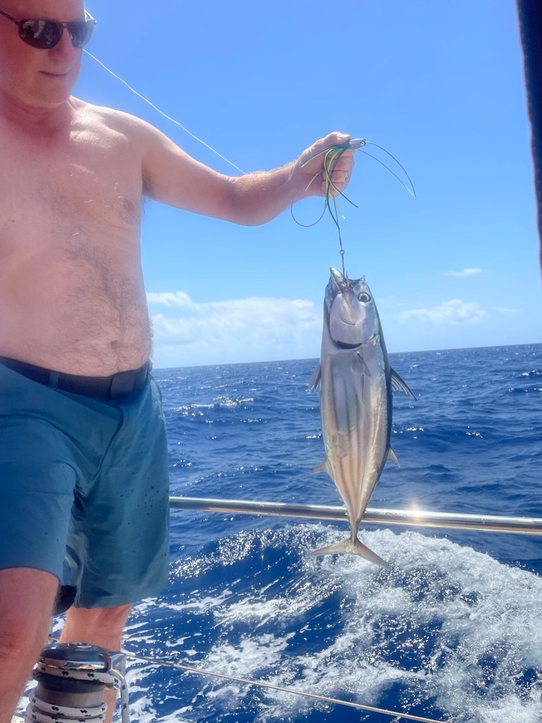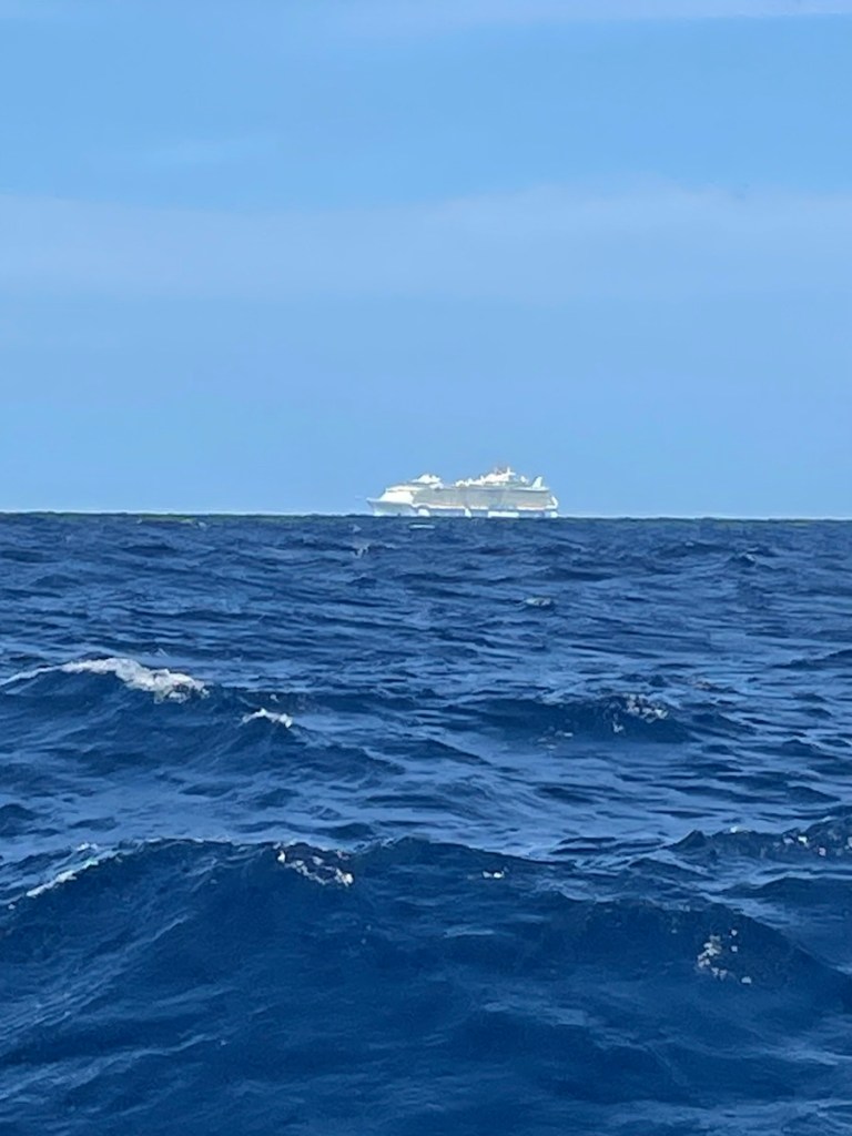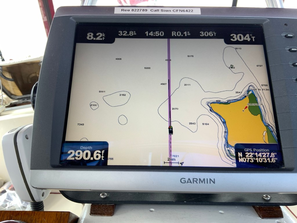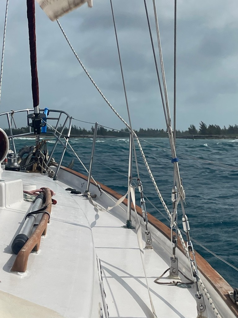 We left Saturday morning pretty much on time and the first part of our sail was a bit wild. Lots of wind and good sized waves moved us along quickly in the first 18 hours or so. The first night saw us around Acklins Island but the wind was decreasing so we had to motor sail for several hours. That was a bit stressful, not knowing if the engine would quit but it didn’t and we kept up our speed with the combination of motor and sail.