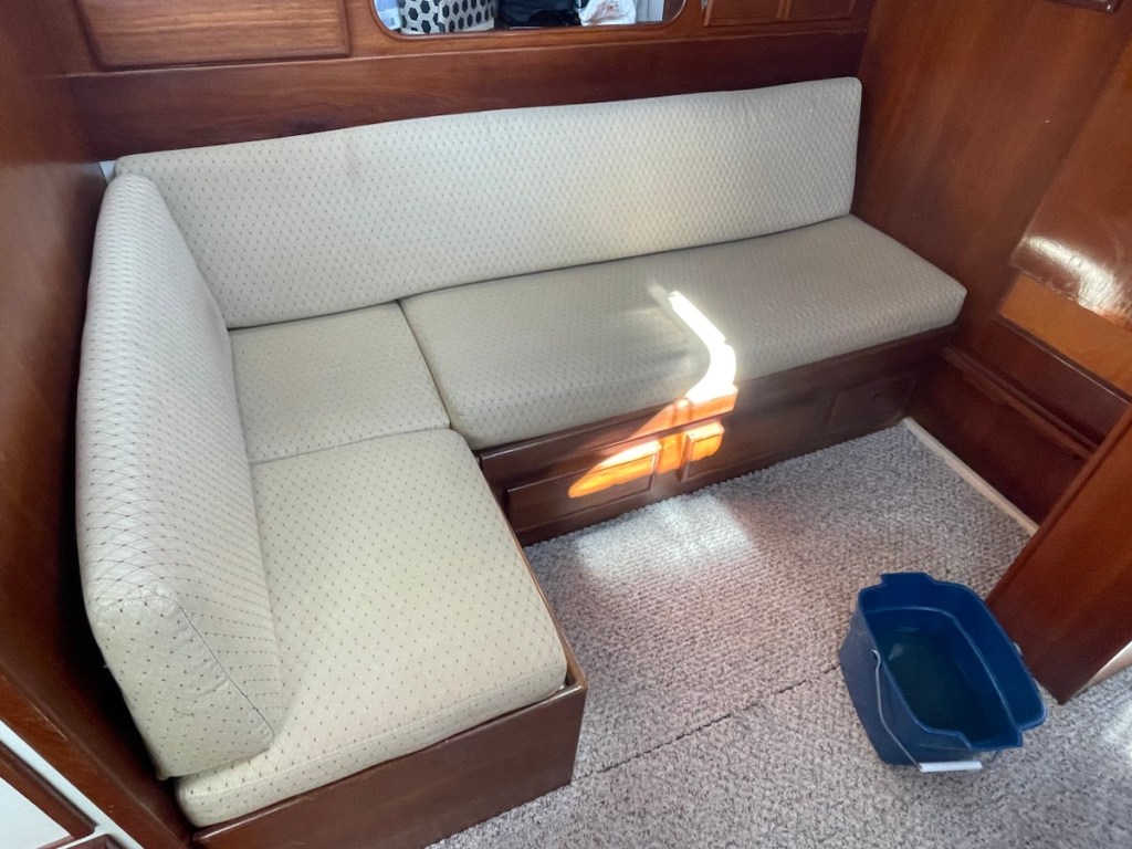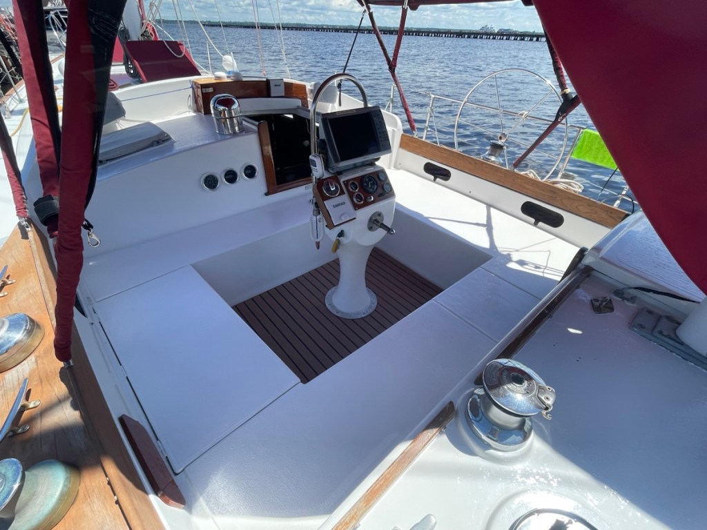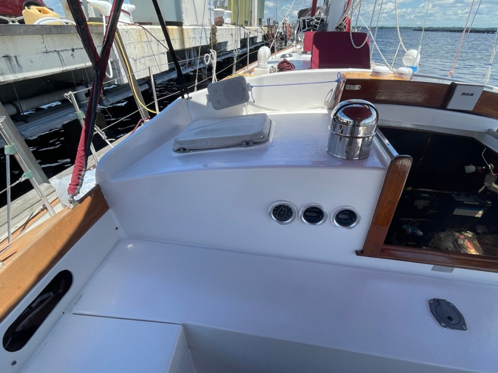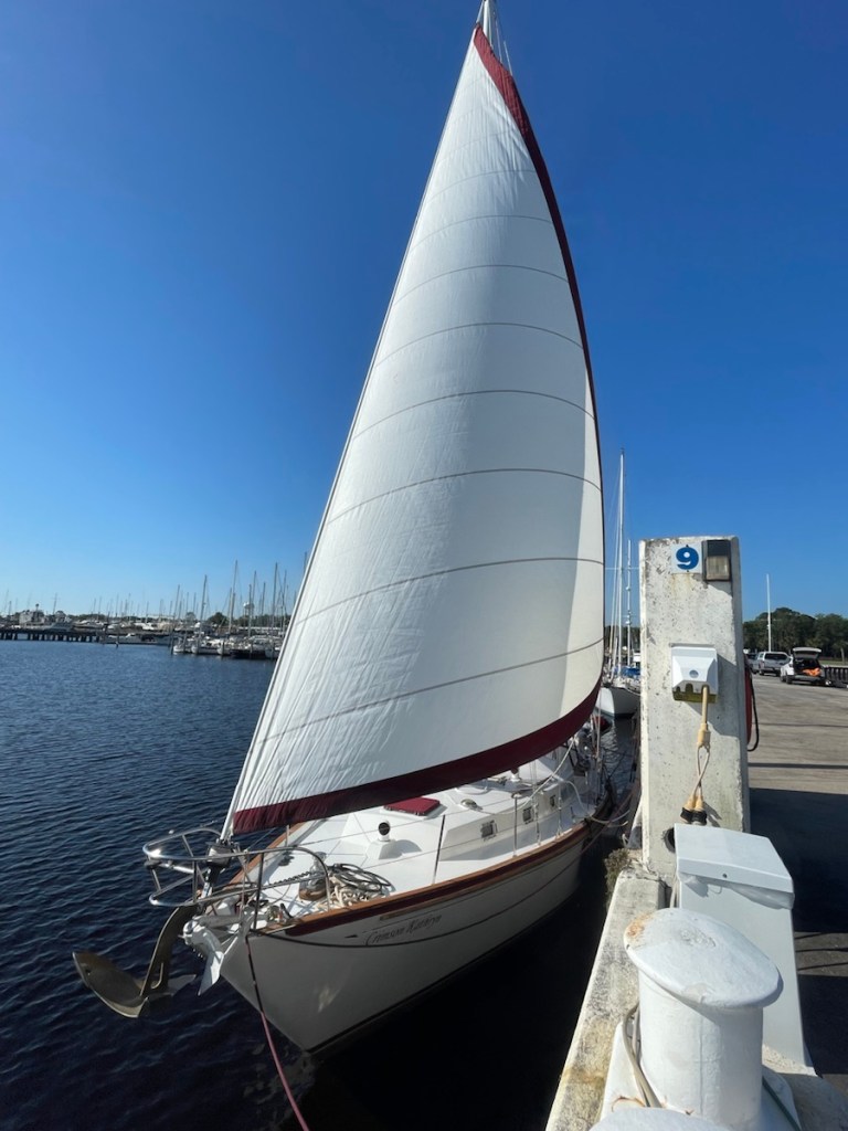 Crimson Kathryn coming into the pier. Thanks Julia for the great photo.Time to pull out all the painting supplies.Clean those cushions!Cockpit getting prepped for a nice paint job.Almost time to paint – taping still needs to be done.