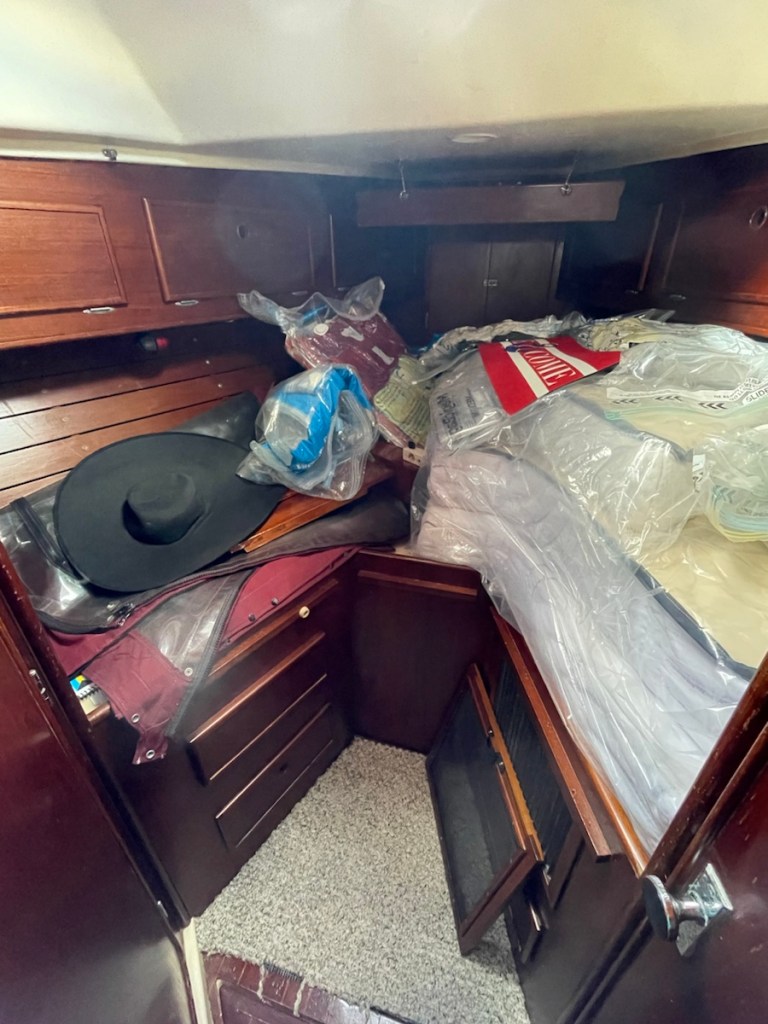 Other jobs have also been worked on this week. The V-berth has been washed with soap/water and also with vinegar and water. The vinegar helps control the mold that always grows during storage. The V-berth mattresses were all wrapped up and all the bedding for that room has been laundered and vacuum sealed into various sized bags. After each laundry session, additional fabric items have been vacuum sealed and placed in the V-berth. Unfortunately the enclosure sides are currently hanging out up there but they will eventually be stored in our cabin so I’m working around them the best I can.