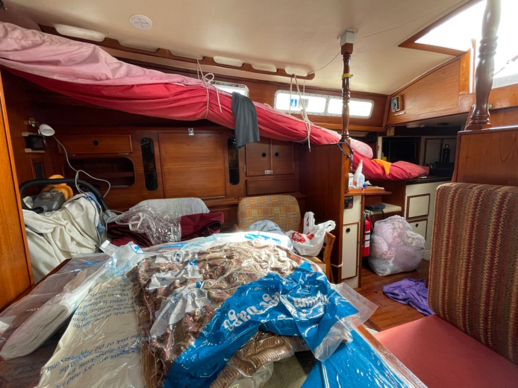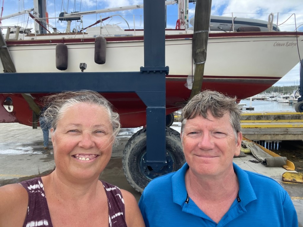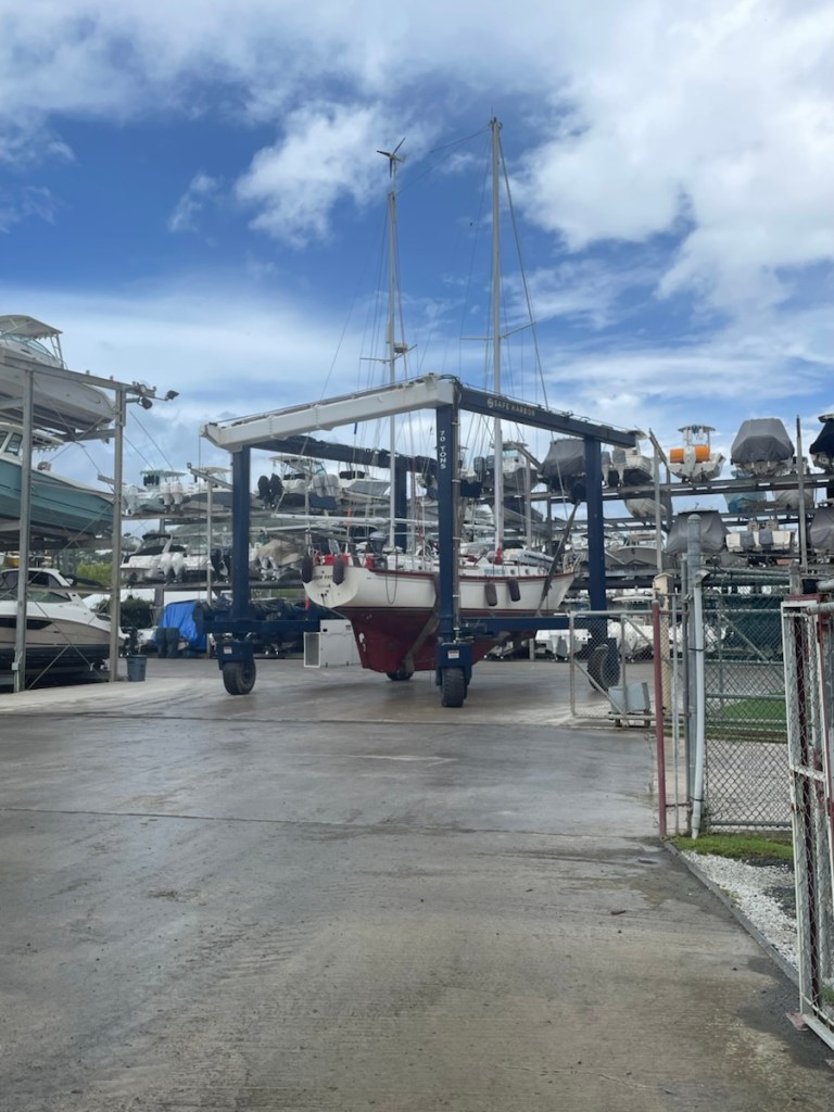 Mark and I have spent the last 2.5 days finishing all the jobs on our 2 lists. Being in a higher hurricane risk area has lead to a slightly different storage arrangement. We’ve decided not to cover our cockpit with a tarp (normally we do this to keep out the rain) and we’re also not putting on a sun shade. Both of these items can become a hazard when the wind picks up. All items normally stored in the cockpit or on deck have been moved inside the boat. Mark has also spent a bit of time securing things staying on deck, like the dinghy. A few extra lines were placed to make sure things don’t go flying!! The interior of the boat has been washed and items have been stored to allow for as much airflow as possible. We’re leaving 2 – 12volt fans running on low (never done that before) to help with air circulation. Sam will keep an eye of the fans and our batteries. All in all, we had a very successful 2.5 days on the hard!