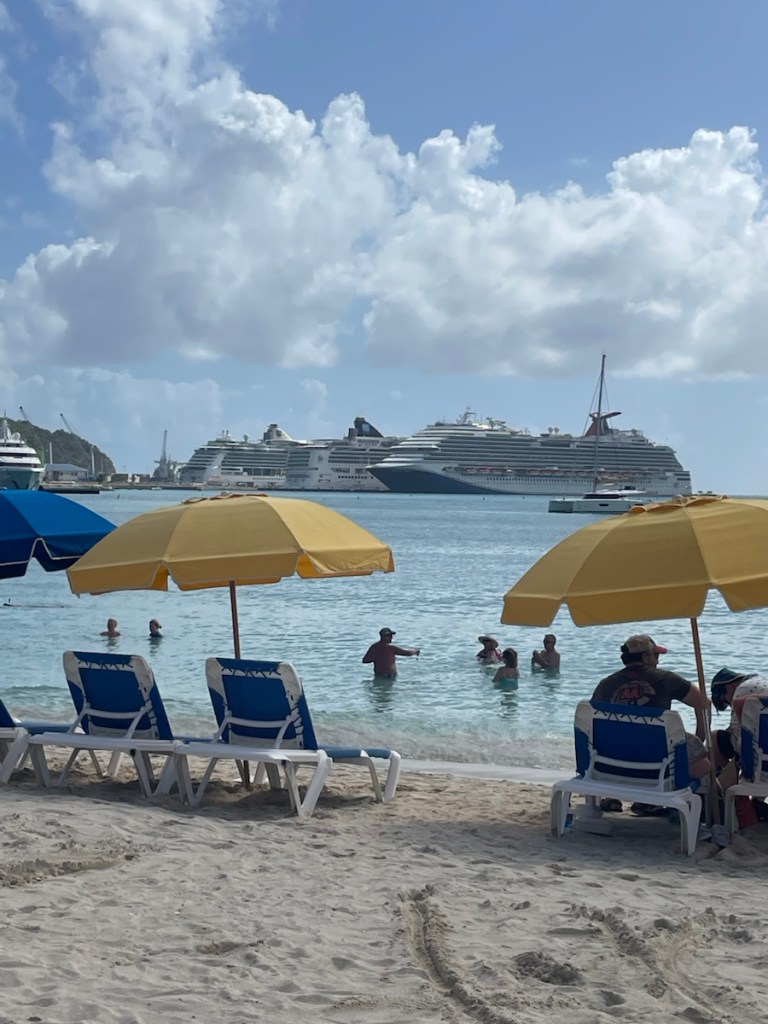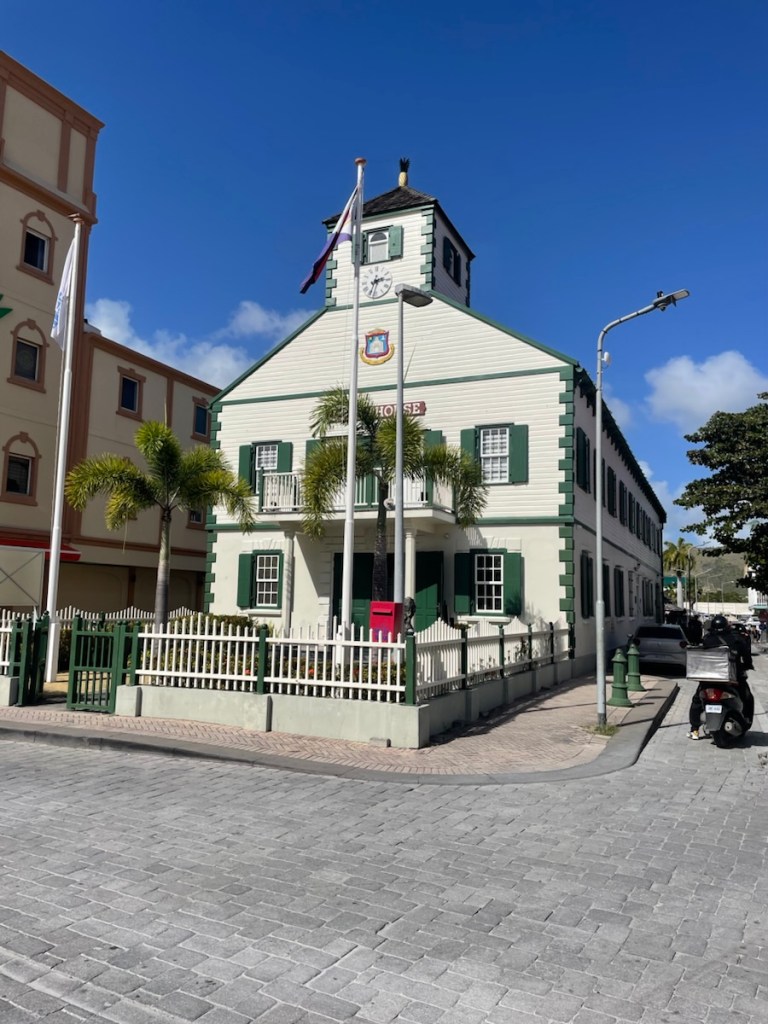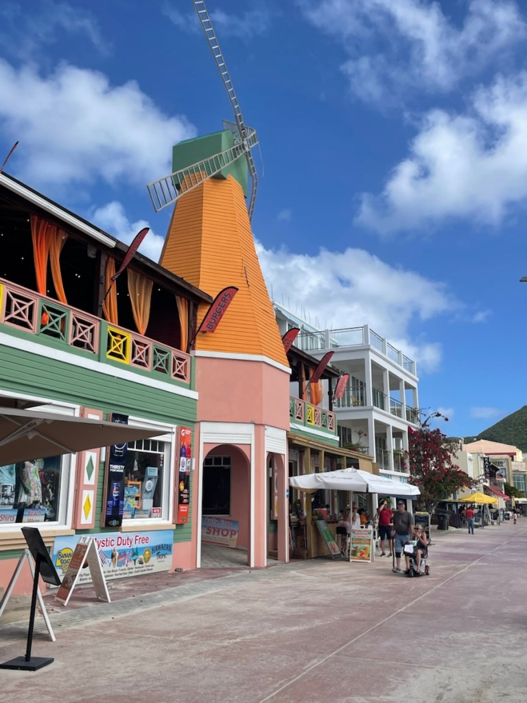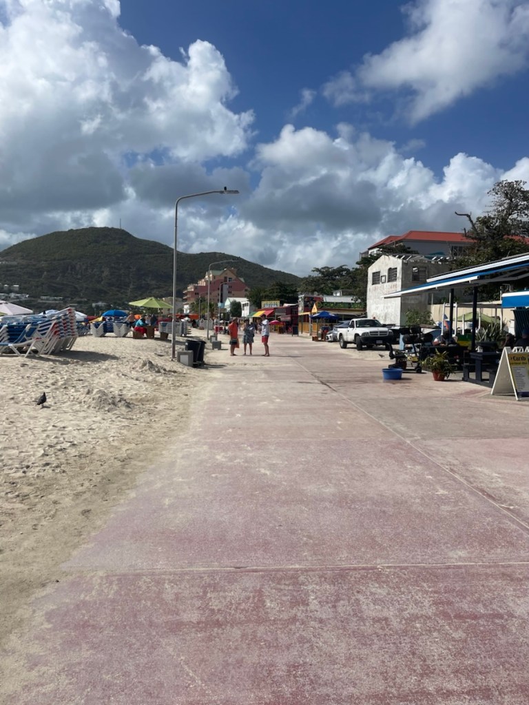 After our water adventure, we decided to dinghy over to the Dutch side. We picked up our refilled co2 canisters (for our soda stream) and went to the sail makers loft. With all this rain, we’ve decided to have a fabric cover made for the bow and V-berth hatch. This cover will attach to the windlass and the safety lines and stretch to almost the mast, covering the forward hatch so it can stay open in the rain (letting air in!). We’ve seen many boats with similar covers and hopefully our design will work well. We also took the bus to Philisburg – the cruise ship town!! We walked along the esplanade (only 3 cruise ships in port) and 2 other streets. It wasn’t super busy but we didn’t spend much time there.
