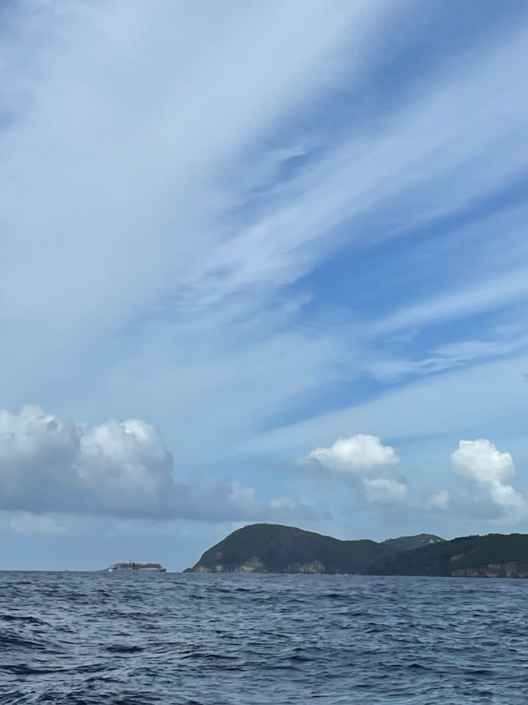 Guadeloupe is a very mountainous island – also looks very lush. Our anchorage is well known for its hot springs. Hopefully we will get a chance to enjoy the hot springs but for today, we need to make some water and I need to rest my back!