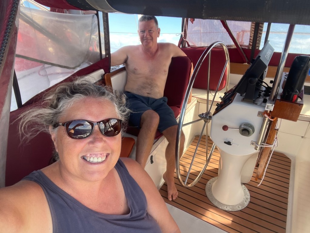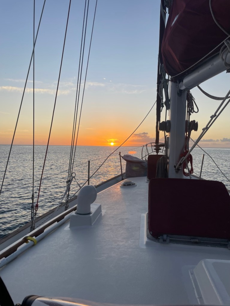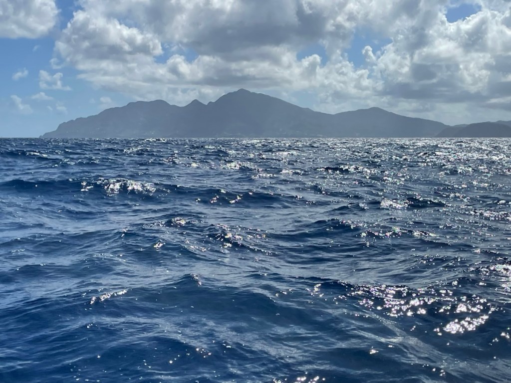We’ve been on quite a moving spree for the past 2 days!! Our first jump happened on Thursday, March 12th. We were up at 6 am and on the move by 7 am (slightly behind Sundog). We had a great visit to Les Saintes but we had a few days of what we hoped would be good wind and waves for south east travel. We were out of the influence of the islands and sailing jib and mizzen by about 8:30am.