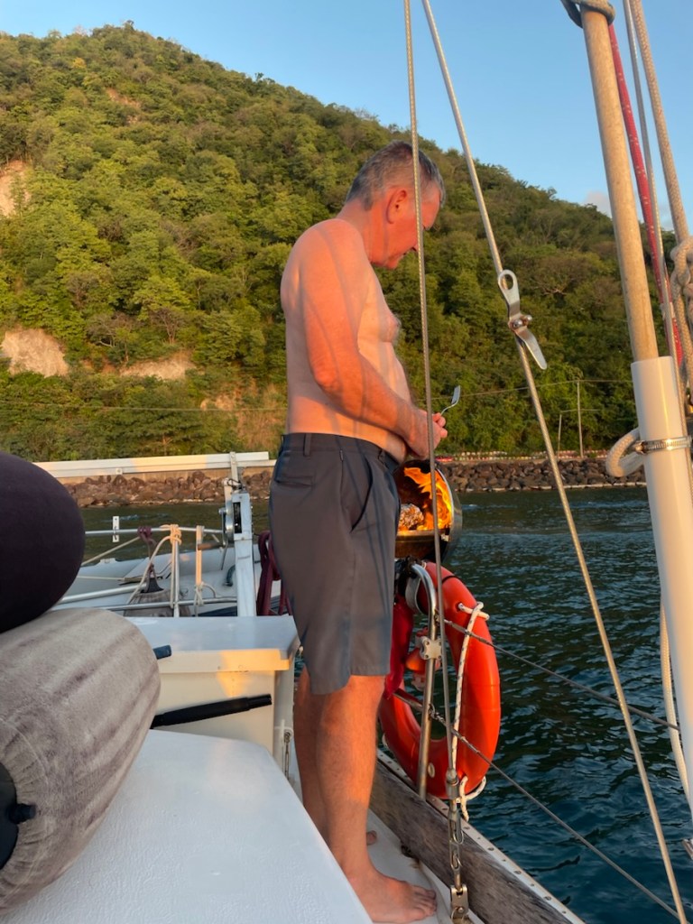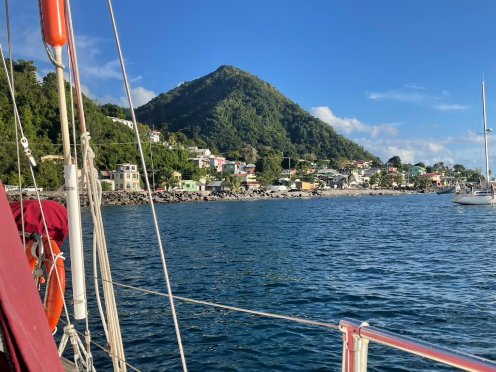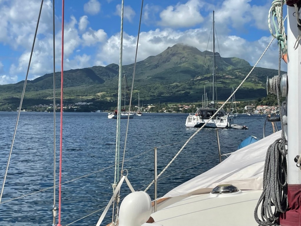 We’re now anchored near the town of St. Pierre. The whole town was destroyed in 1902 when the volcano Mount Pelee erupted. We will spend a few days here exploring the town with Sharron and John and definitely visiting the volcano museum.