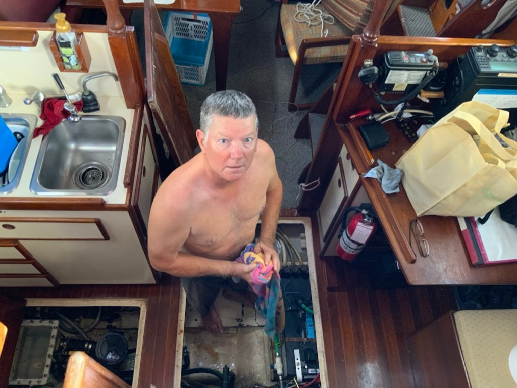 Our afternoon was spent making water and getting ready to cross to St. Lucia tomorrow. Mark also had the unpleasant job of working on the black water tank macerator pump (this pump empties our holding tank when we are offshore – limited pump out services down here). We discovered it wasn’t working on our trip down the day before. It was a stinky job that took the rest of the afternoon. Unfortunately the job ended unsatisfactorily! Who knows – maybe it just needs a good bumpy sail to start moving things along!!