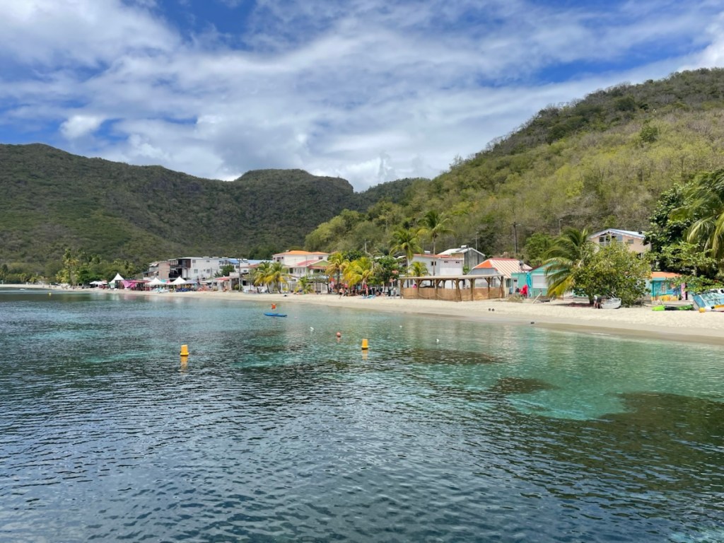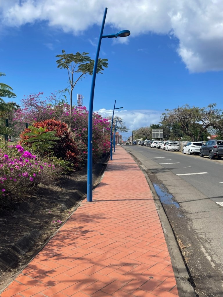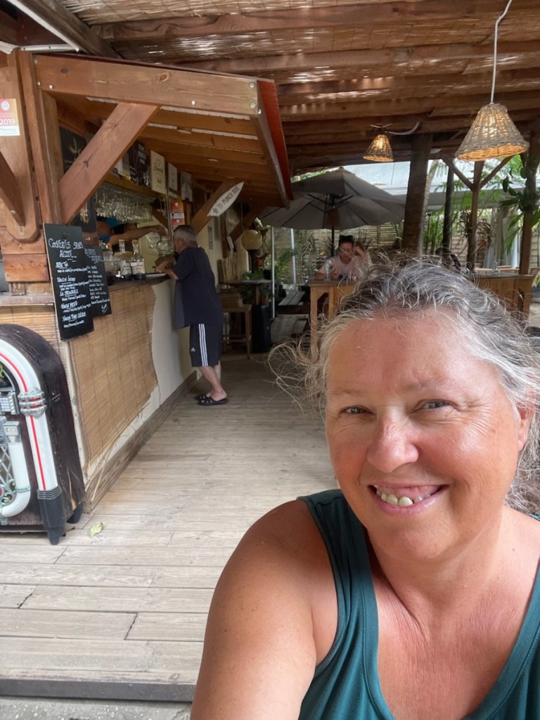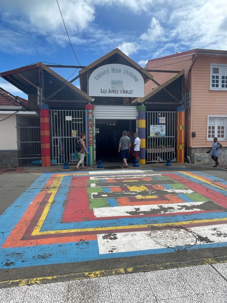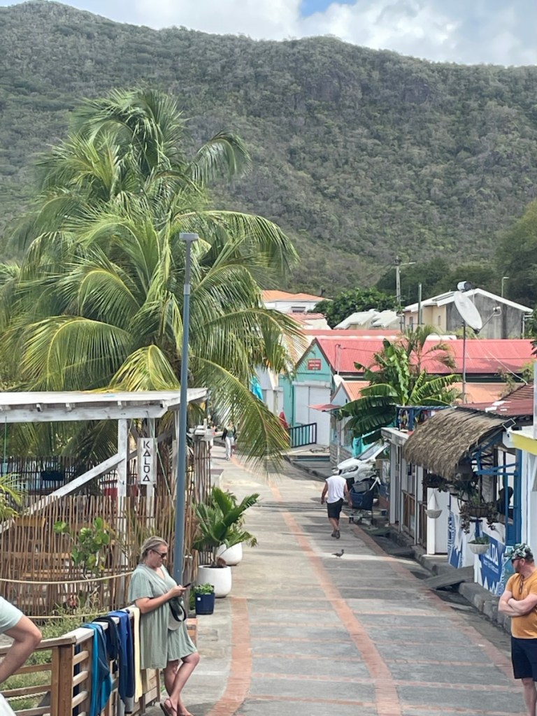 Today (March 18th) we headed to shore for a little exploring and also to print out of our French clearance papers (needed to clear into the next island). Sharron and John joined us for this trip but they took the trail over the hill while we walked along the road. The customs office for this area was in Petite Cite de Caractere, a small town 1.5km south of us so it was an easy walk. We had a good look around this quaint little town – it’s definitely on the touristy side. We found a market that had a veggie stall so we bought another pineapple!! We went to the customs place and had our papers printed, stamped and signed!! We also had a nice coffee while we waited for Sharron and John to meet up with us. We all walked back via the road and we were back onboard by 1 pm.